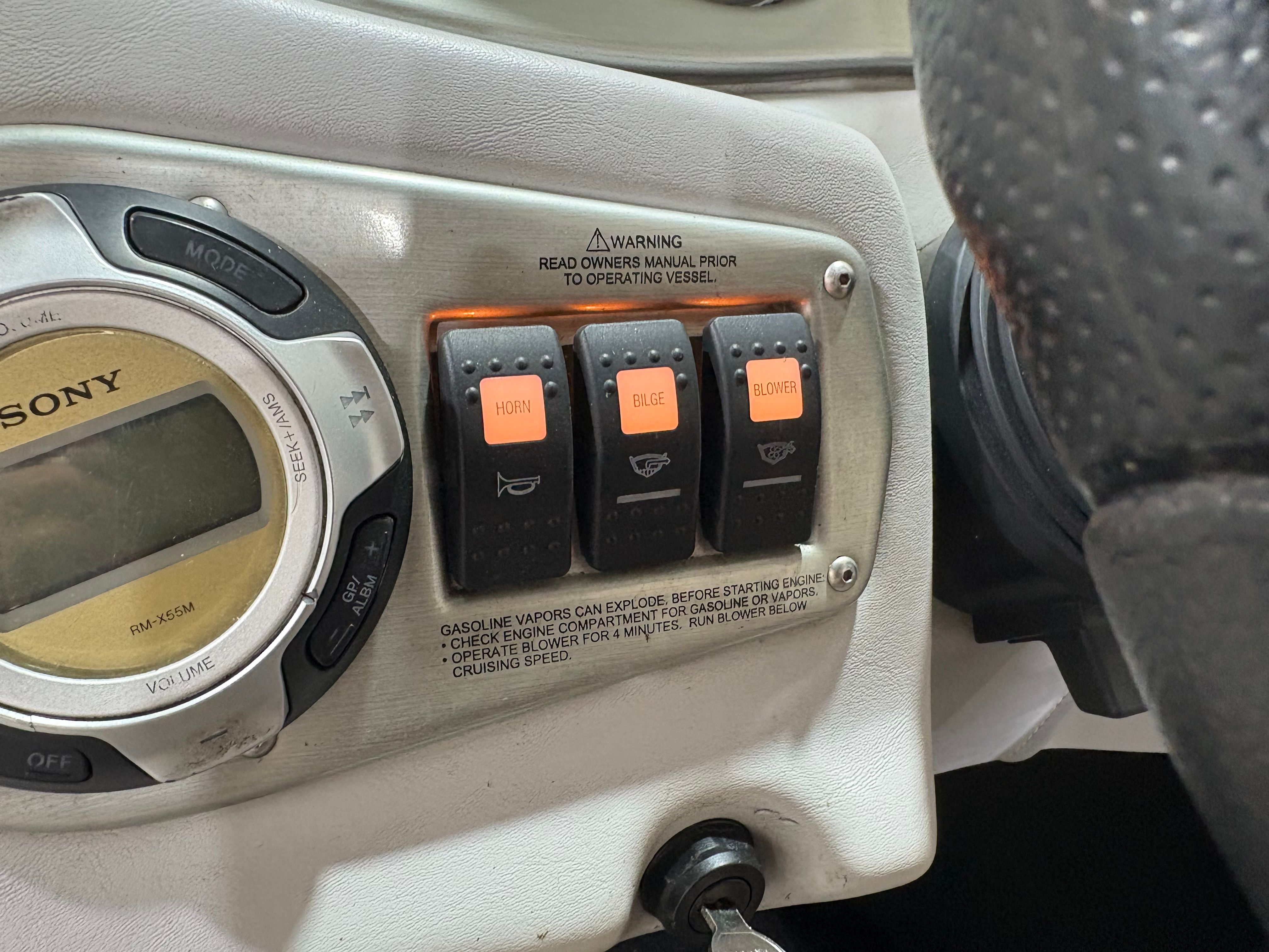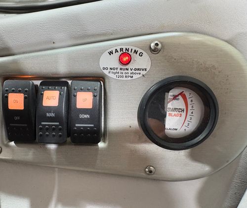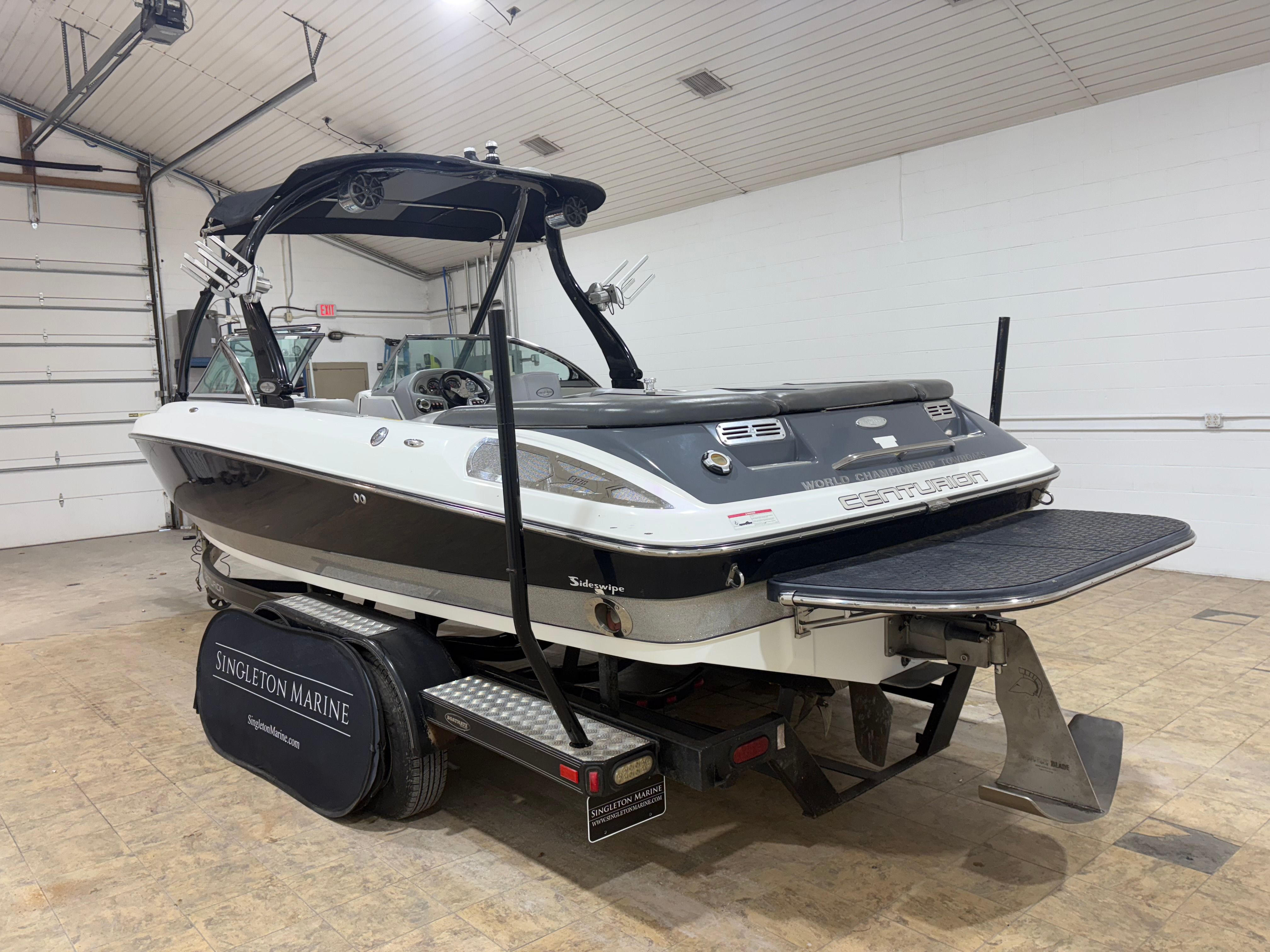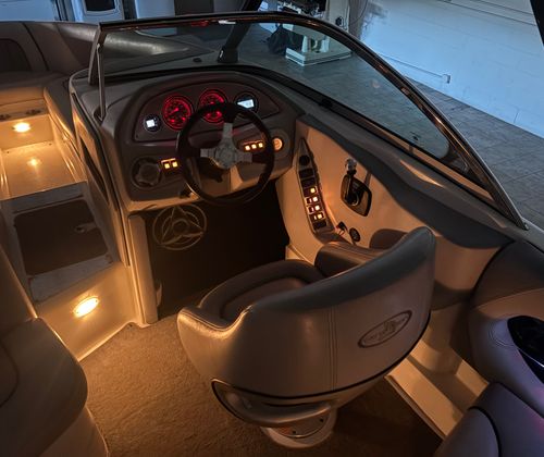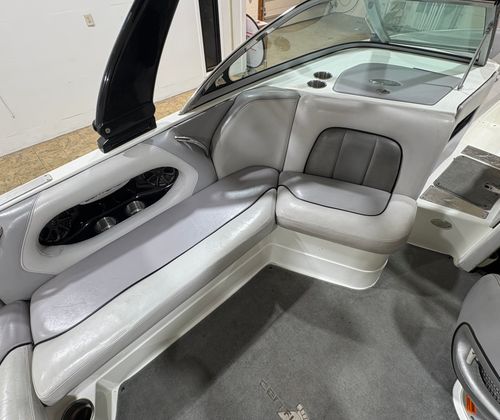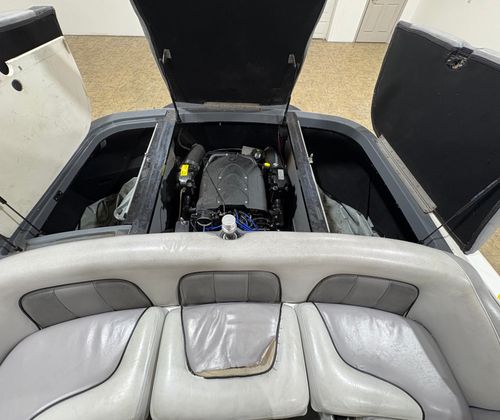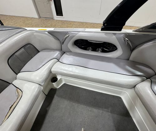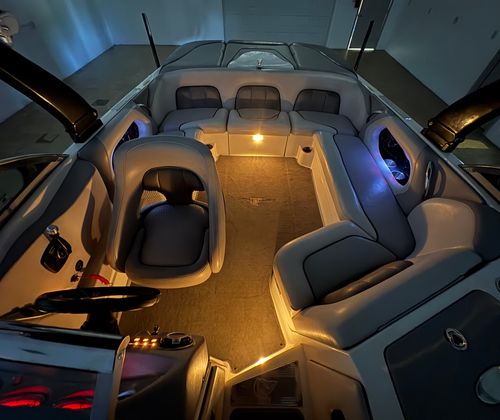 Practicality meets performance in this Centurion boat for sale. The mooring cover simplifies storage and protects your investment, while the efficient single-engine setup helps keep fuel costs manageable. Docking is a breeze thanks to the boat’s responsive handling and well-designed hull. The ballast system and Switchblade Wake Tab allow you to tailor the wake for different activities, making it easy to switch between wakeboarding, skiing, and casual cruising.The dual board racks maximize storage space, keeping the deck uncluttered and safe. The collapsible bimini top is easy to deploy and stow, adapting to changing weather conditions with minimal effort. Interior courtesy lights enhance visibility and safety during nighttime adventures, ensuring you can enjoy the water from dawn to dusk. With the Centurion Enzo SV230, every aspect of ownership is designed to be straightforward and enjoyable.