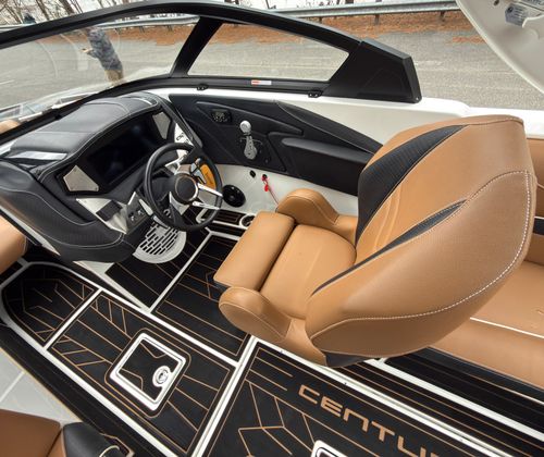 At the heart of the Centurion FI21 is a powerful engine delivering an impressive 409 horsepower. This single-engine setup is engineered for responsive acceleration and consistent power, whether you’re pulling wakeboarders, skiers, or simply cruising across the water. With only 105 engine hours, the motor remains in excellent condition, ready to provide years of dependable service. The FI21’s performance metrics are tailored for tow sports, offering robust torque for quick starts and smooth, controlled rides. Whether you’re chasing the perfect wake or enjoying a leisurely cruise, this Centurion boat for sale delivers the kind of performance that makes every outing memorable.