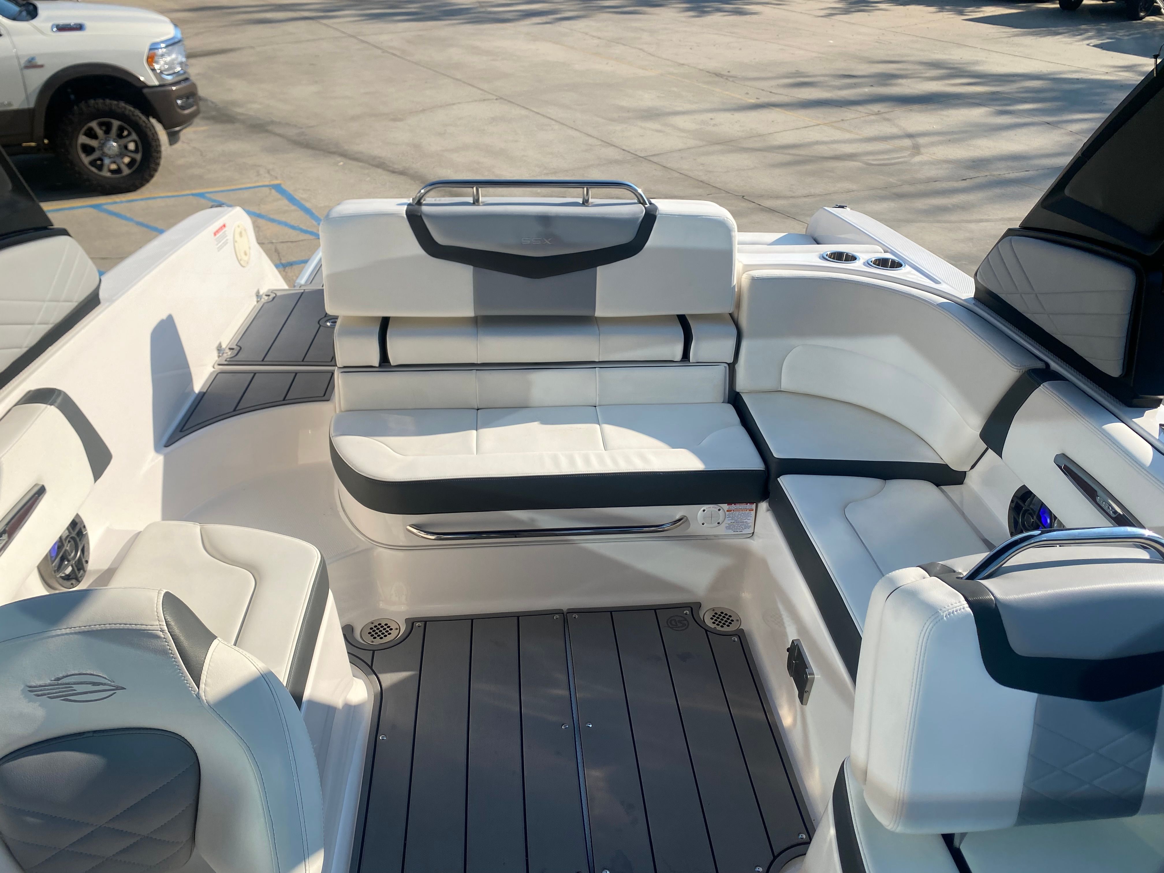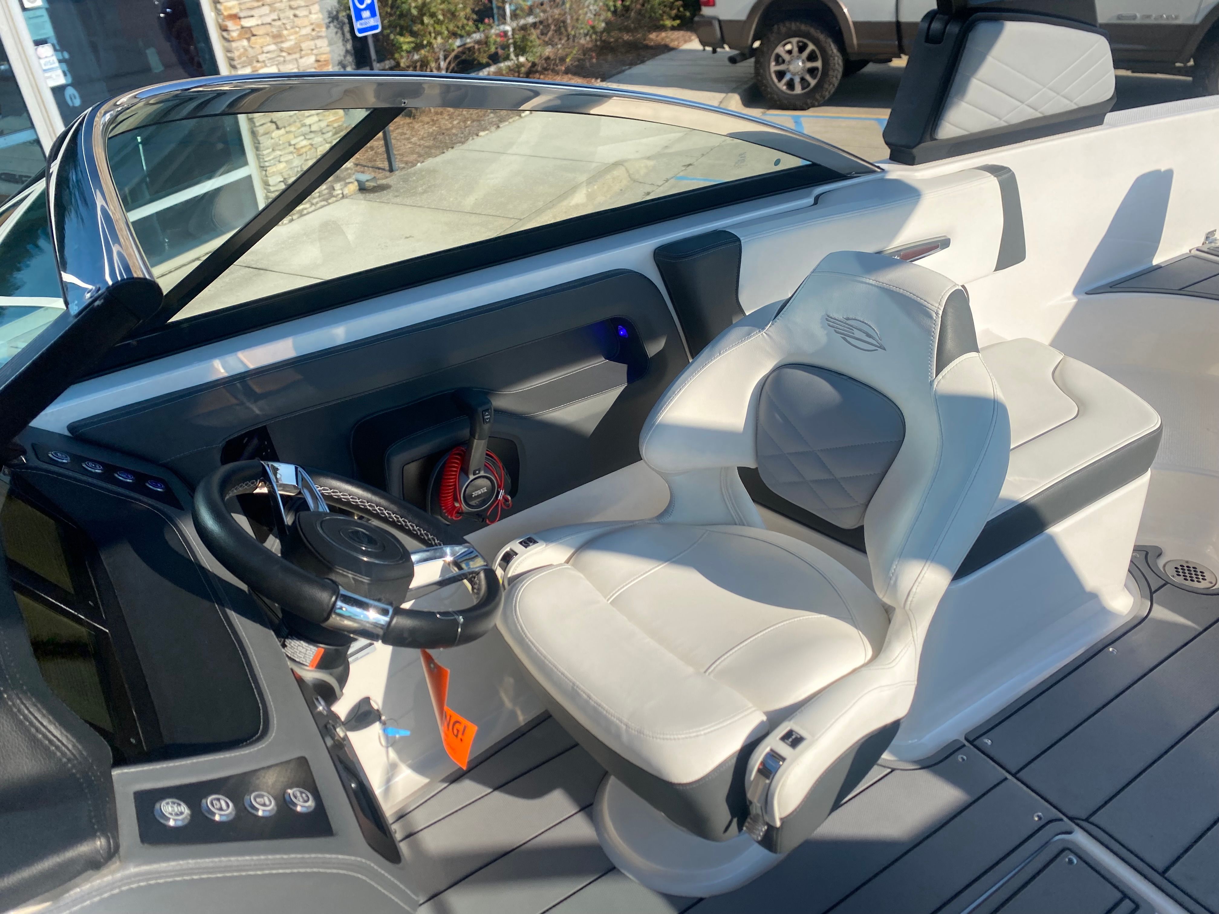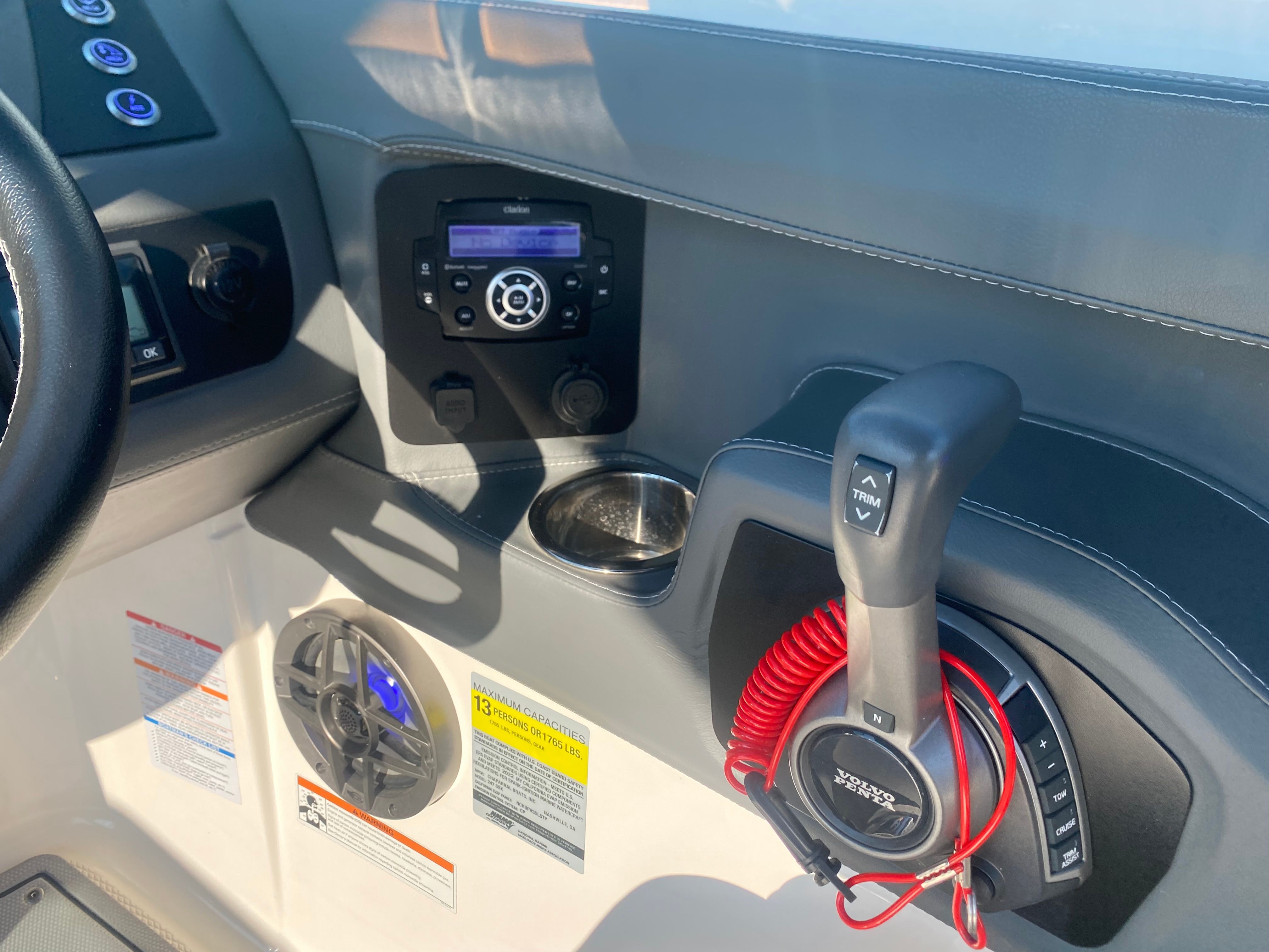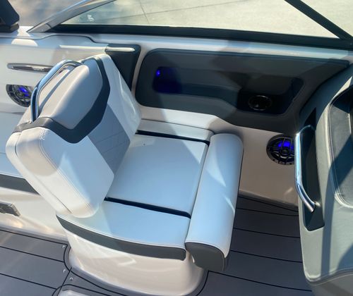 Clean, low-hour boats like this 2022 Chaparral 247 SSX don’t come around often—and when they do, they don’t last long. With only 26 hours on the powerful Volvo Penta 300, this boat delivers exceptional performance, handling, and reliability. It’s loaded with premium features including a power tower, dual Simrad displays at the helm, Clarion Bluetooth audio system with transom remote, extended swim platform, transom ladder, anchor storage, and abundant onboard storage including a spacious ski locker. The dual battery setup and interior lighting add convenience and peace of mind, making this boat perfect for all-day adventures on the water.