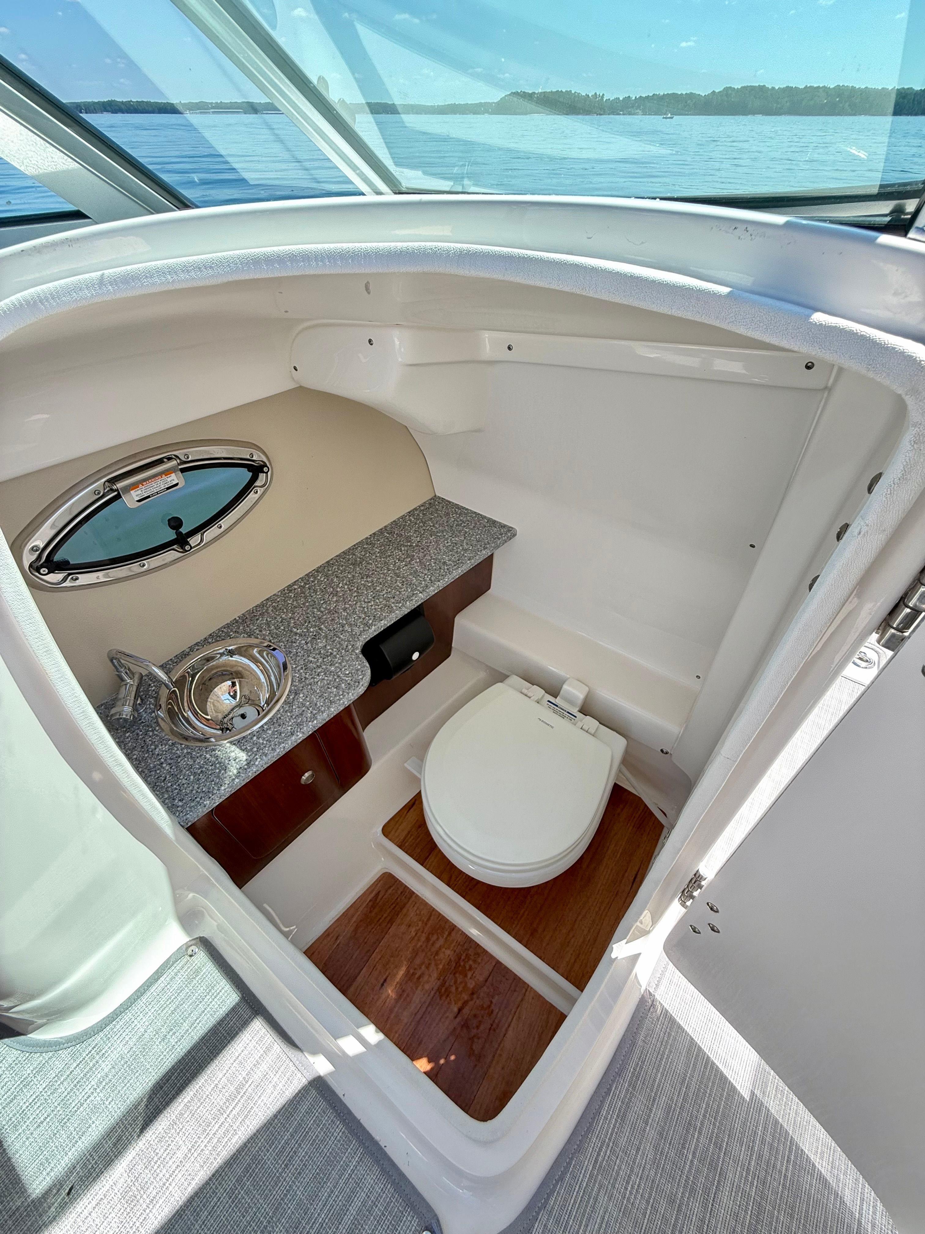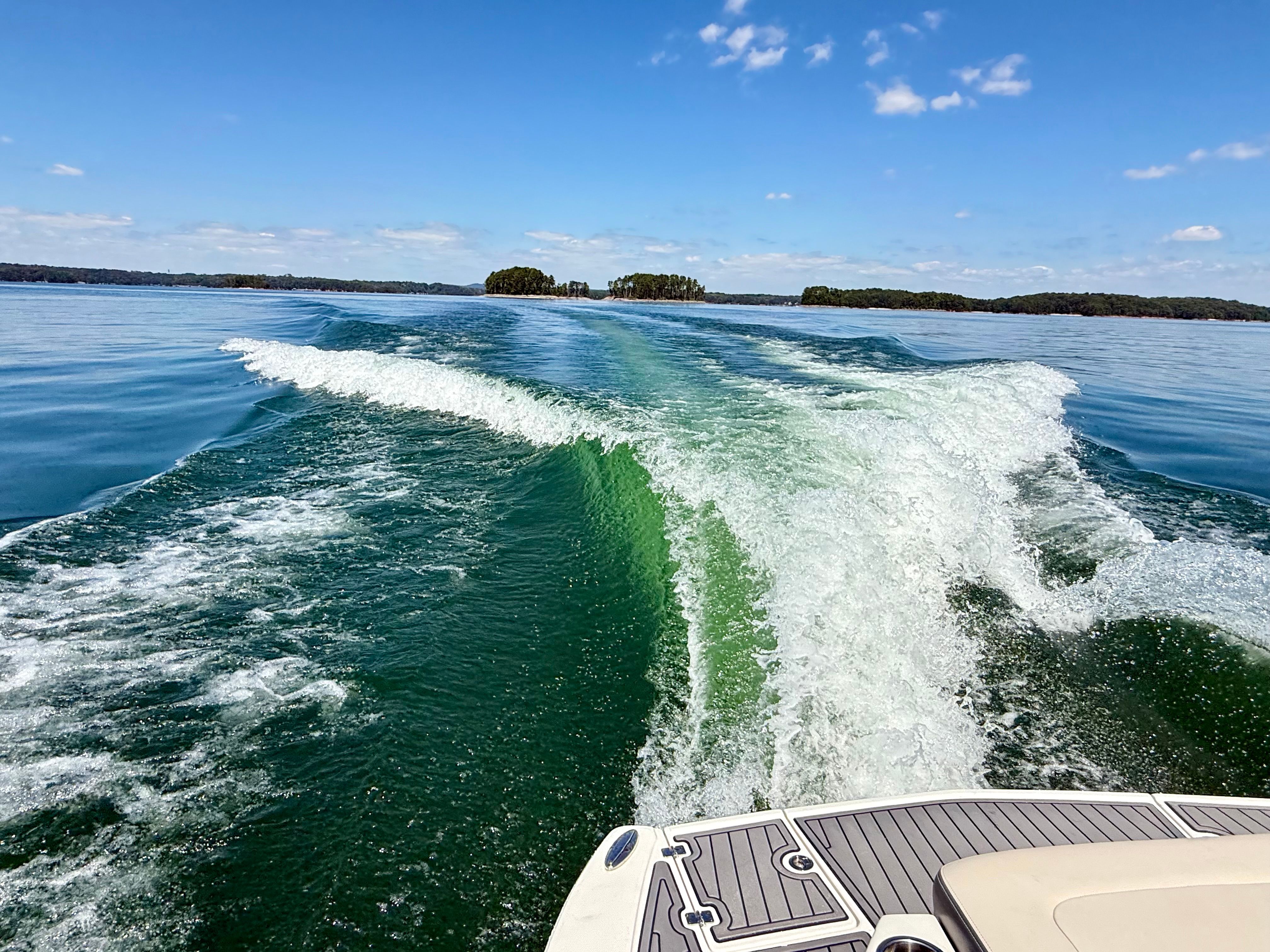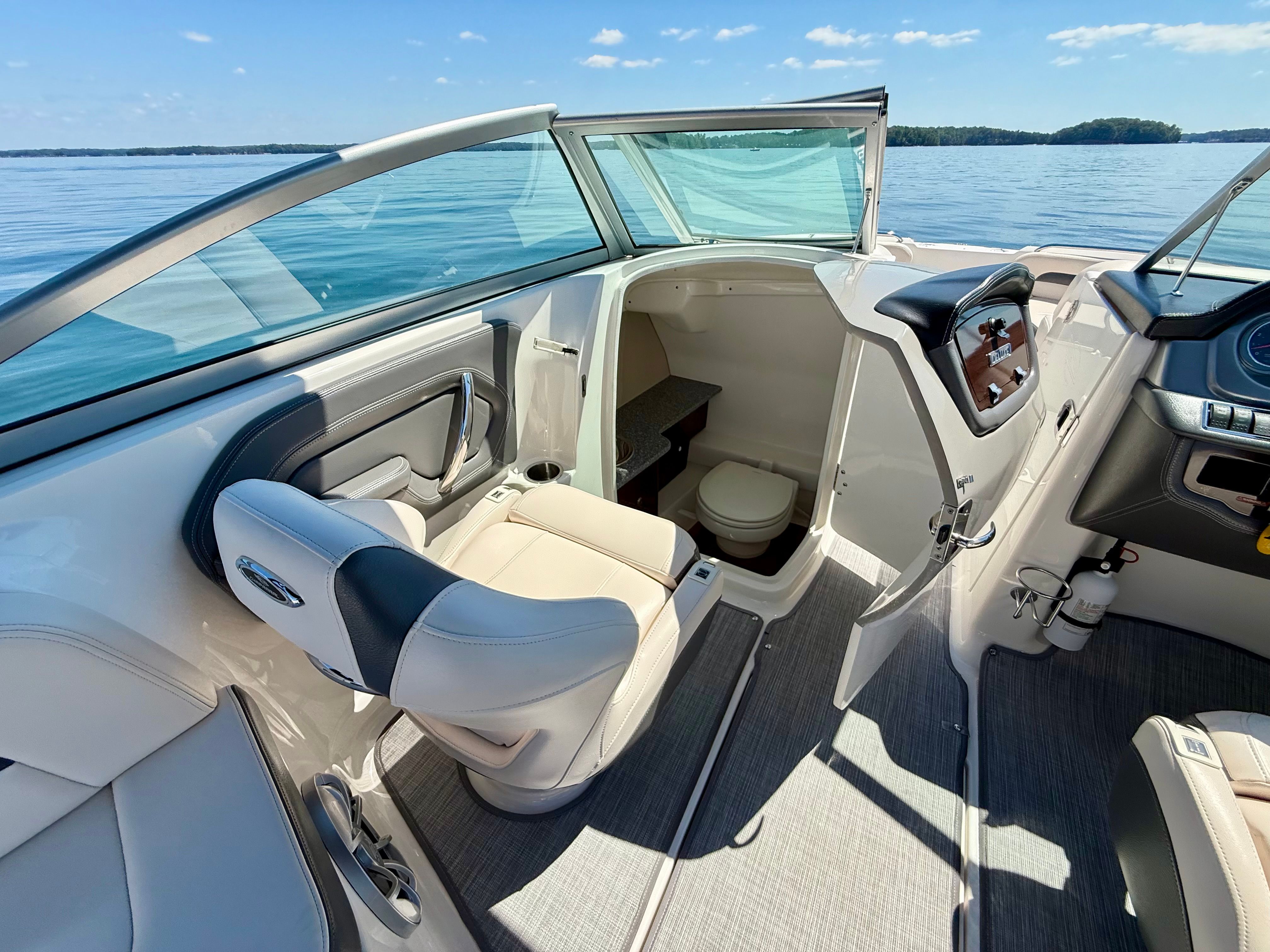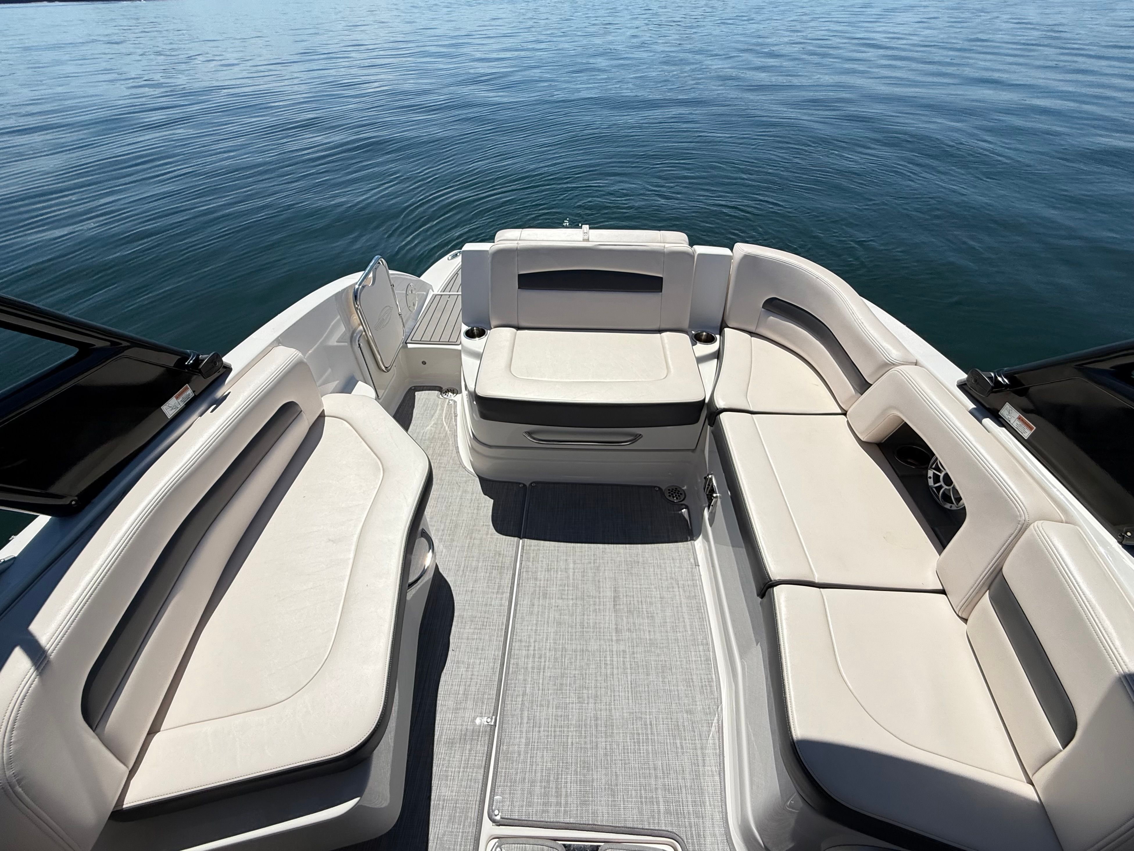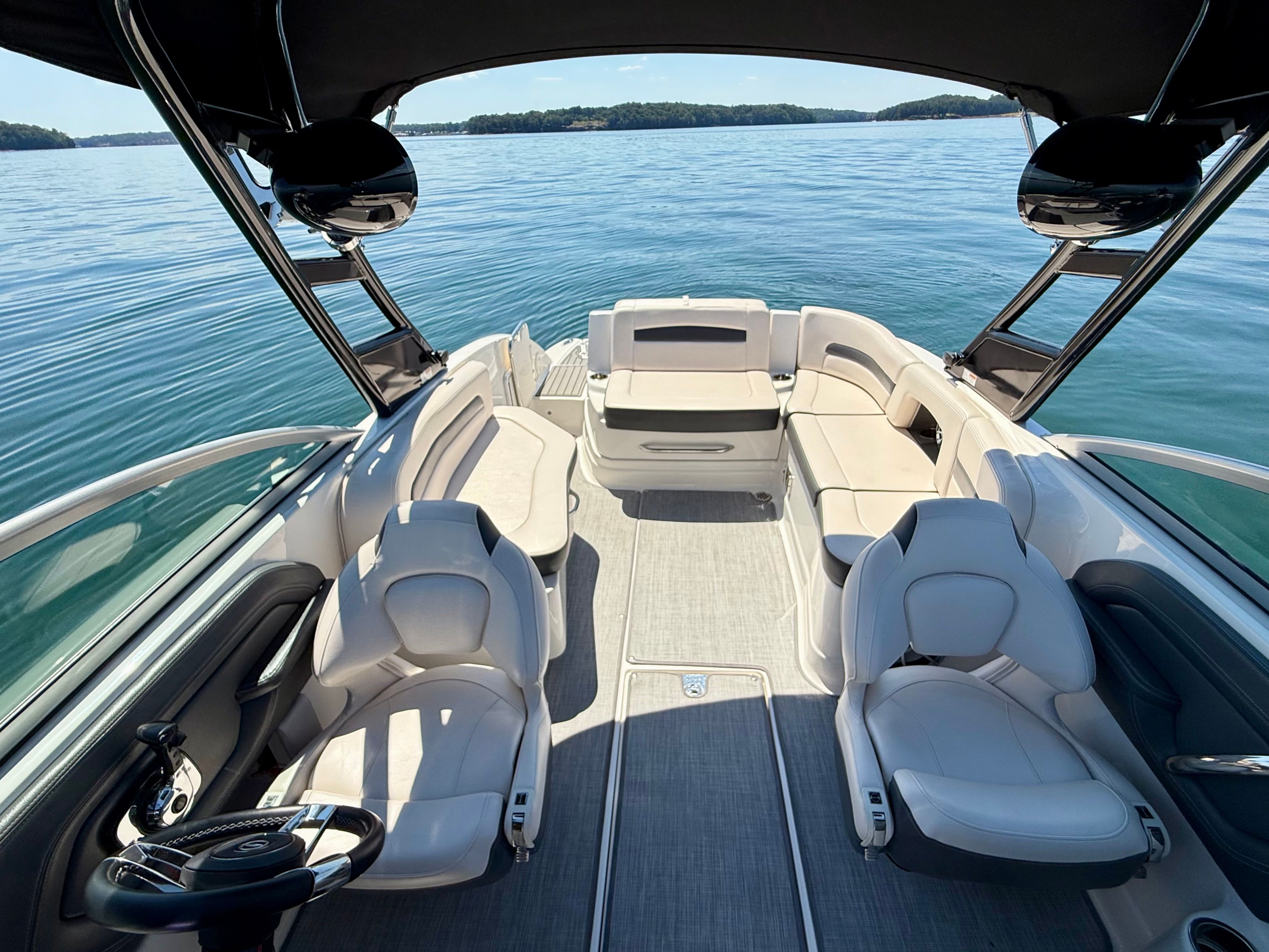 Powered by a Volvo Penta V8 300hp Forward Drive with only 280 hours, this boat combines luxury, power, and watersport performance in a sleek, family-friendly package.