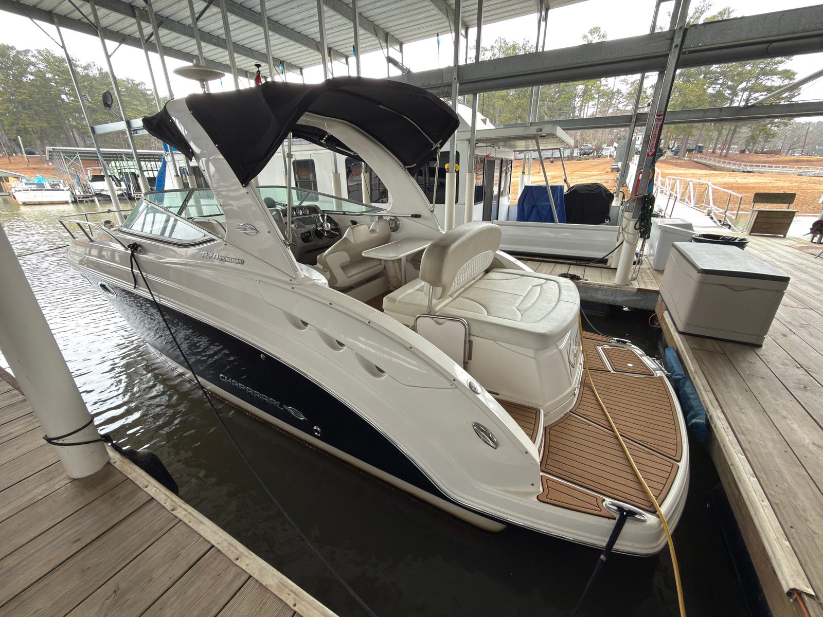 Beyond its impressive performance and inviting atmosphere, the 2014 Chaparral 270 Signature offers practical benefits that make ownership a breeze. The intuitive layout and responsive handling simplify docking and maneuvering, even in busy marinas or tight coves. The efficient engine delivers a satisfying blend of power and fuel economy, allowing you to spend more time on the water and less time at the pump.Storage is another highlight of this bowrider boat for sale, with cleverly designed compartments that keep your gear organized and out of the way. Whether you’re packing for a day of fishing, a picnic on the water, or a weekend adventure, you’ll appreciate the ample space for all your essentials. The durable construction and quality materials ensure that your Chaparral 270 Signature will stand up to years of fun and exploration.