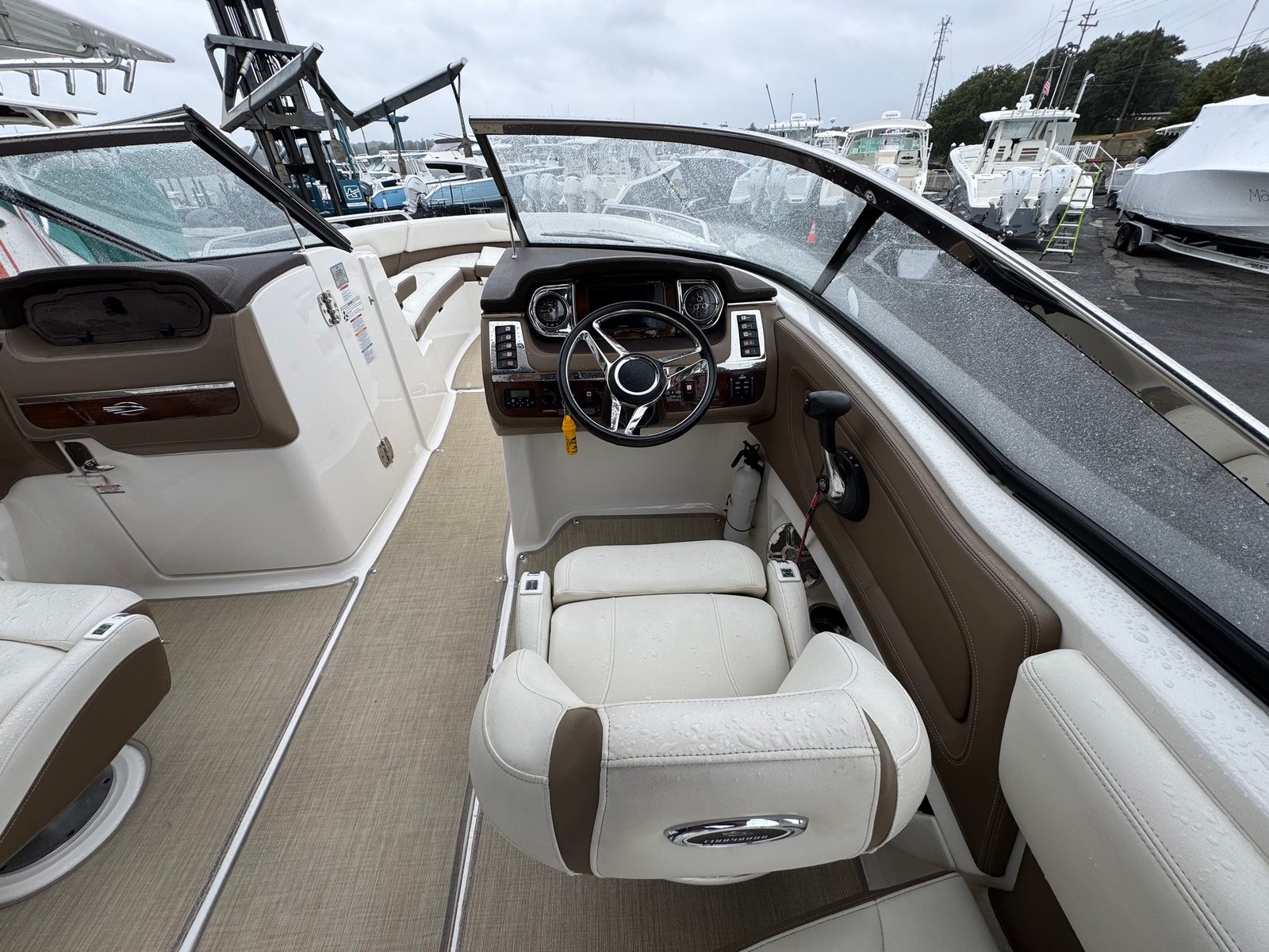 The Chaparral 270 SSI is packed with features that enhance your time on the water. Its spacious bow seating area invites guests to stretch out and soak up the sun, while the wraparound cockpit seating provides plenty of room for socializing and relaxation. The helm is thoughtfully designed with intuitive controls and clear instrumentation, ensuring that captains of all experience levels feel confident at the wheel. The 27-foot length offers generous storage options, making it easy to stow gear, water toys, and personal items for a clutter-free experience. The boat’s layout is optimized for both comfort and functionality, with easy access to all areas and a design that encourages conversation and connection.