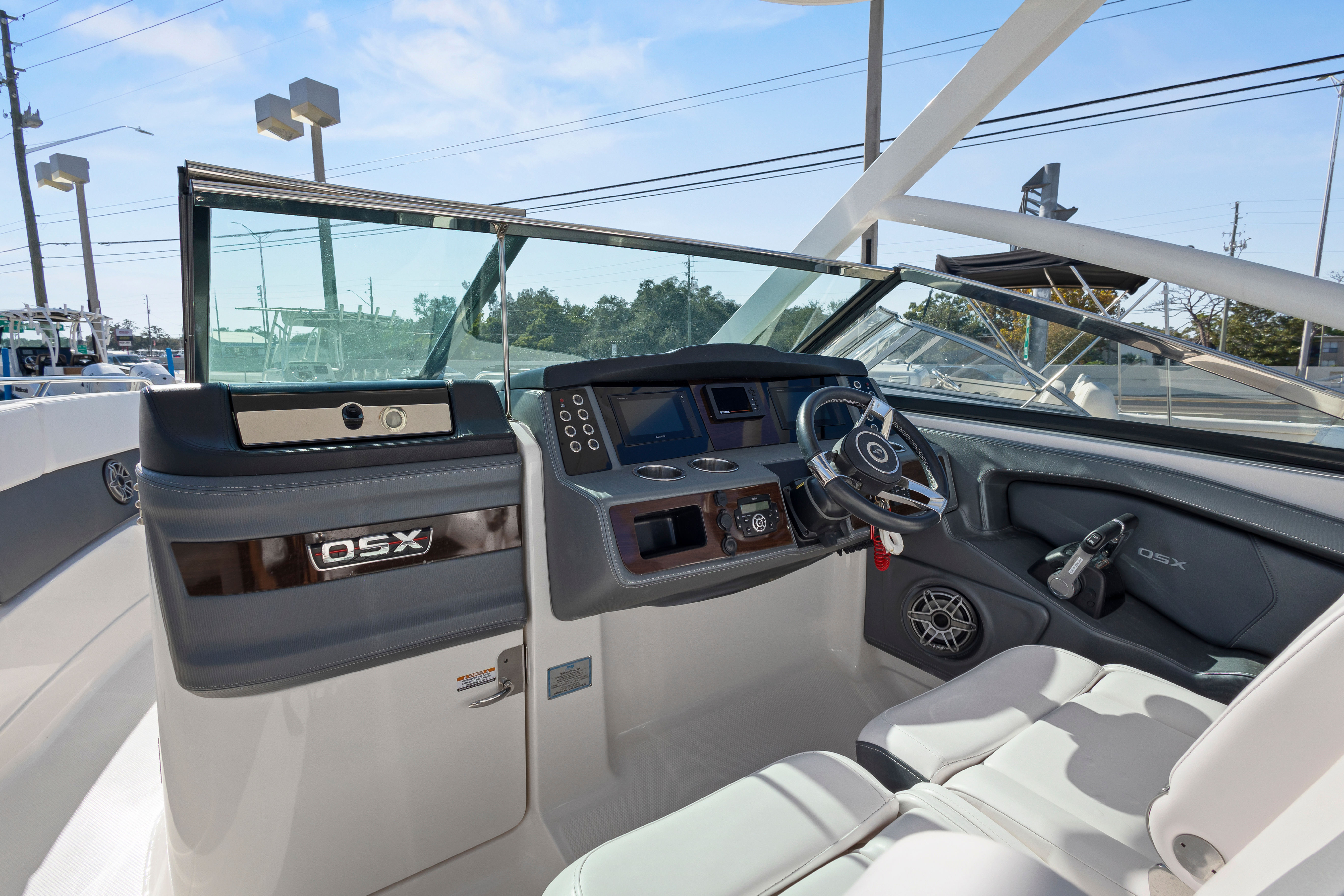 The Chaparral 280 OSX is thoughtfully designed to maximize comfort and enjoyment on the water. Its spacious bow seating area invites guests to relax and soak up the sun, while the open cockpit layout encourages easy movement and social interaction. The helm is ergonomically crafted for intuitive control, offering clear sightlines and easy access to all essential functions. Premium materials and attention to detail are evident throughout, from the plush upholstery to the stylish accents that elevate the onboard experience. With a length of 30.5 feet, this bowrider provides generous storage options for gear, water toys, and personal belongings, keeping the deck clutter-free and organized.