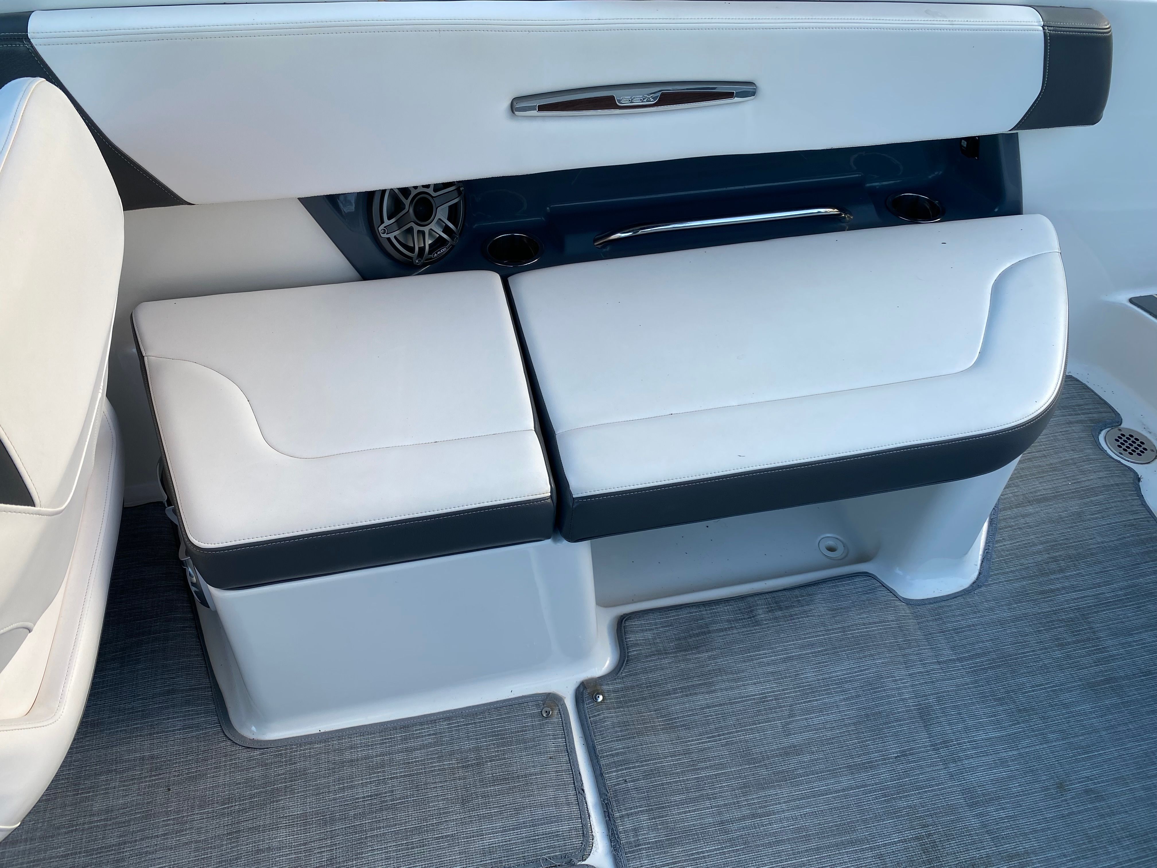 The 2018 Chaparral 287 SSX is packed with features that cater to both comfort and convenience. As a premium bowrider boat for sale, it offers a spacious and thoughtfully designed cockpit, plush seating arrangements, and ample room for socializing or lounging in the sun. The open bow area is perfect for soaking up the rays or enjoying the breeze, while the versatile seating configurations allow you to customize the space for your group’s needs.Special features on the 287 SSX include high-quality upholstery, ergonomic helm controls, and a stylish dashboard that puts everything you need at your fingertips. The boat’s generous length provides plenty of storage options for gear, water toys, and personal items, keeping the deck clutter-free and organized. Every detail, from the stainless steel accents to the premium finishes, reflects Chaparral’s commitment to craftsmanship and luxury.