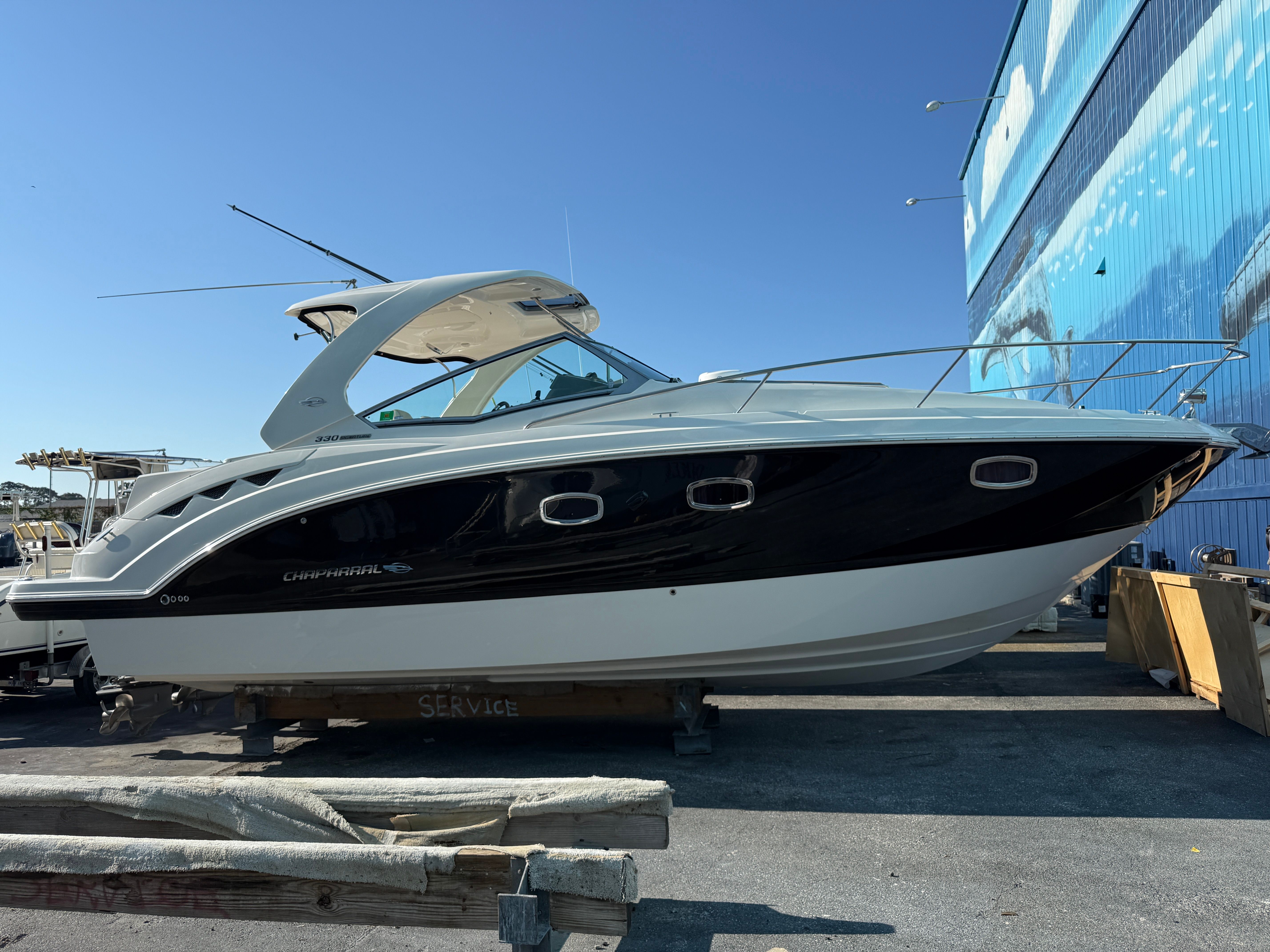 Check out this gorgeous 2018 Chaparral 330 Signature powered with twin Volvo 300 V8 Joystick controlled engines with only 340 hours of use! This boat has been stored in a premium indoor dry storage facility and by her condition it shows! The black gel coat and cockpit vinyl are in great condition! This boat has a full Garmin electronics package with GPS and VHF along with a great sunpad cushion on the forward deck. Its got a great downstairs layout with forward berth, full galley and head and a great midship sitting area that can be converted to a berth. This is an excellent coastal cruising boat that you can overnight on or enjoy for the day! Lots of upgrades and great layout make this one of the most popular cruisers of its kind! Only asking $209,900, this is a deal! Call Legendary Marine at 850-687-1776 or email tvroyall@legendarymarine.com to make your appointment or make your offer today!!!