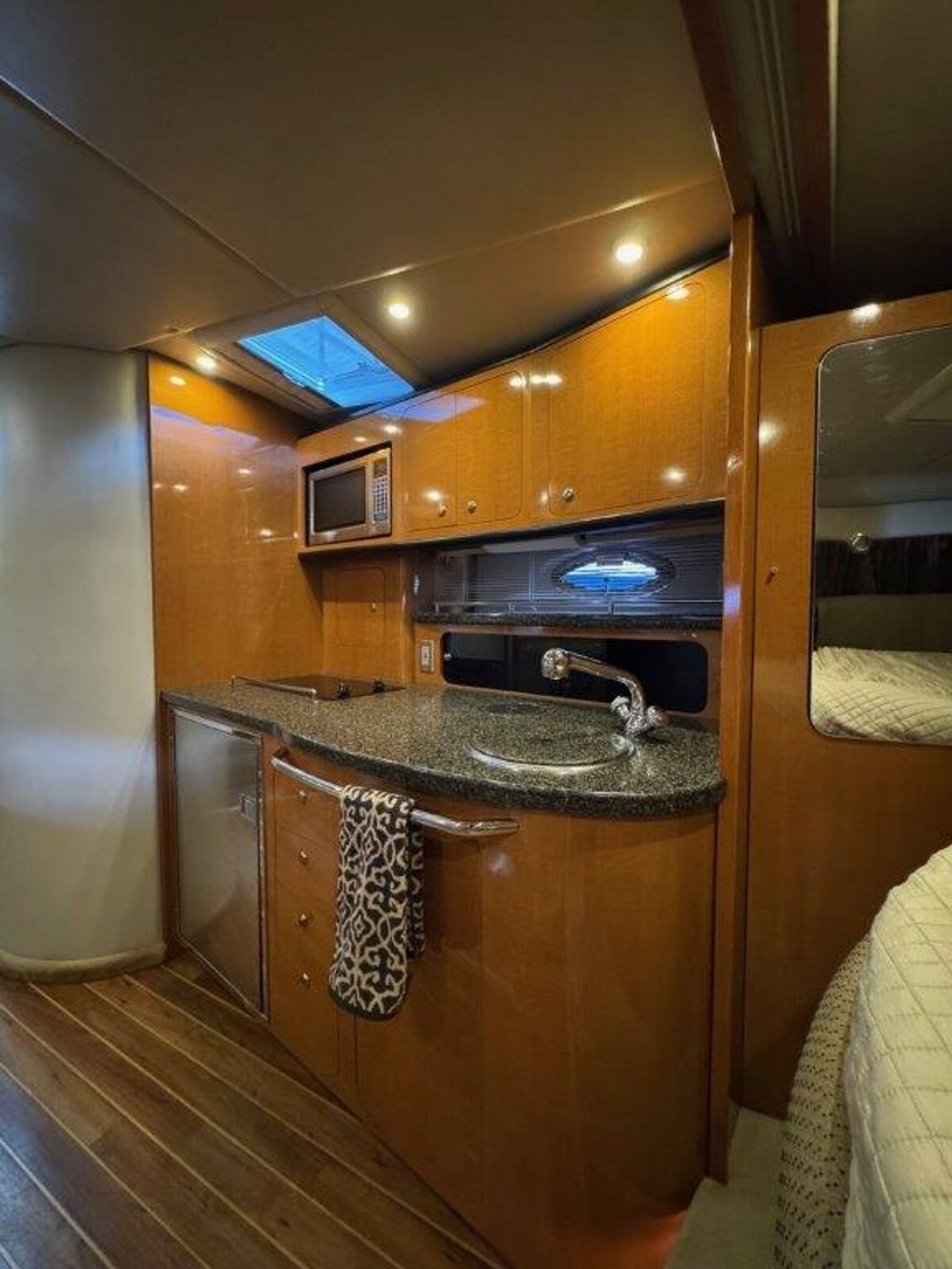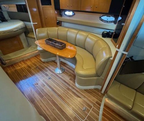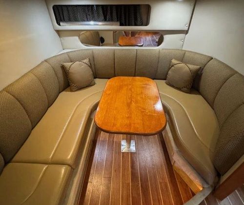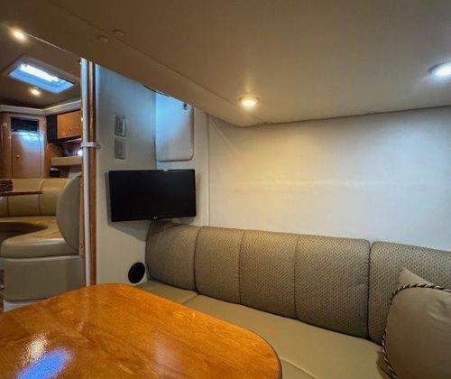 The 350 Signature is designed for entertaining and cruising, offering a spacious cockpit with abundant seating and a thoughtful layout for both day trips and extended stays. Upholstery is in excellent condition, and the full enclosure provides all-weather comfort. The hardtop offers shade while the walk-through windshield allows easy access to the bow and Princess Pad.