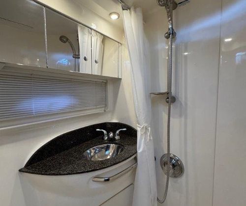 Powered by Twin Volvo 8.1L engines with only 562 hours, this boat has been stored on Lake Lanier since 2012 and benefits from important updates, including replaced composite drives. The Kohler generator, with approximately 450 hours, was recently replaced with a rebuilt unit by a trusted local company on the lake, ensuring reliable onboard power.