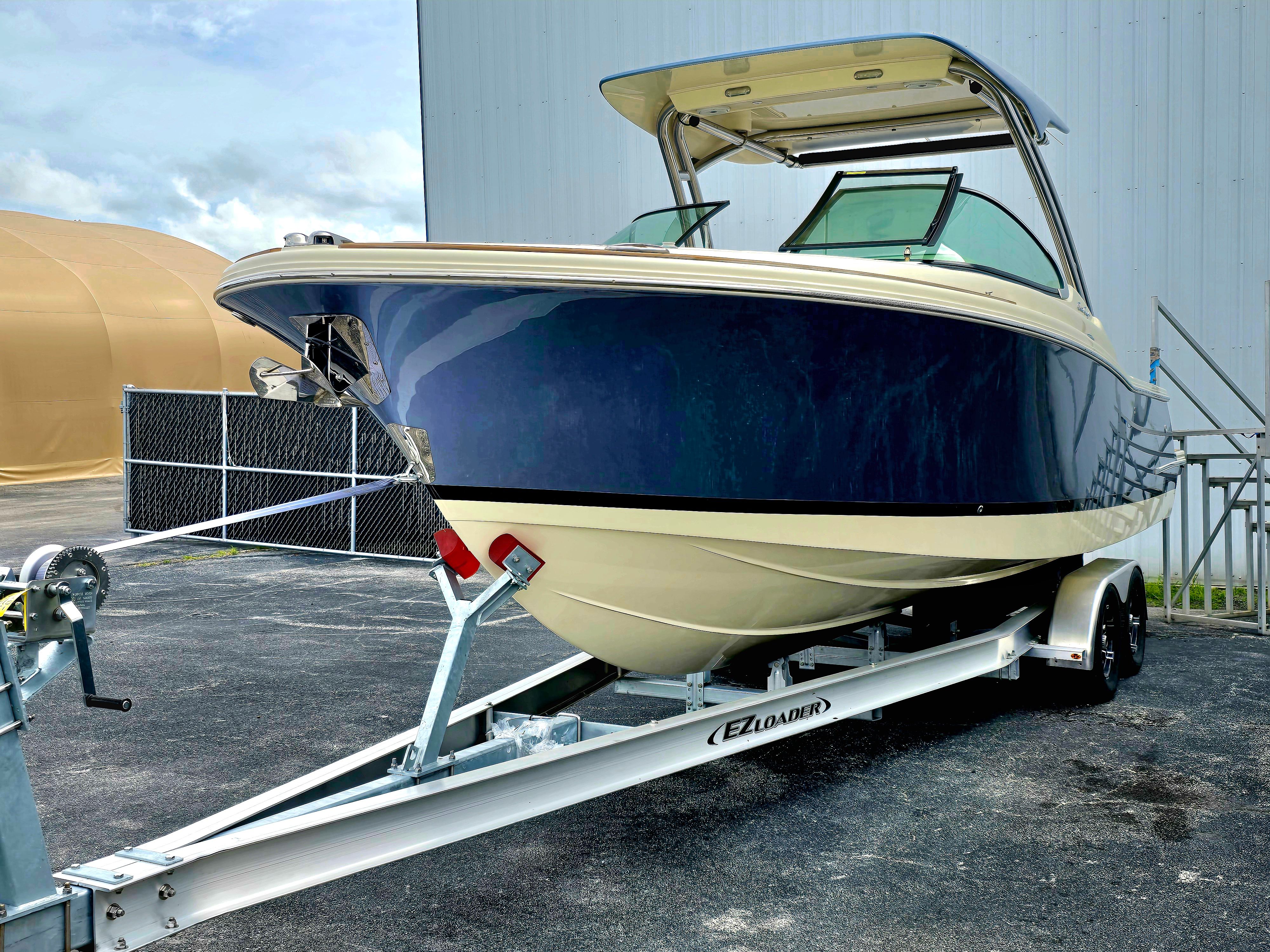 The 2022 Chris-Craft Calypso 27 stands out as a premium dual console boat, offering a harmonious balance of comfort, style, and functionality. Measuring 27 feet in length, this vessel provides ample space for friends and family to relax and enjoy the open water. As a used Chris-Craft boat for sale, this Calypso 27 has been meticulously maintained and boasts only 70 engine hours, making it an exceptional opportunity for those seeking a nearly-new boat with proven reliability. The sleek lines, classic Chris-Craft styling, and attention to detail make this boat a head-turner at any marina or dock.