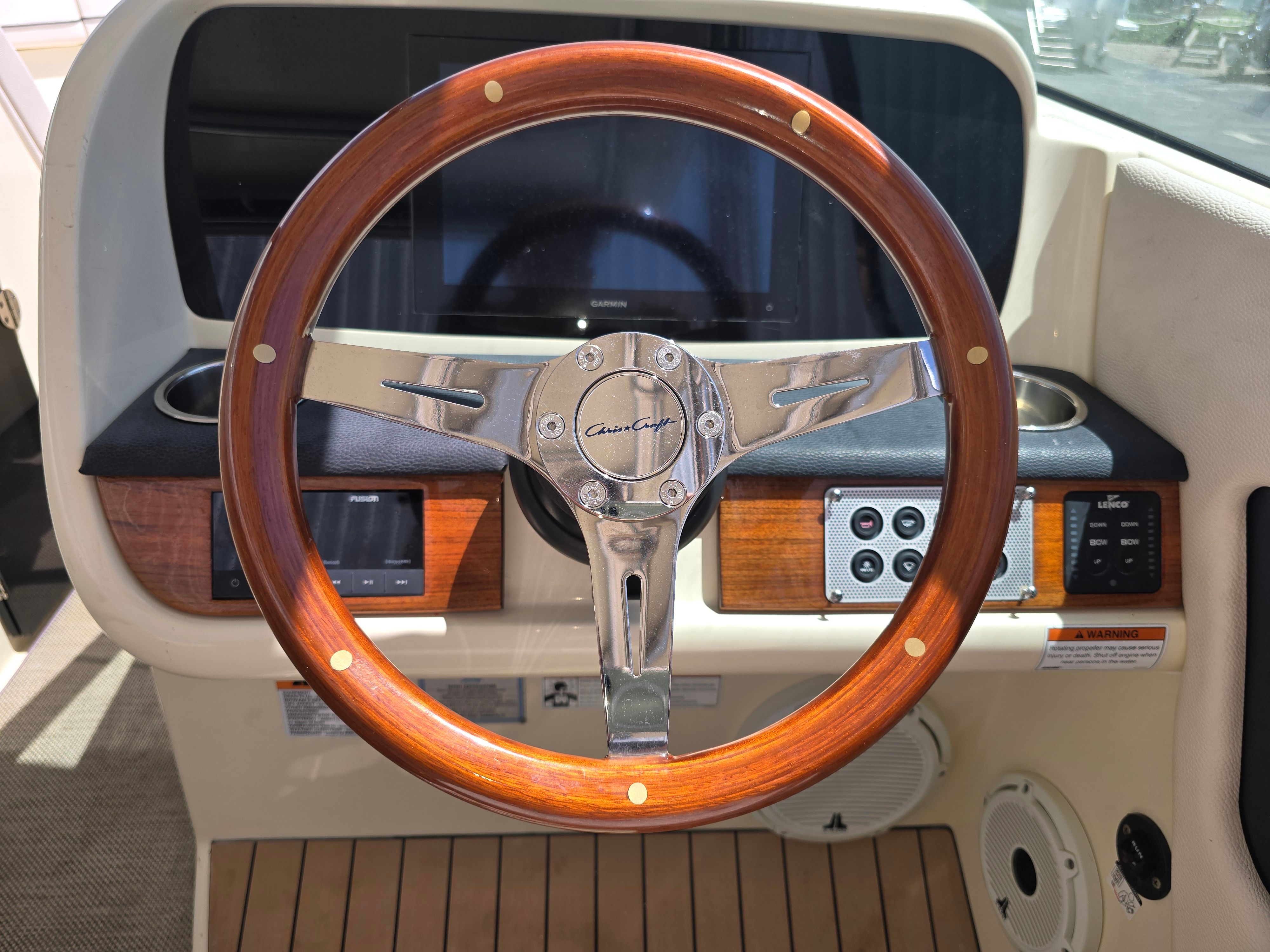 The 2022 Chris-Craft Calypso 27 is thoughtfully designed to enhance every aspect of your boating lifestyle. The dual console layout provides versatile seating and protection from the elements, making it ideal for both sunny days and unexpected weather. The spacious cockpit and bow seating areas offer plenty of room for guests to lounge, socialize, or soak up the sun. High-quality materials and finishes are evident throughout, reflecting Chris-Craft’s commitment to luxury and durability. The ergonomic helm station ensures that the captain enjoys excellent visibility and intuitive control, while the well-appointed seating and storage solutions maximize comfort and convenience for everyone on board.