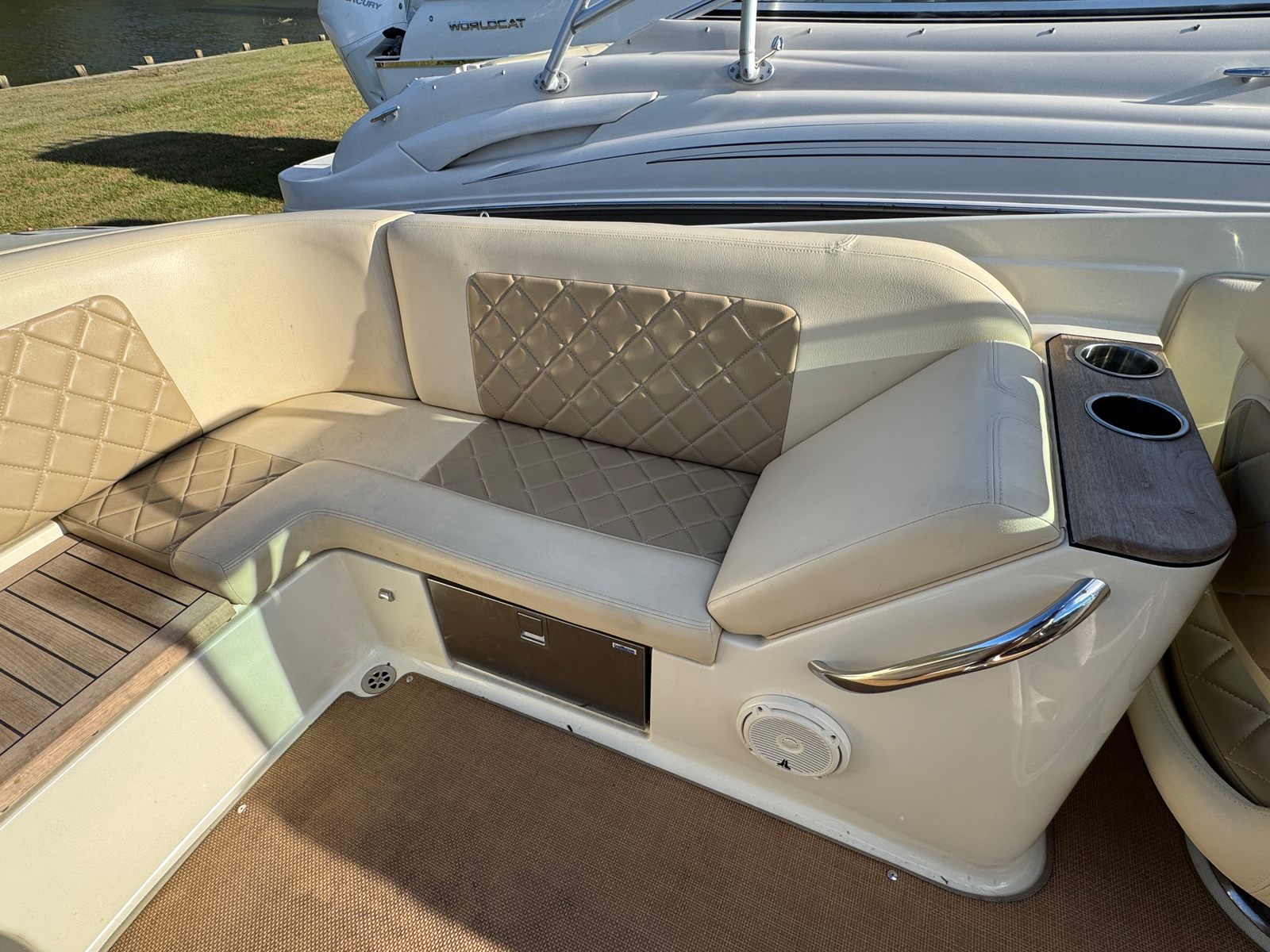 Under the hood, the Chris-Craft 25 Launch is powered by a robust 300-horsepower engine, delivering exhilarating performance and smooth handling. With only 181 engine hours, this boat has plenty of life left for countless adventures. The powerful engine ensures quick acceleration, responsive steering, and the ability to cruise comfortably at a variety of speeds. Whether you are looking to enjoy a leisurely ride along the shoreline or experience the thrill of water sports, this bowrider is equipped to deliver an exceptional on-water experience.