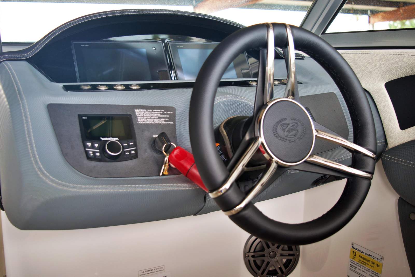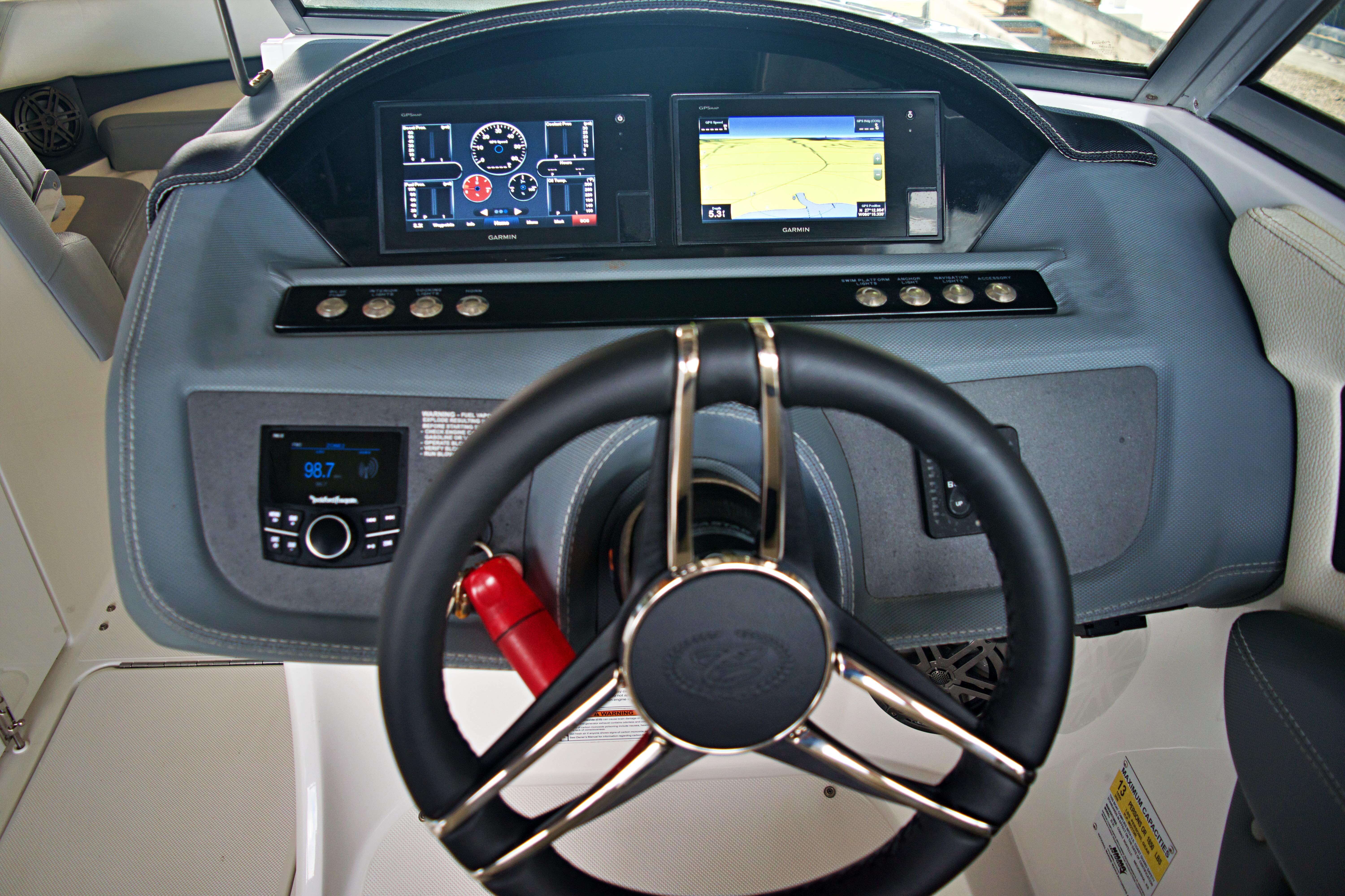- Garmin Dual 7" Touchscreen Displays (Instrument Cluster, GPS Chartplot Navigation, Engine Diagnostics, Water Depth, and more!)