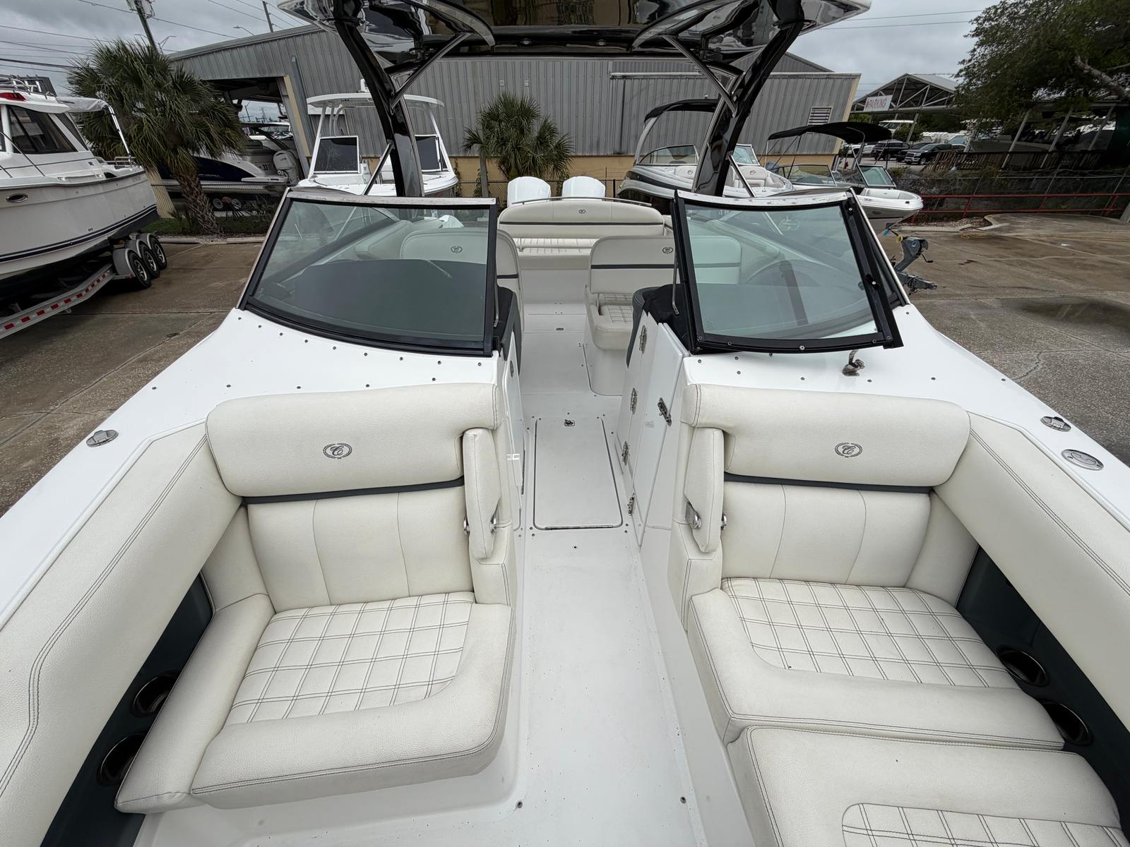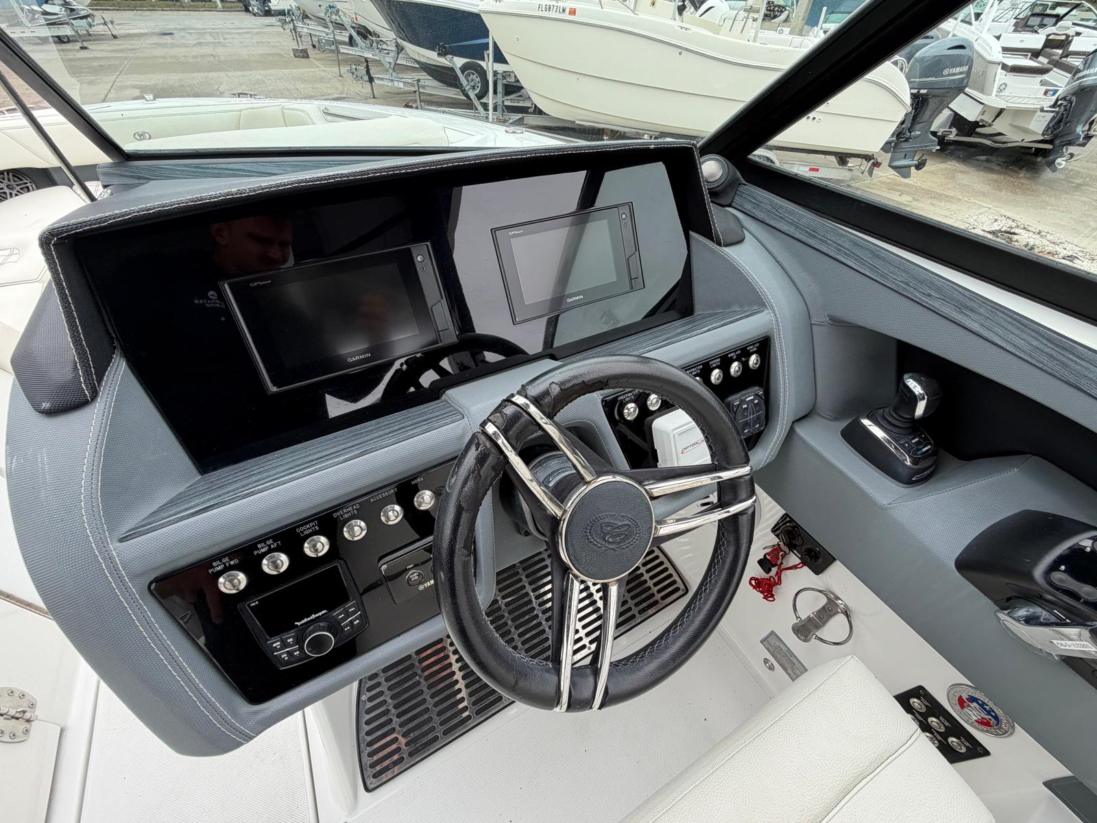 The Cobalt 30 SC is as practical as it is fun. The center console design provides excellent visibility for the captain and makes docking and maneuvering in tight spaces a breeze. The spacious deck offers plenty of room for storage, ensuring that all your gear, from fishing rods to water toys, is easily accessible. The efficient twin-engine setup not only delivers impressive power but also contributes to better fuel economy, allowing you to spend more time on the water and less time at the pump. Whether you are planning a day of fishing, a weekend getaway, or a casual cruise, this center console boat for sale adapts to your needs with ease.