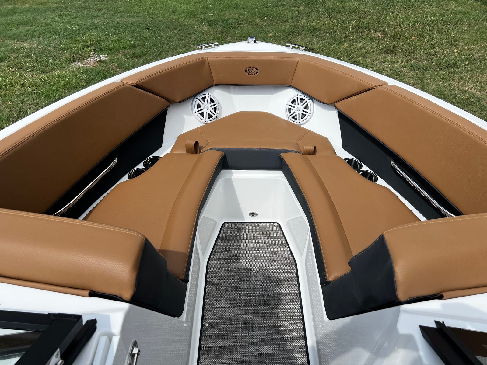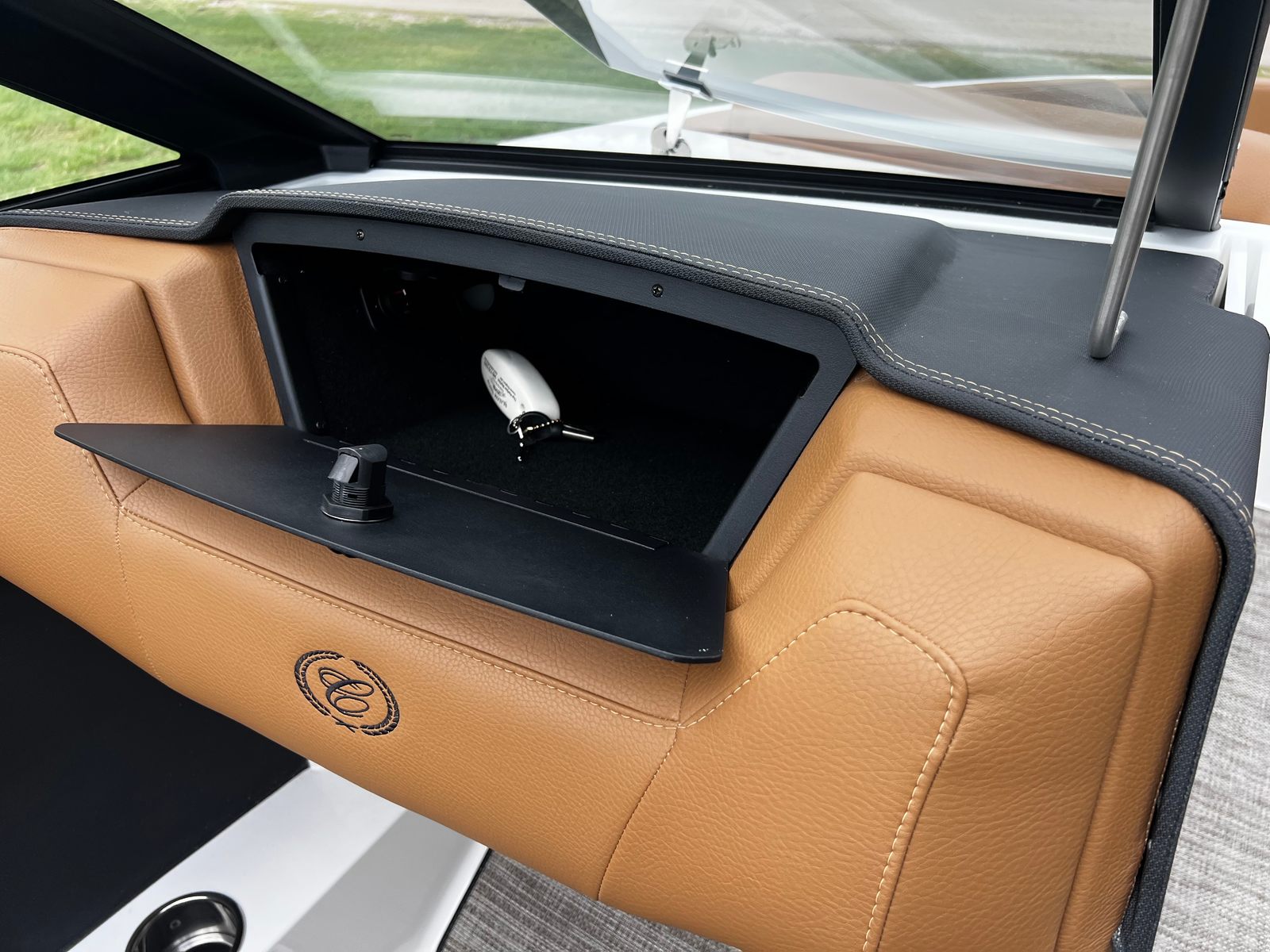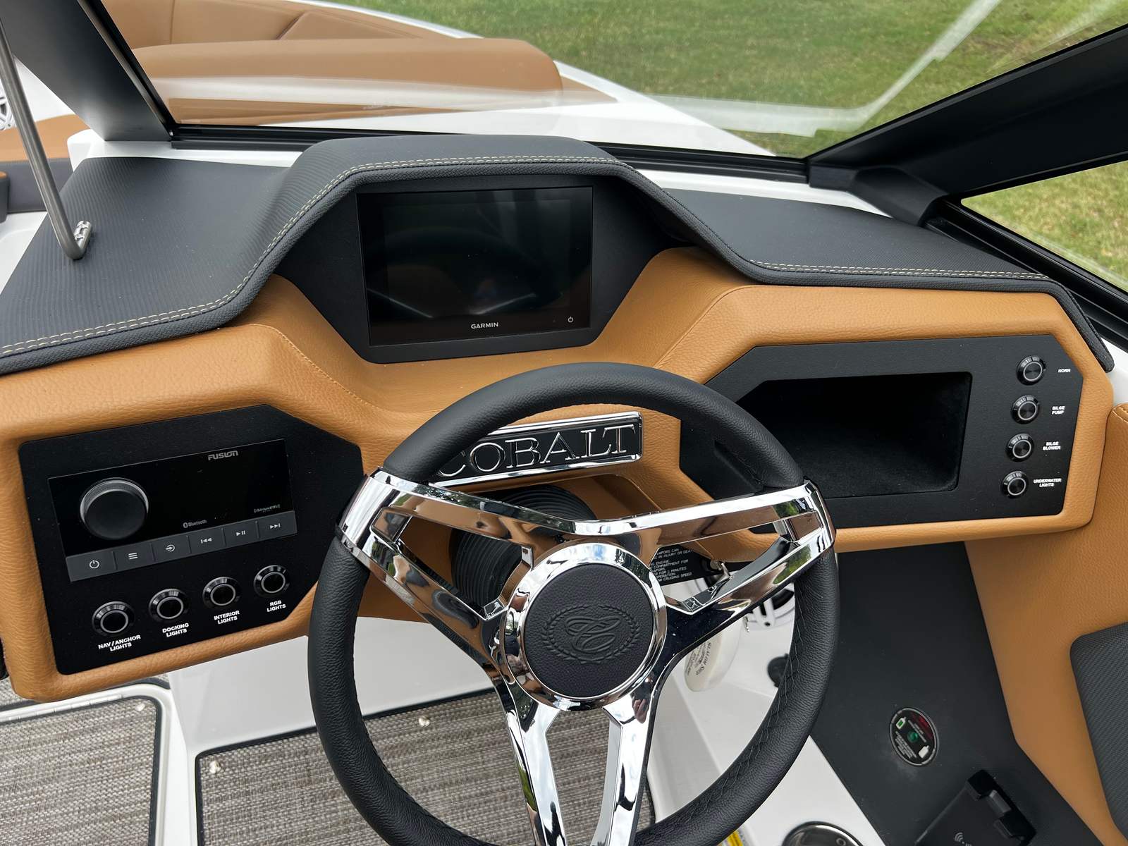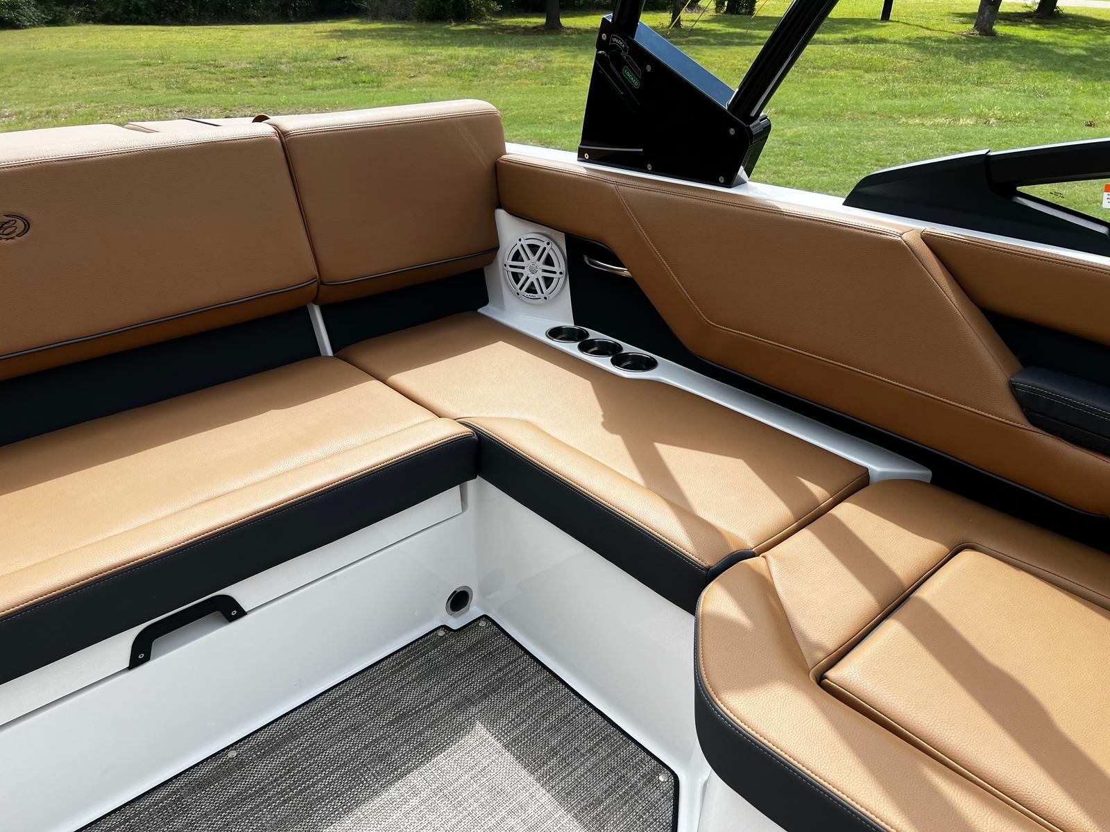 The Cobalt CS22 Bowrider is packed with premium features designed to enhance your boating experience. The exterior boasts a striking Hull Side in White, complemented by an Accent Stripe in Graphite Gray and a Hull Bottom in Rich Ebony, creating a sophisticated and modern look. The Cobalt Letters in Black Satin add a touch of elegance and brand distinction.Step inside to discover the luxurious Caramel/Carbon Interior, offering both comfort and style. The floor is covered with Seagrass in Raw Umber, providing a soft, durable surface that’s perfect for barefoot relaxation. The manual adjustable seat (standard) ensures personalized comfort for the captain, while the Battery Switch with ACR-Dual system offers added convenience and safety.For entertainment, the Premium Sound system with Transom Remote (Fusion) delivers crystal-clear audio, allowing you to set the perfect mood for any outing. Whether you’re hosting a party or enjoying a quiet sunset cruise, the sound system ensures your favorite tunes are always within reach.