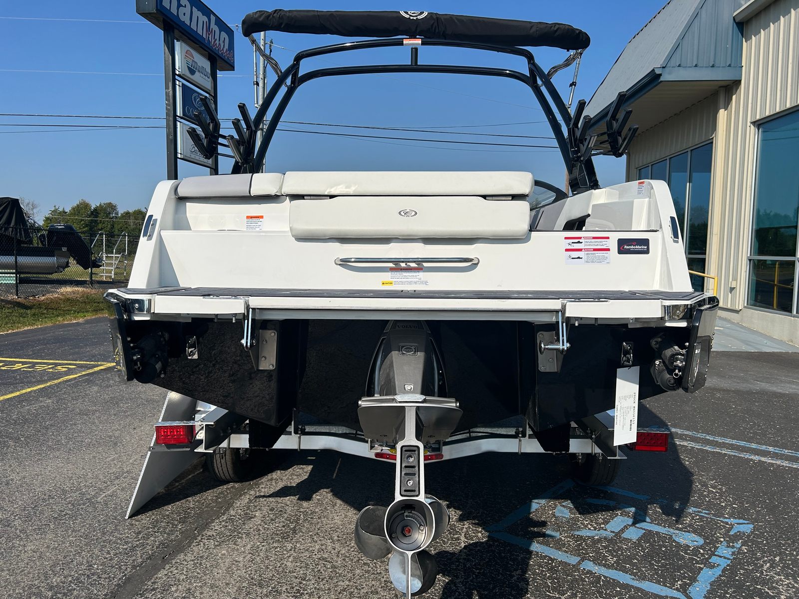 Practicality is at the heart of the Cobalt CS23 Surf’s design. The fender clips with line make docking and securing the boat simple and efficient, reducing stress and saving time. The mooring cover with arch helps protect your investment from the elements, while the rearview mirror enhances safety during busy days on the water. The Sof-Trac mat on the swim platform provides a safe, comfortable surface for swimmers and those boarding the boat, making transitions smooth and enjoyable.The spacious interior and smart storage solutions ensure you have plenty of room for gear, snacks, and personal items, so you’re always prepared for a day of fun. The efficient Volvo V8 engine offers reliable performance and fuel economy, allowing you to spend more time enjoying the water and less time refueling. Every detail of the CS23 Surf is designed to make ownership easy, enjoyable, and hassle-free.