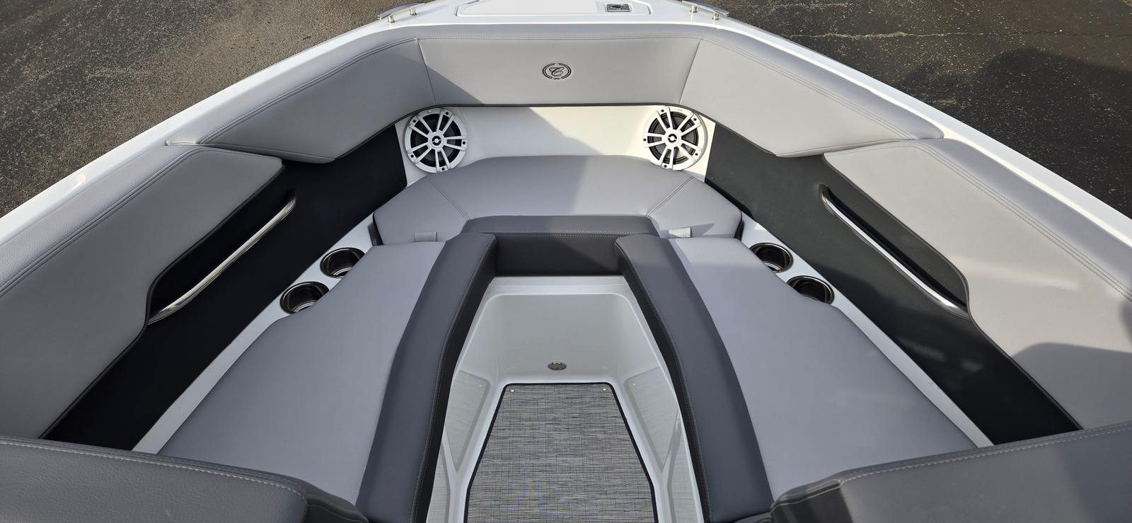 The Cobalt CS23 is as practical as it is stylish. The four fender clips with line simplify docking, making it easy to secure your boat even in busy marinas. The mooring cover with arch offers protection from sun, rain, and debris, preserving the boat’s pristine condition. The depth and water/air temperature gauge package—Smart—provides valuable information for safe navigation and planning your day on the water.Storage is ample and intelligently designed, allowing you to bring along all your gear without cluttering the deck. The efficient Volvo engine ensures you get the most out of every gallon of fuel, reducing operating costs and maximizing your time on the water. The CS23’s manageable size makes it easy to trailer, launch, and store, giving you the freedom to explore new destinations with confidence.