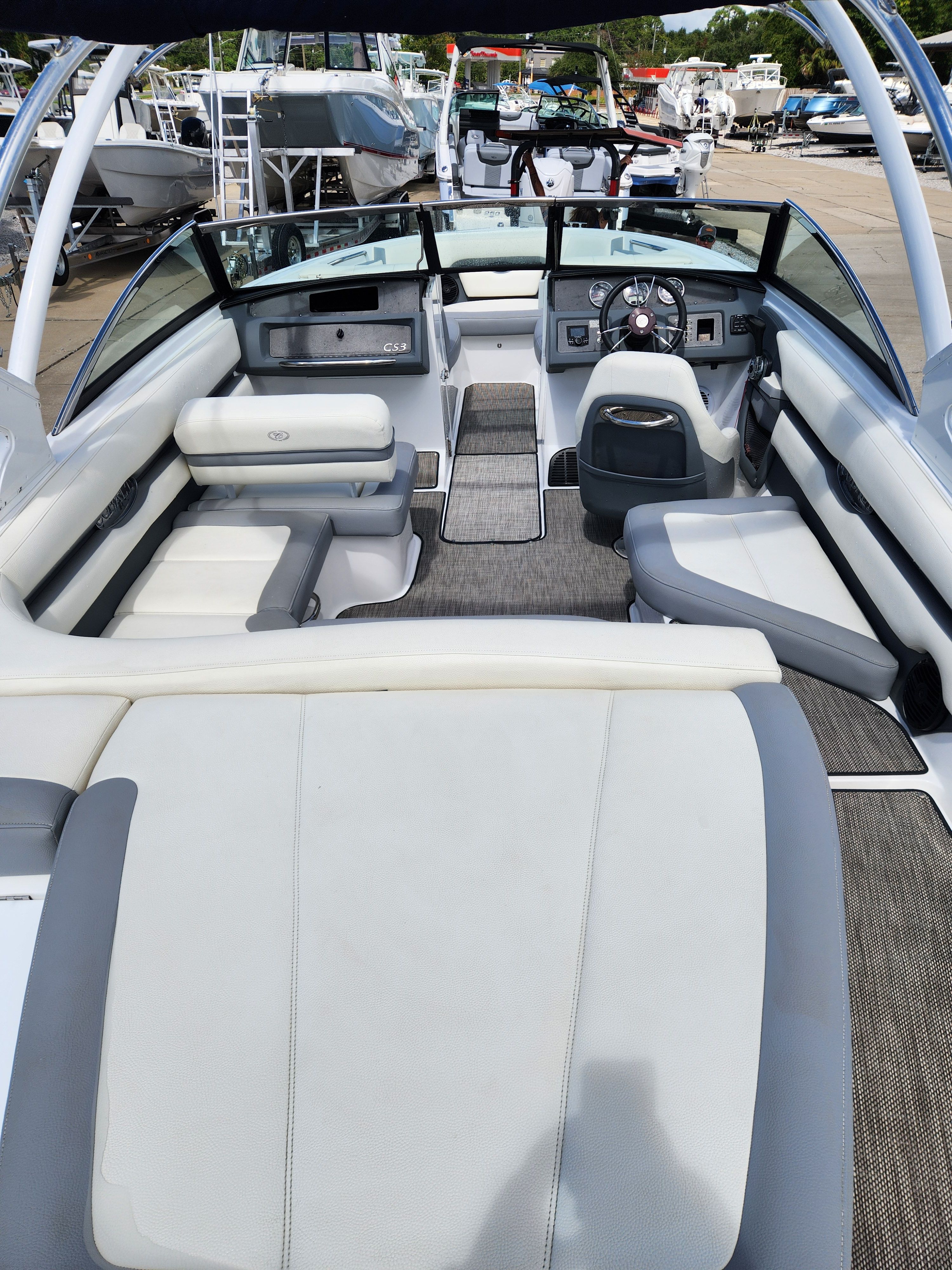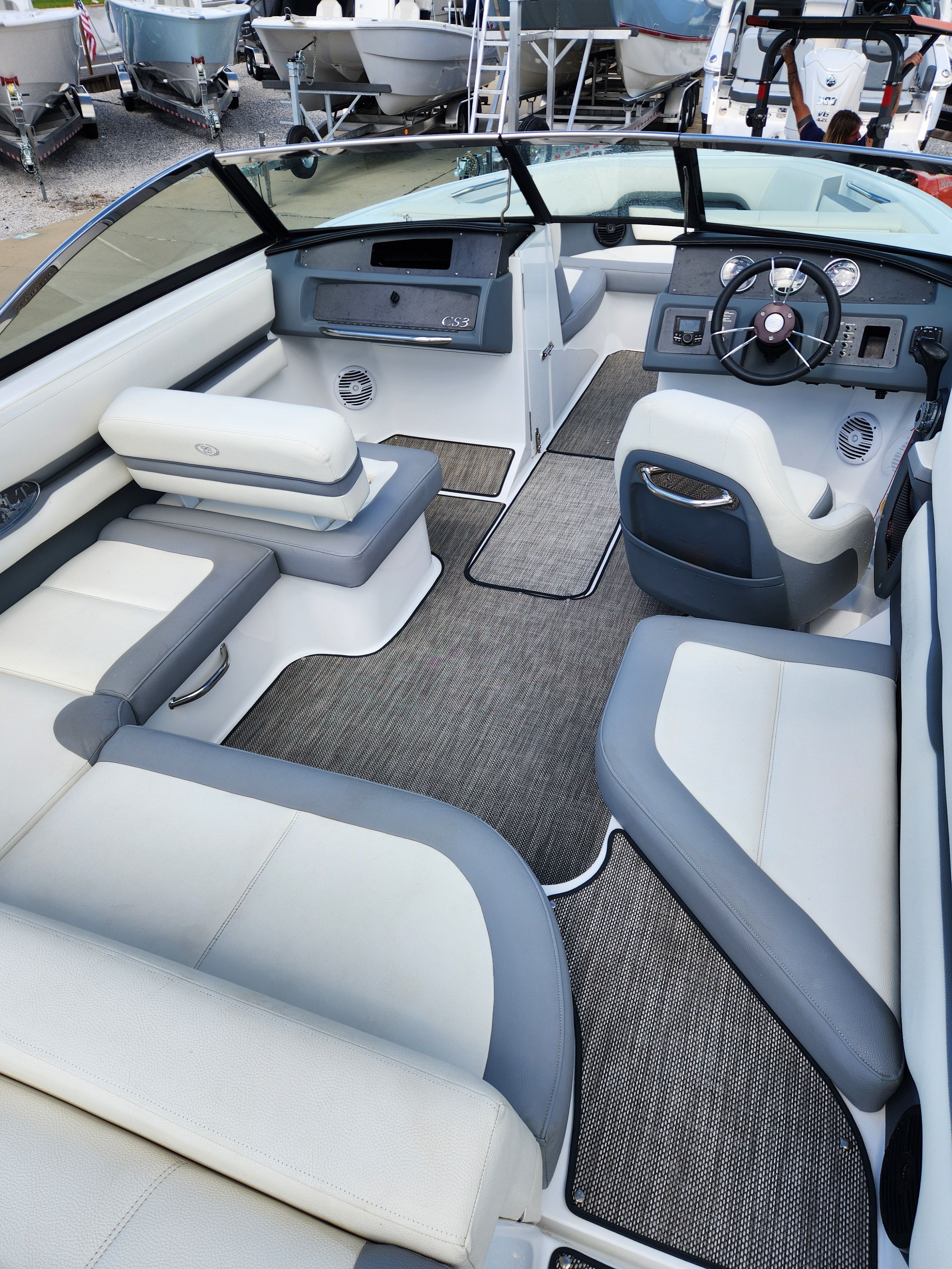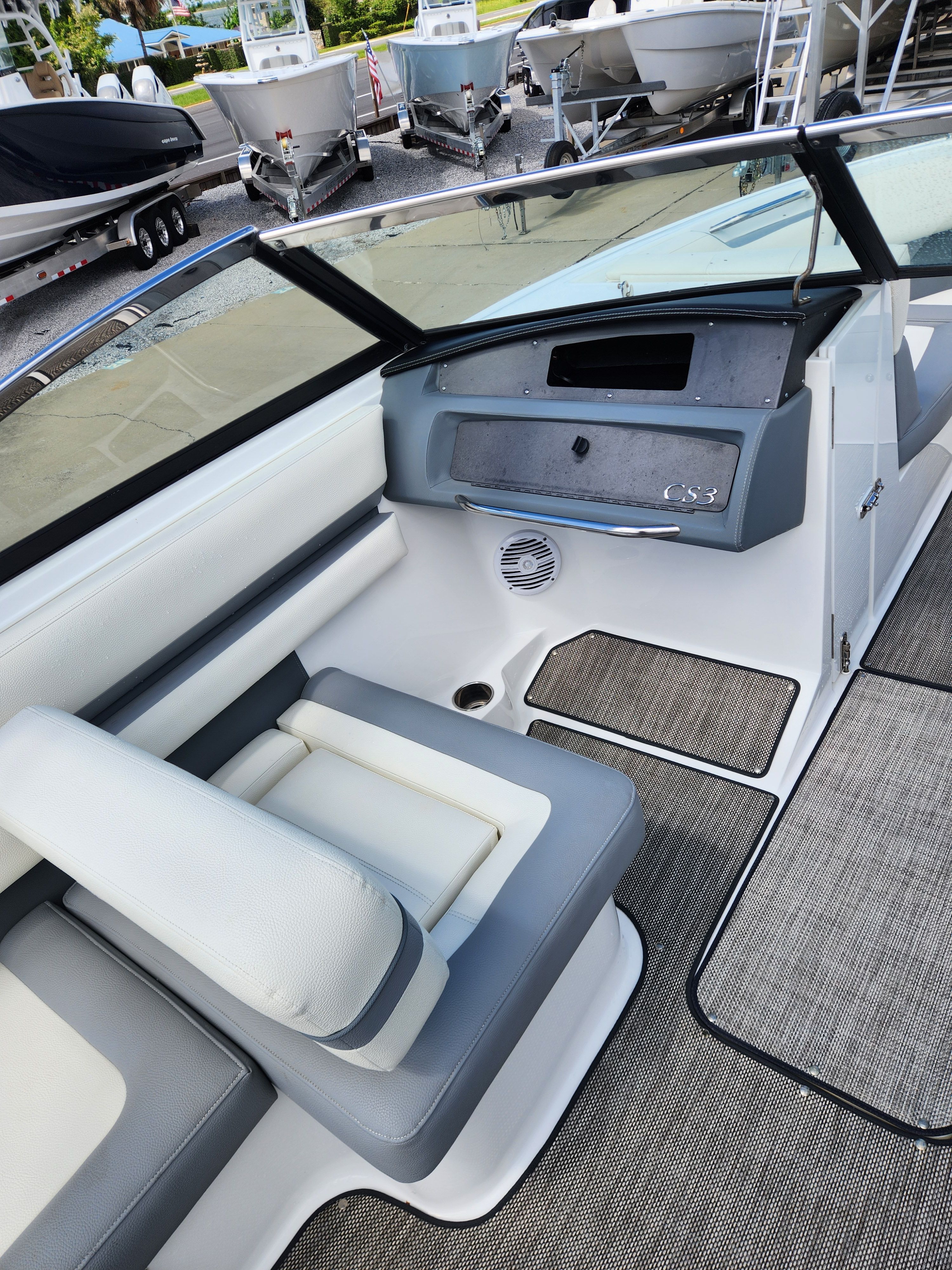 The Cobalt CS23 Bowrider is designed with both luxury and practicality in mind. Its spacious layout provides comfortable seating for passengers, allowing everyone to relax and enjoy the ride. The open Bowrider configuration is perfect for socializing, sunbathing, or simply taking in the views. The high-quality materials and finishes throughout the boat reflect Cobalt’s commitment to excellence, ensuring durability and a premium feel.With a length of 23.42 feet, the CS23 offers plenty of room for gear, refreshments, and recreational equipment. The thoughtful design maximizes usable space, making it easy to move around and enjoy every moment on board. The single-engine setup simplifies maintenance and operation, while the 280 horsepower ensures you have all the power you need for a variety of activities.