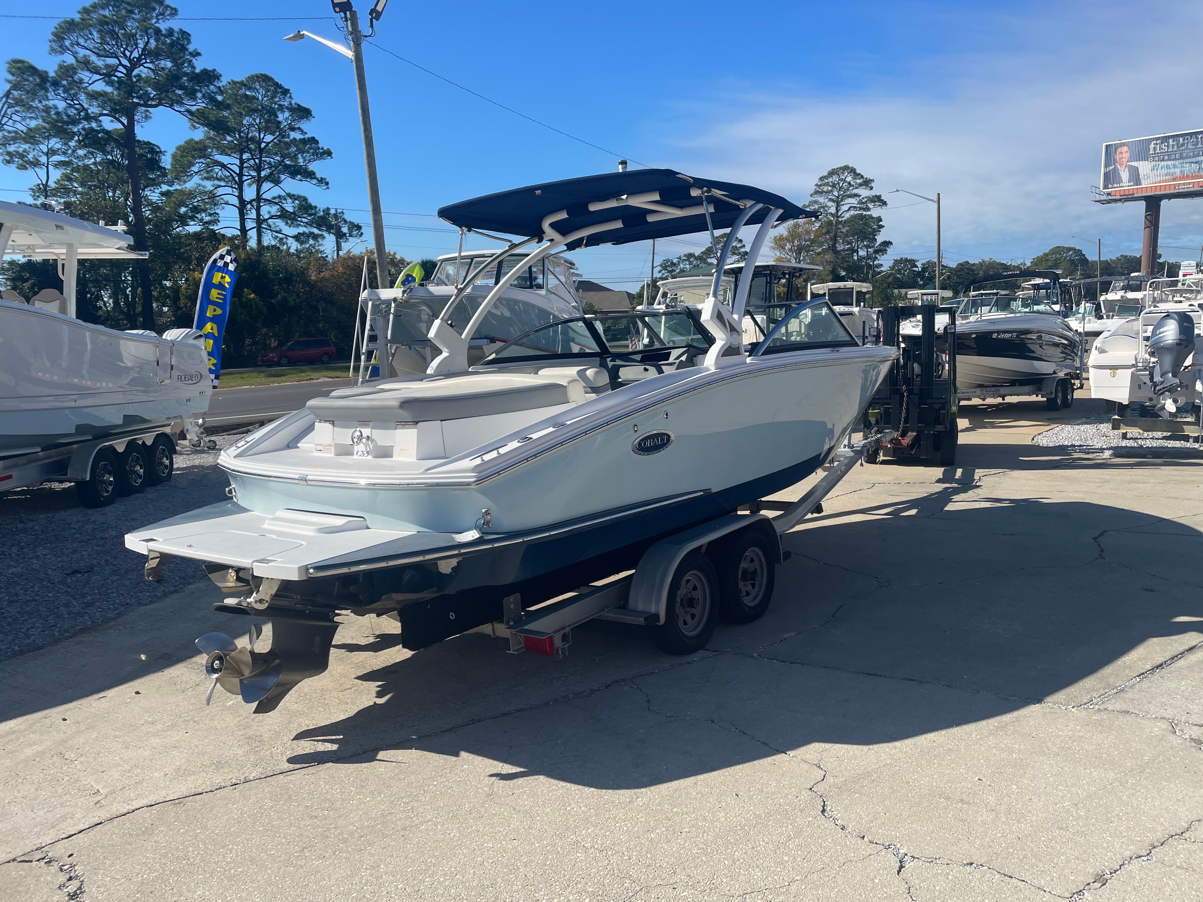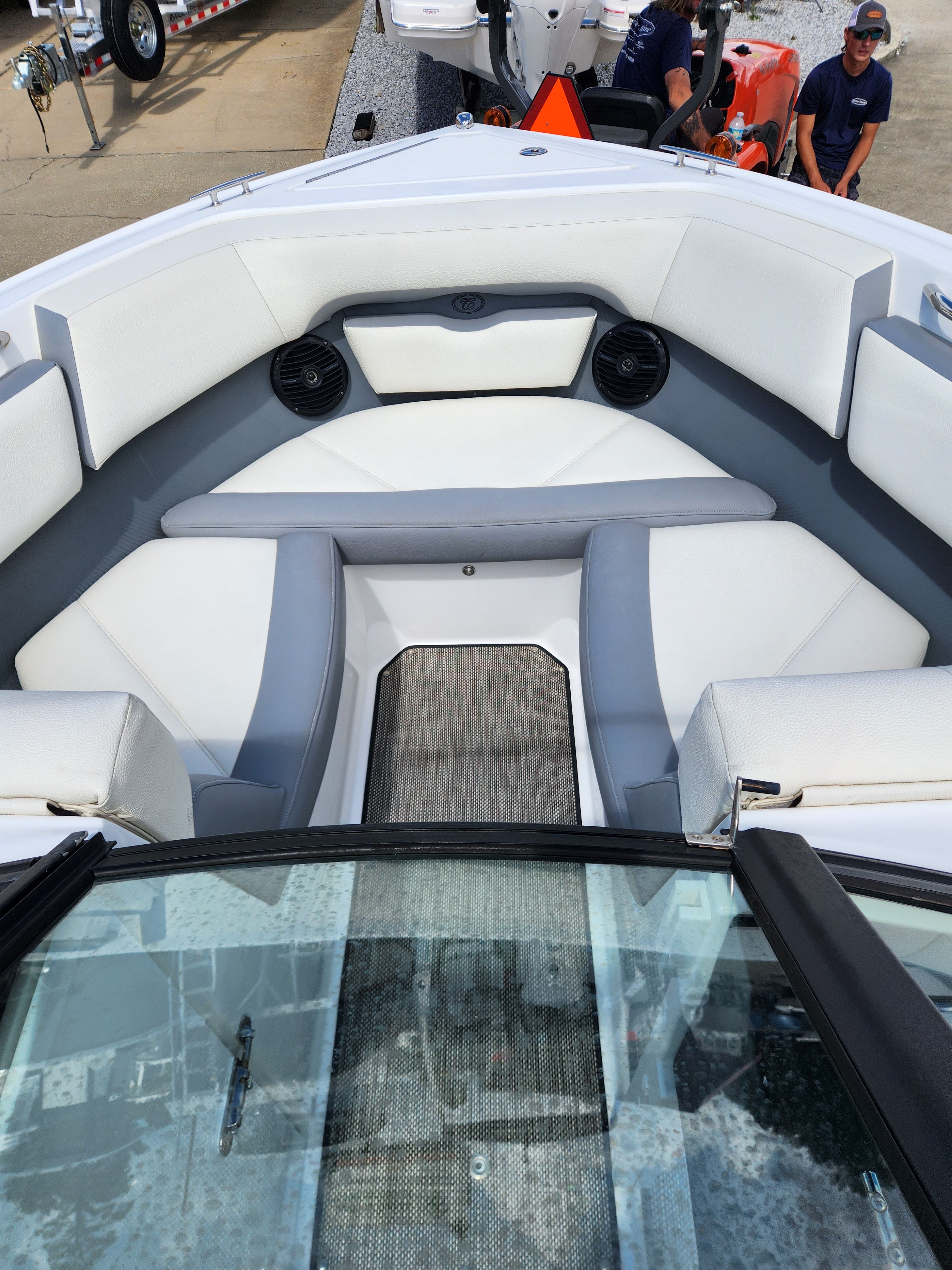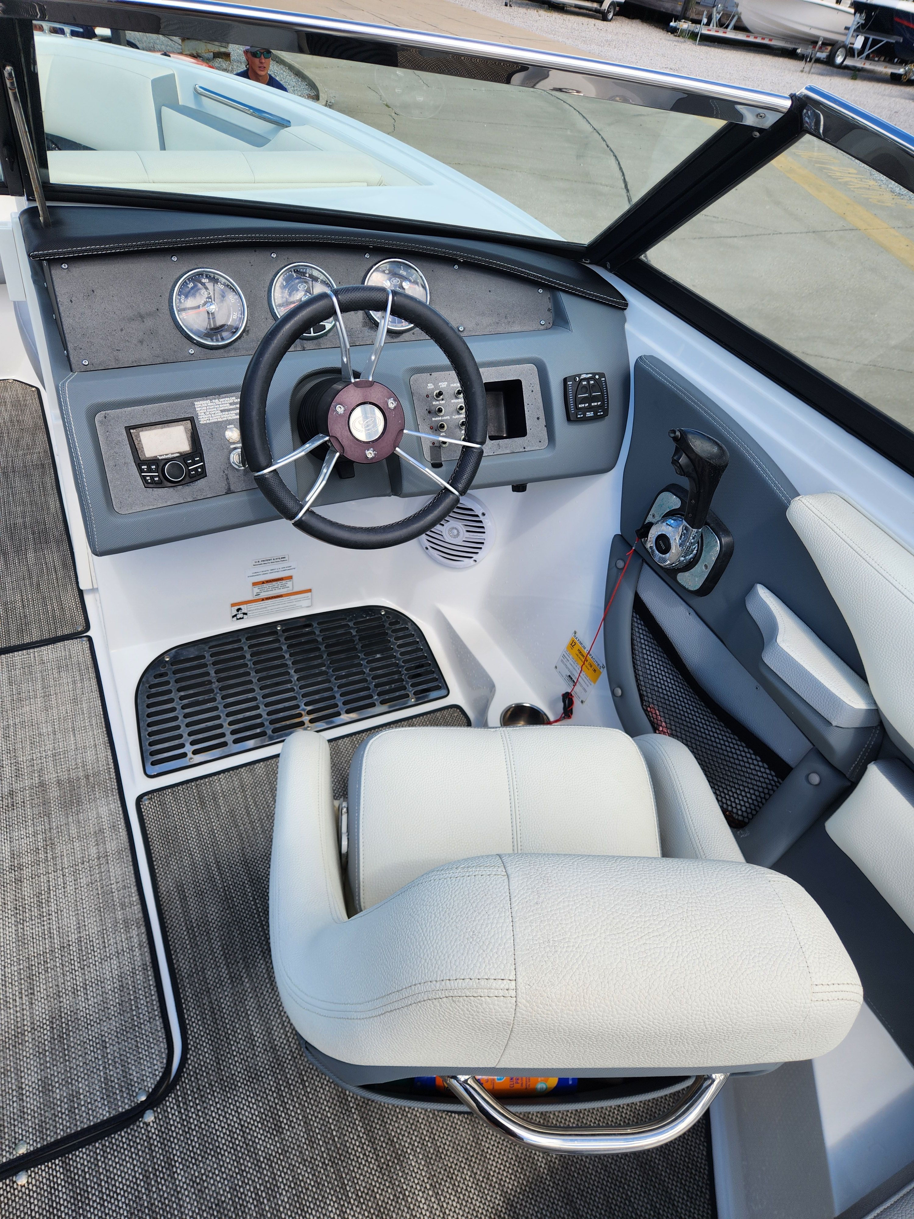 The Cobalt CS23 Bowrider is designed with both luxury and practicality in mind. Its spacious layout provides comfortable seating for passengers, allowing everyone to relax and enjoy the ride. The open Bowrider configuration is perfect for socializing, sunbathing, or simply taking in the views. The high-quality materials and finishes throughout the boat reflect Cobalt’s commitment to excellence, ensuring durability and a premium feel.With a length of 23.42 feet, the CS23 offers plenty of room for gear, refreshments, and recreational equipment. The thoughtful design maximizes usable space, making it easy to move around and enjoy every moment on board. The single-engine setup simplifies maintenance and operation, while the 280 horsepower ensures you have all the power you need for a variety of activities.