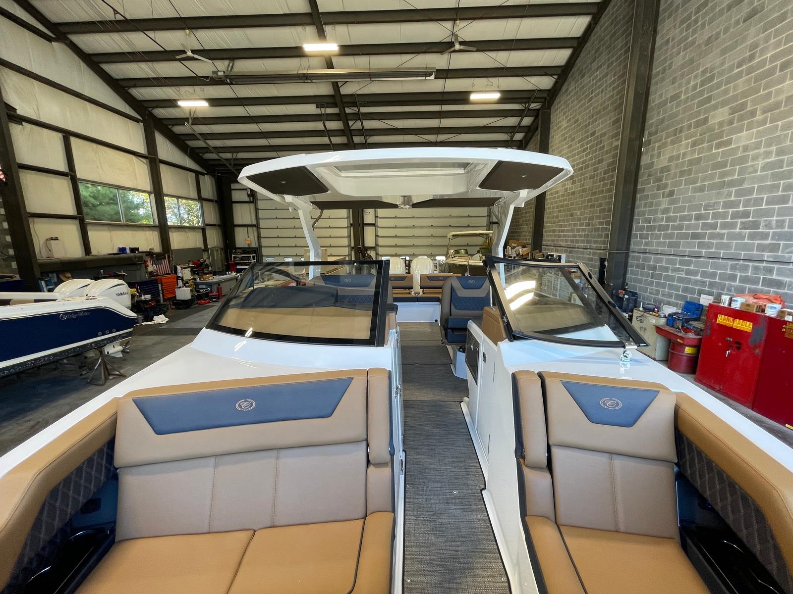 The R31 OB is designed with the modern boater in mind, offering practical features that enhance every aspect of ownership. The Bazttery Maintainer and Charger simplify maintenance, ensuring your boat is always ready for action. The Finder Clips with Line make organizing and securing your gear effortless, while the spacious cockpit allows for easy movement and storage. Docking is straightforward thanks to the responsive twin engines, and the air conditioner with heat extends your boating season, making this cruiser boat for sale a versatile choice for year-round enjoyment.