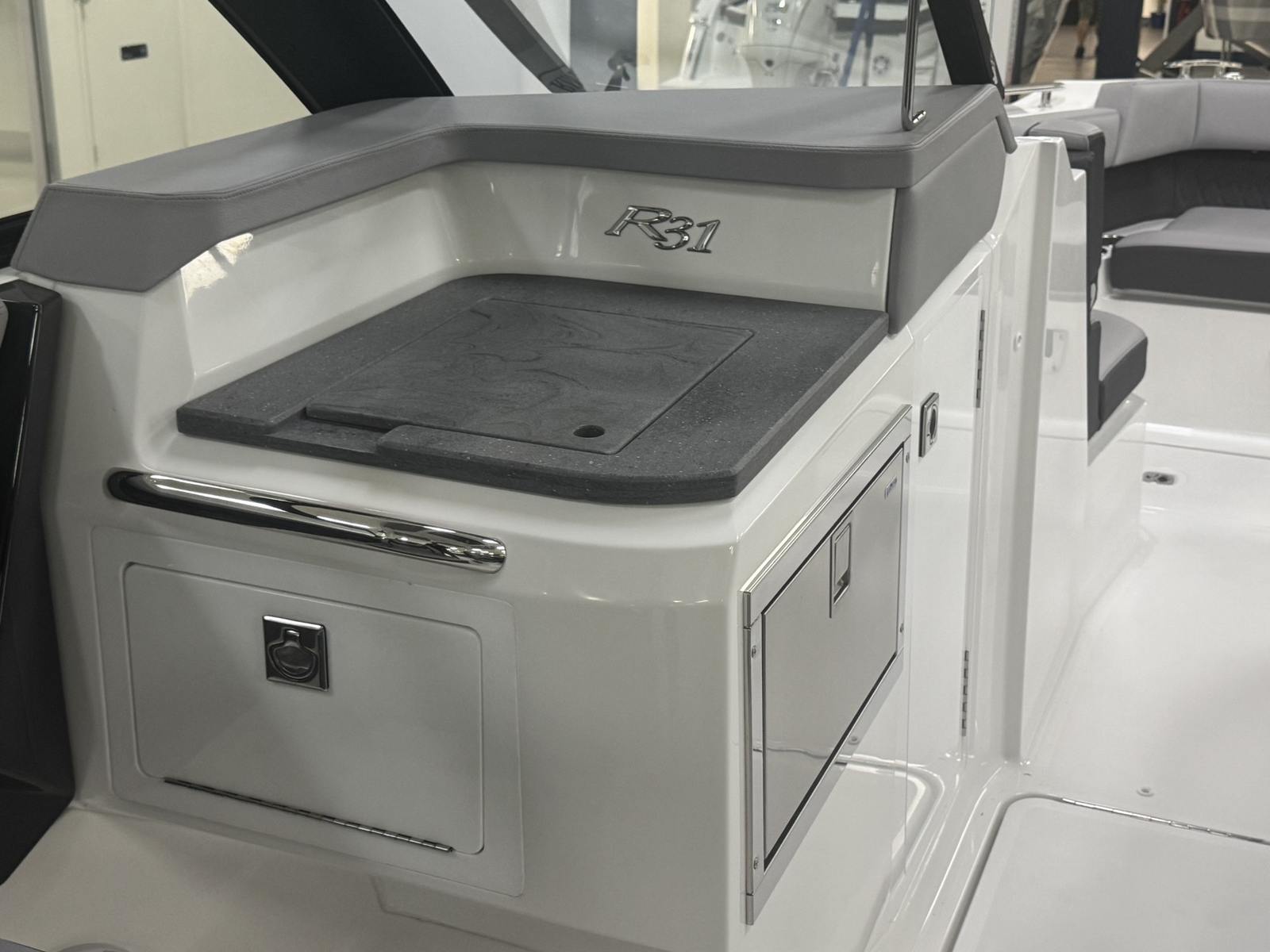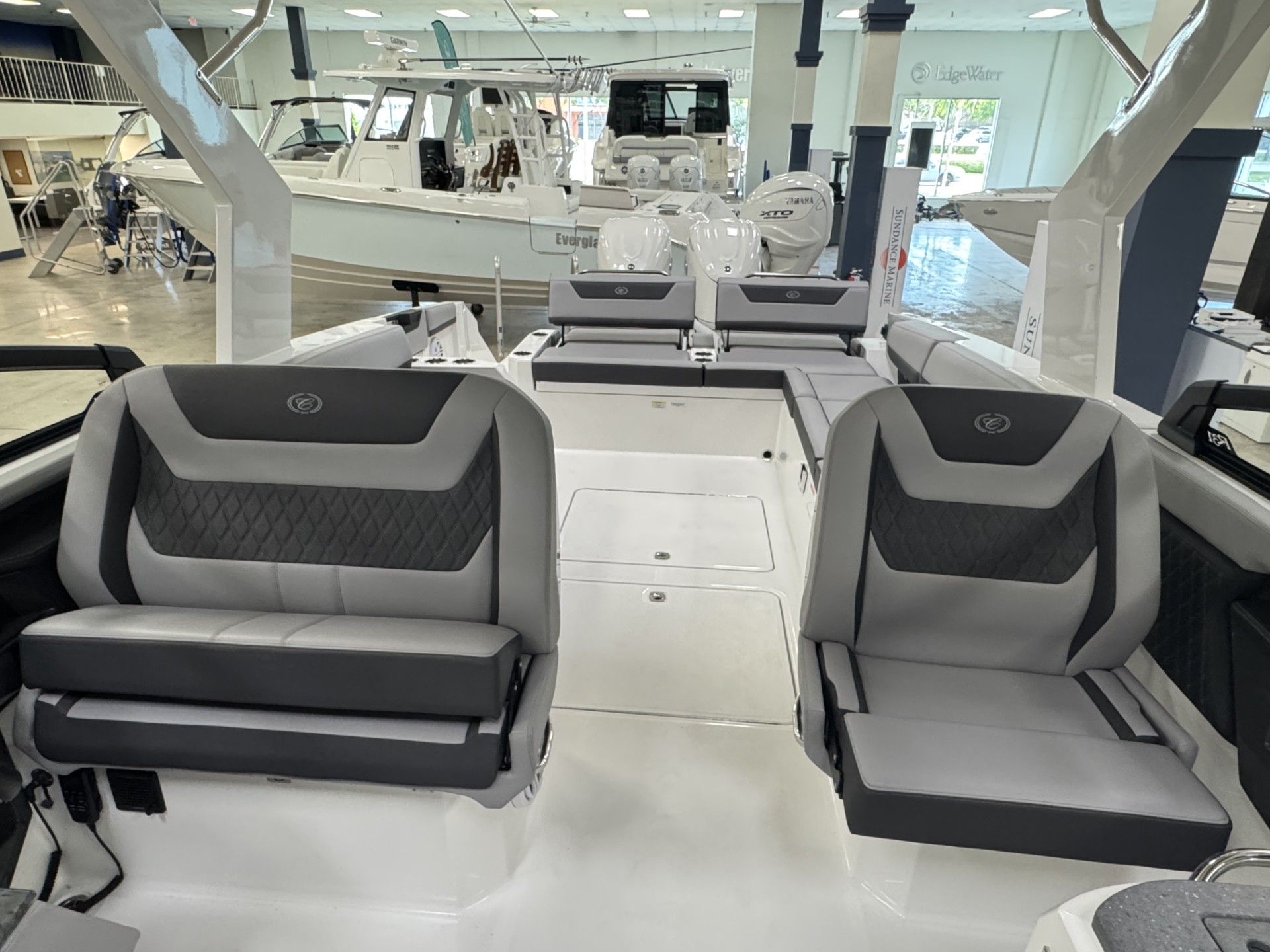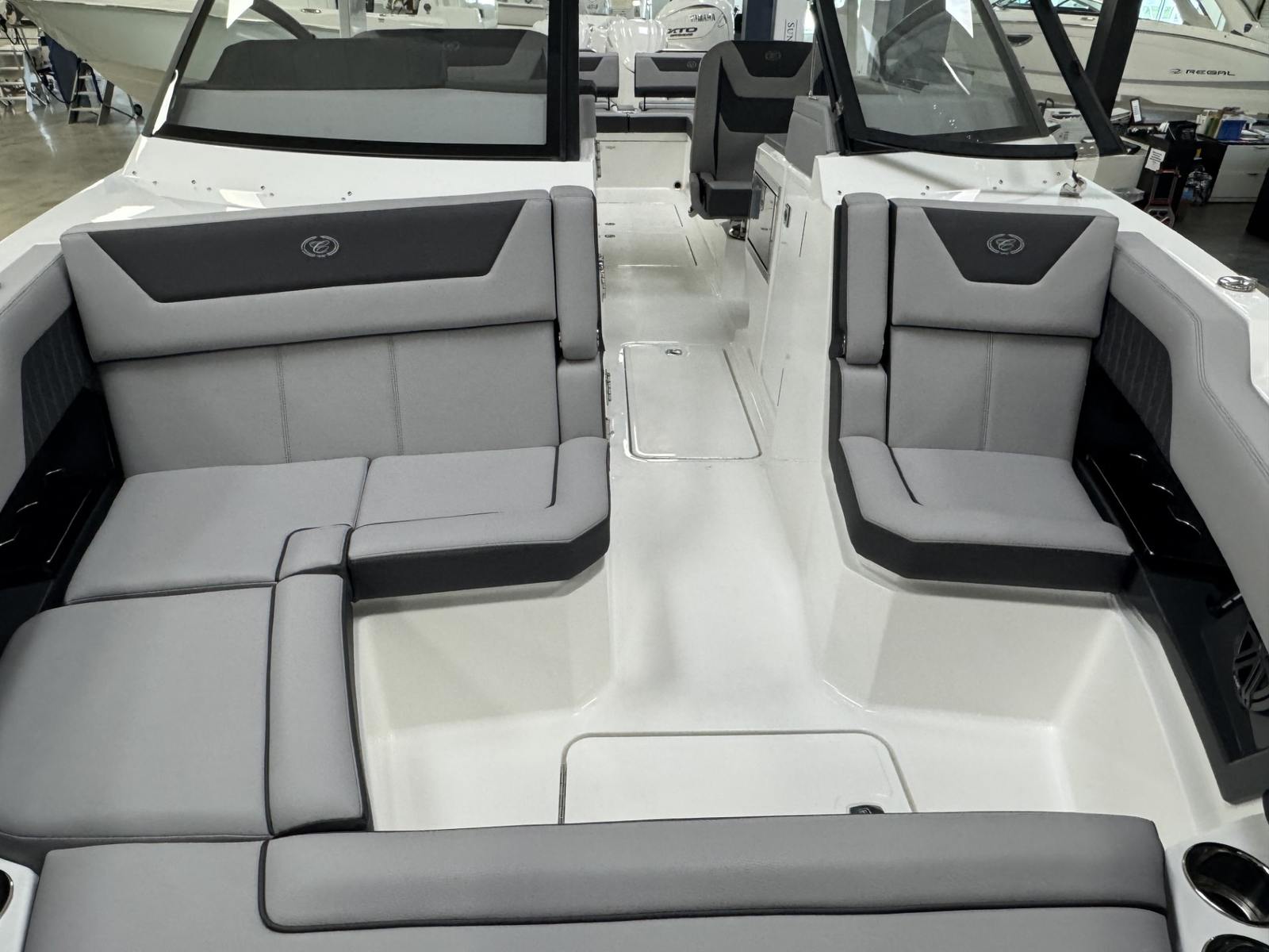 The 2026 Cobalt R31 OB is loaded with special features that elevate your boating experience to new heights. The striking Accent Stripe in Graphite Gray adds a touch of sophistication to the boat’s exterior, while the Arch with Hard Top and White with Electric Awning provide both style and practical shade for sunny days. Comfort is paramount, with Air Conditioner and Heating systems at both the head and helm, ensuring a pleasant environment regardless of the weather.For added convenience, the Battery Maintainer/Charger keeps your power systems in top condition, while the Bow Tonneau Cover and Cockpit Tonneau Cover in Ebony protect your boat when not in use. The elegant Cobalt Letters in White Satin add a signature touch of class. Entertaining guests is effortless with the Dinette Table in White, complete with bow and cockpit reception areas, creating the perfect setting for social gatherings.The Electric Adjustable Seat offers customizable comfort for the captain, and Fender Clips with Line and Storage Tub make managing your docking lines simple and organized. Every detail of the Cobalt R31 OB is thoughtfully designed to enhance your time on the water.