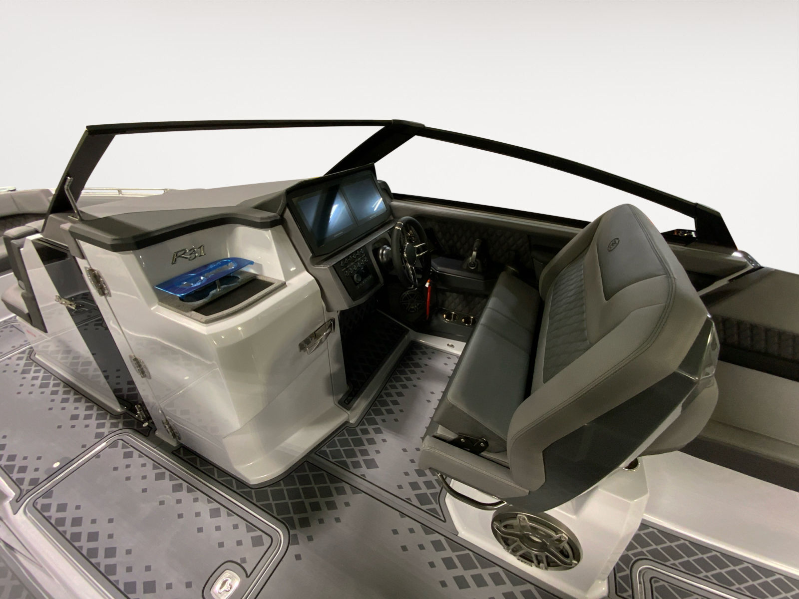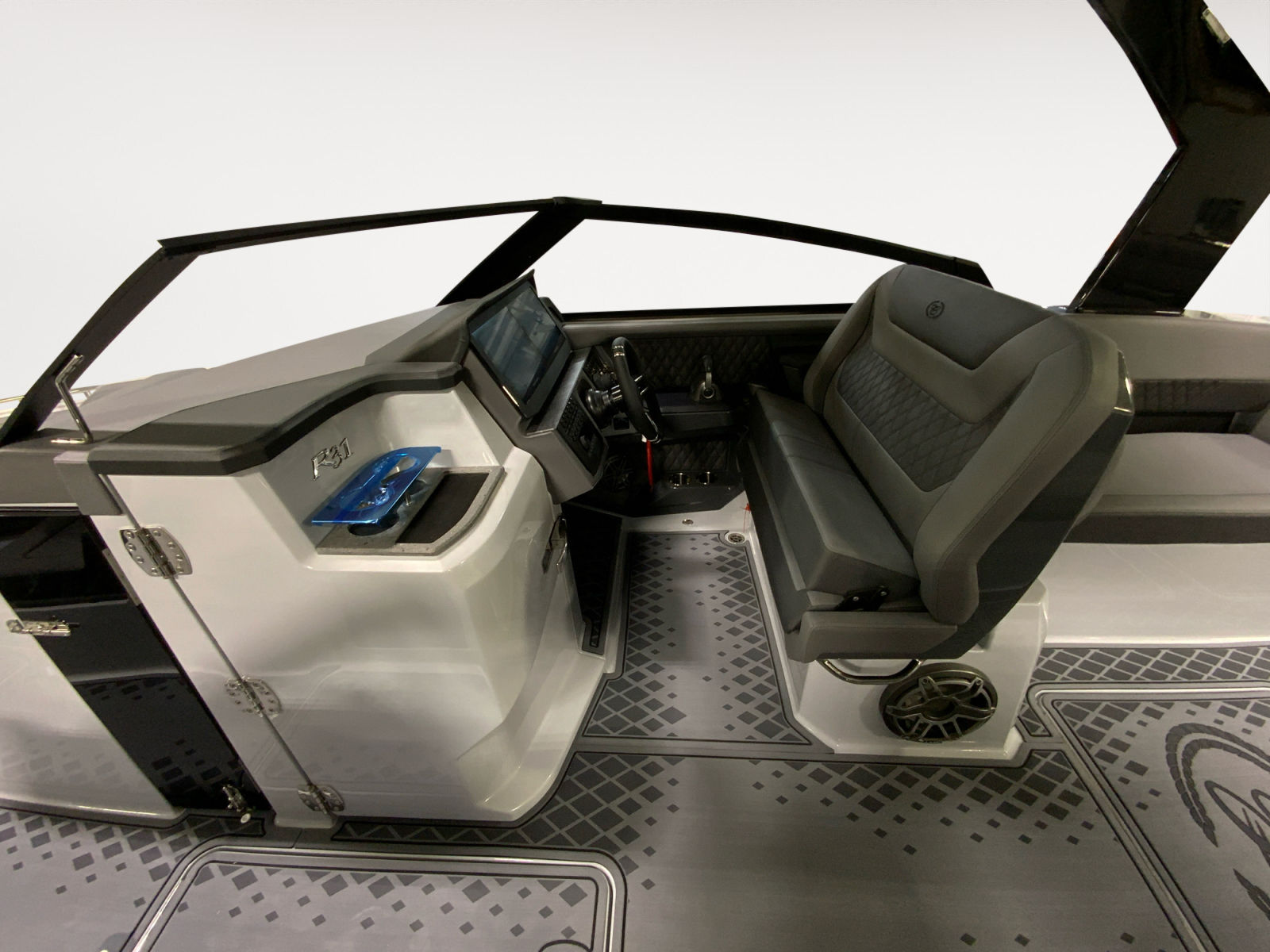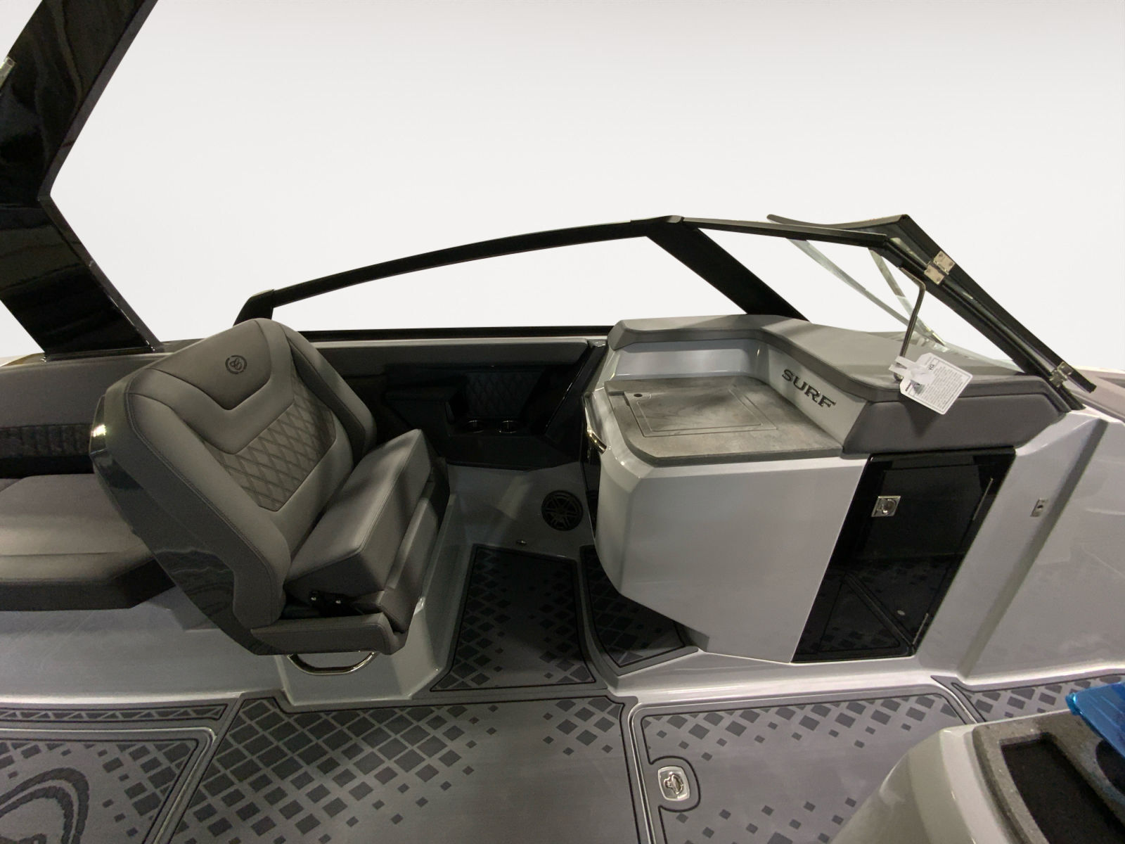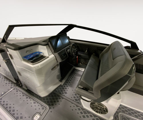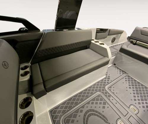 The Cobalt R31 Surf is packed with special features that elevate your time on the water. The striking Accent Stripe in Rich Ebony adds a touch of elegance to the boat’s exterior, while the Arch with Hard Top in Black provides both style and shade. The Air Compressor with Holder is a convenient addition for inflating water toys and equipment, ensuring you’re always ready for fun. The Battery Maintainer/Charger (110V) keeps your boat’s electrical systems in top condition, so you can focus on enjoying your day.Distinctive Cobalt Letters with Flag Emblem in Black Satin showcase the brand’s commitment to quality and attention to detail. The Cockpit Heater extends your boating season by providing warmth on cooler days, while the Dinette Table in White with Bow and Cockpit Recept offers a versatile space for dining and socializing. Fender Clips with Line (6) and Storage Tub make docking and storage hassle-free, and the Flagpole with Flag adds a patriotic touch to your vessel. The fold-down Footrest at the helm enhances comfort during long cruises, ensuring that every journey is as enjoyable as possible.