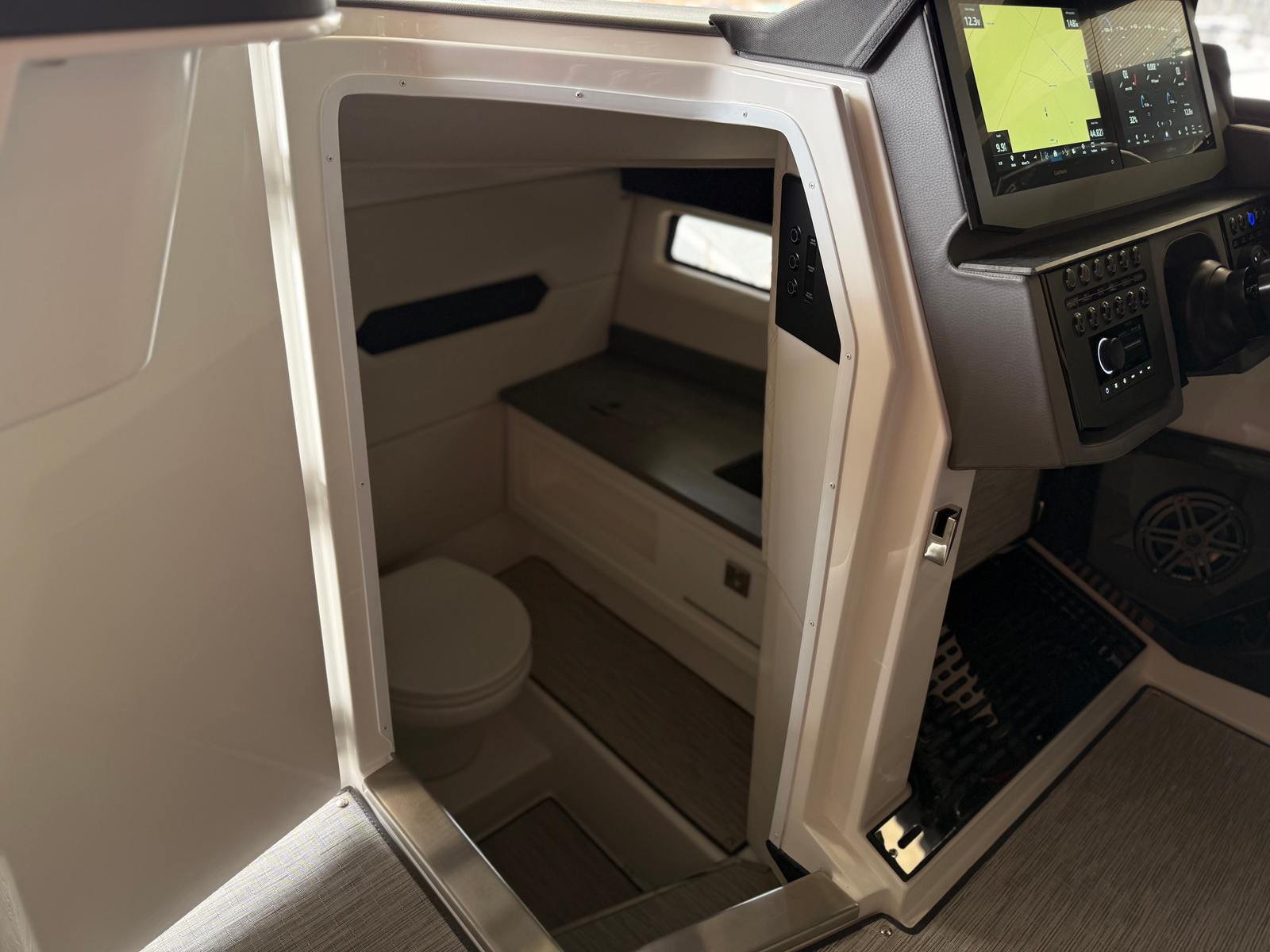 Beyond its impressive performance and luxurious amenities, the Cobalt R31 is designed with practical ownership in mind. The ample storage options throughout the boat make it easy to stow gear, water toys, and personal items, keeping the deck clutter-free and organized. The advanced docking system, supported by the AXIUS joystick control, simplifies the process of mooring and maneuvering in tight spaces, reducing stress and making every outing more enjoyable.Fuel efficiency is another hallmark of the R31’s design, allowing you to spend more time on the water and less time at the fuel dock. The durable construction and reliable systems mean you can count on your Cobalt cruiser for years of memorable adventures, with minimal maintenance and maximum peace of mind.
