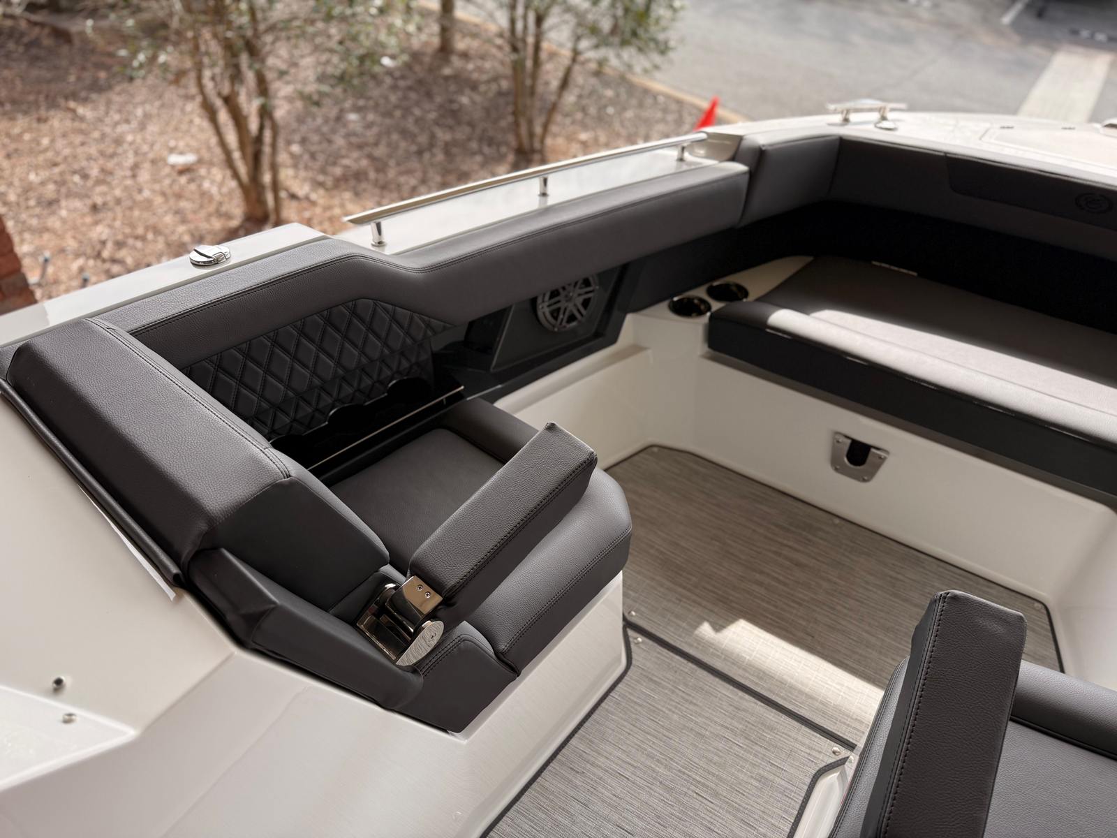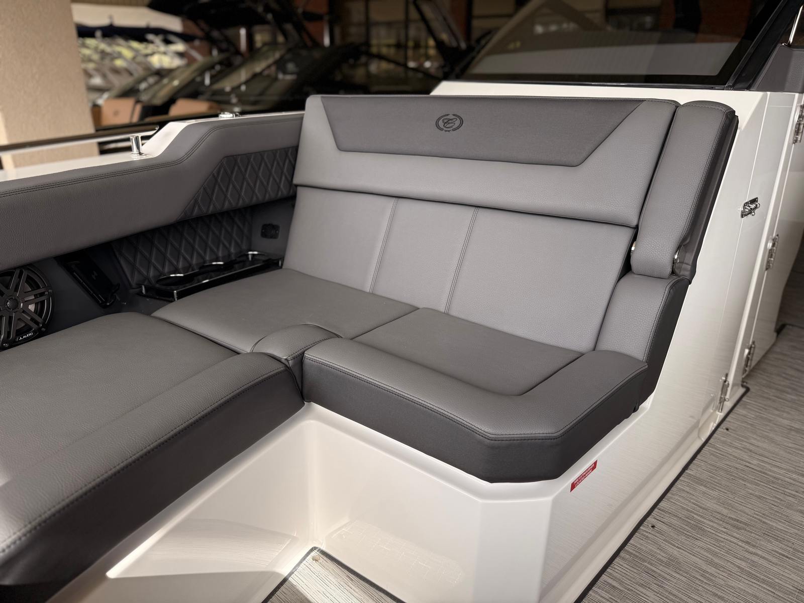 The 2026 Cobalt R31 is loaded with premium features that enhance comfort, convenience, and enjoyment on the water. The striking arch with a hard top, finished in black and equipped with an electric awning, provides both shade and style, allowing you to relax in comfort regardless of the weather. The battery maintainer/charger (110V) ensures your boat is always ready for action, while the bow tonneau cover and cockpit tonneau cover, both in elegant ebony, offer protection and a refined look.For added convenience, the R31 includes a comprehensive convenience package, a rear-facing camera for improved visibility, and distinctive Cobalt letters in white satin that showcase the brand’s commitment to quality. The dinette table, finished in white and equipped with bow and cockpit receptacles, creates the perfect setting for onboard meals and socializing. The electric adjustable seat allows you to find your ideal position for piloting or relaxing, ensuring maximum comfort throughout your journey.
