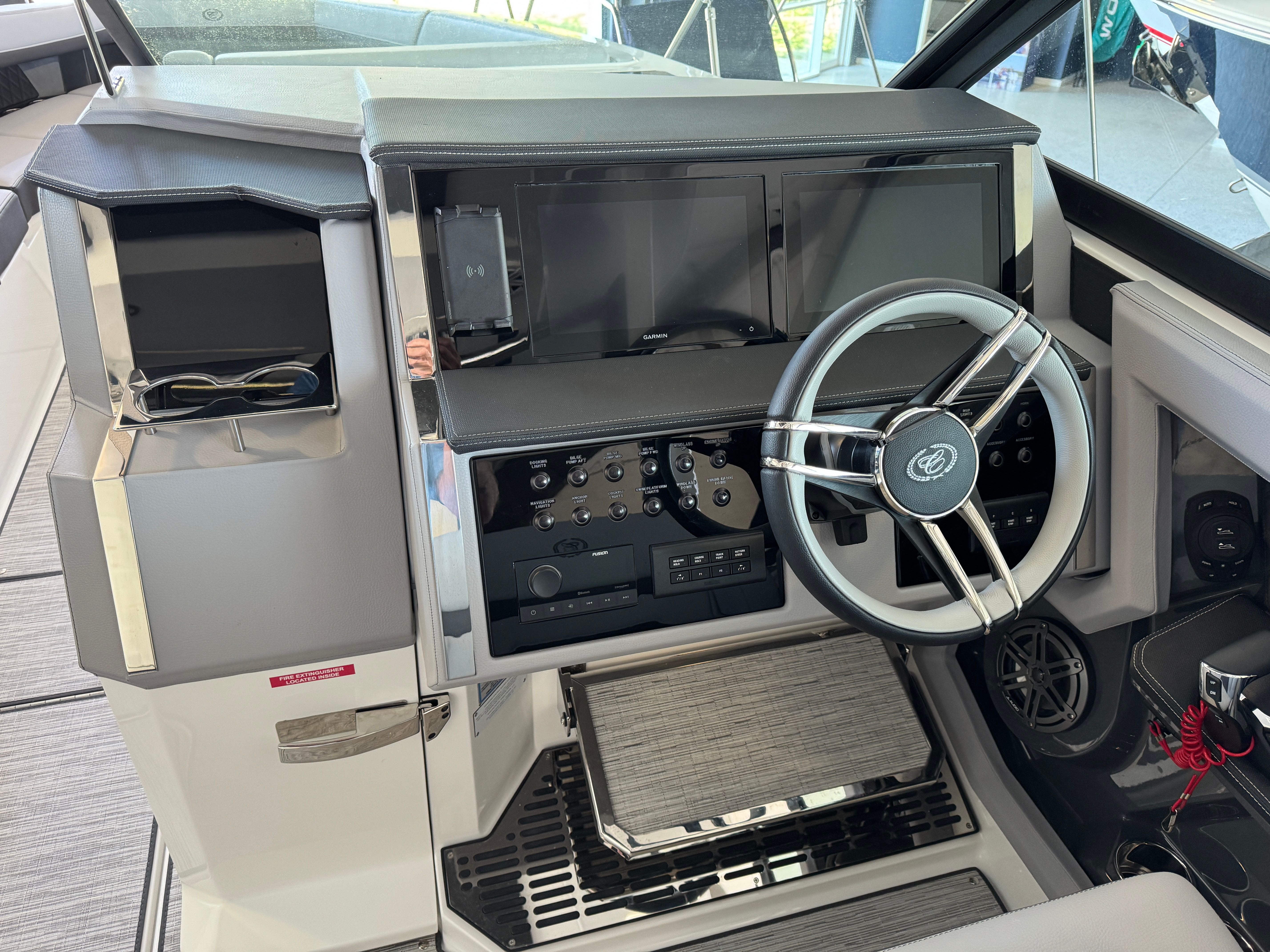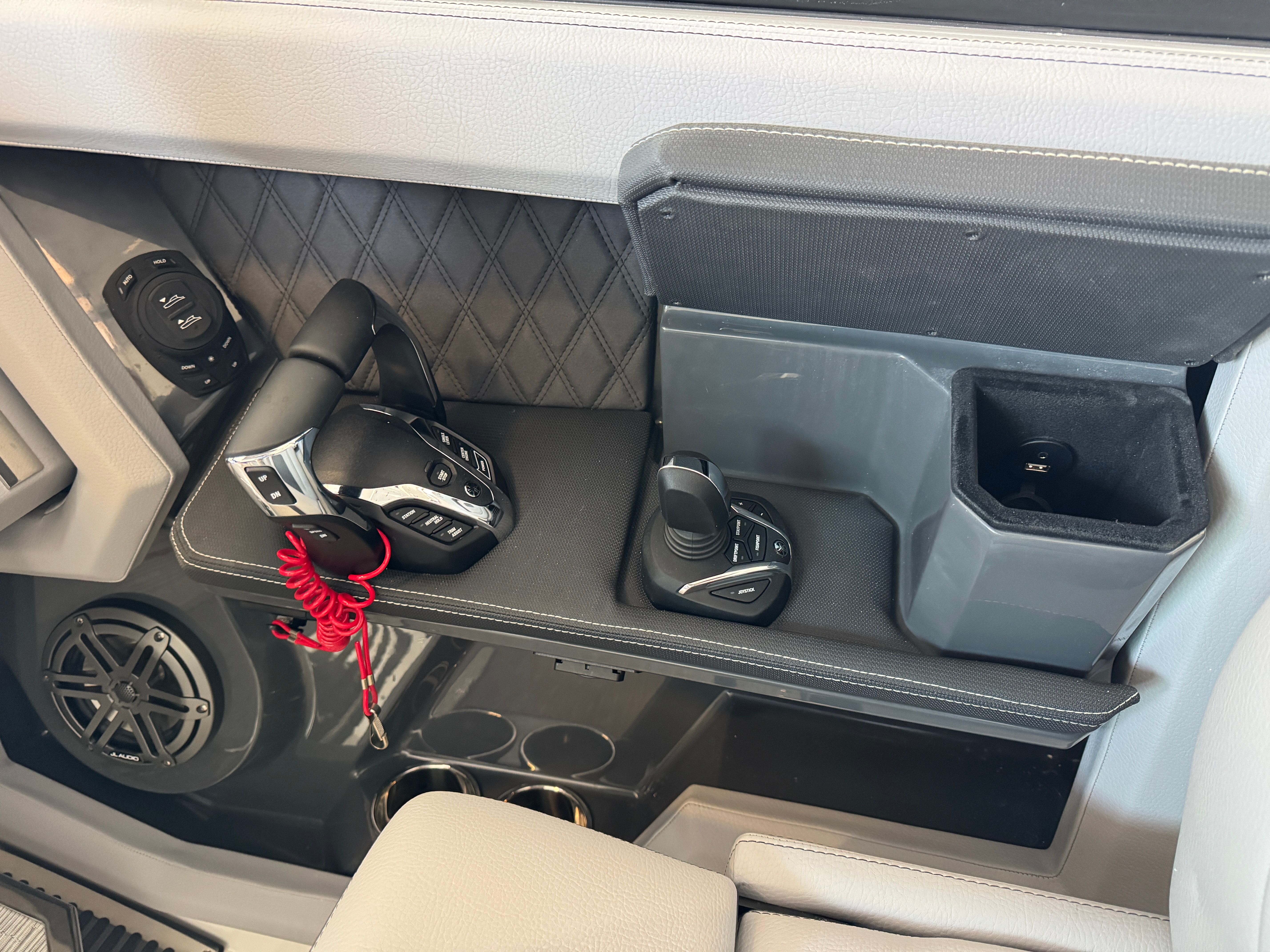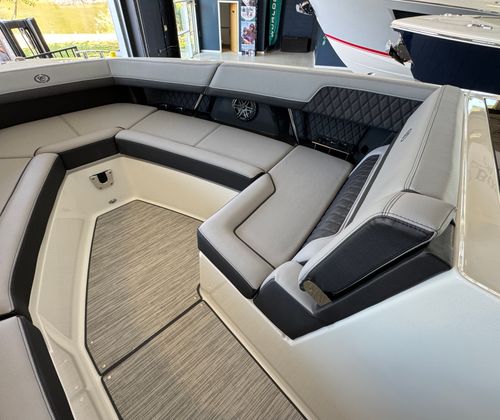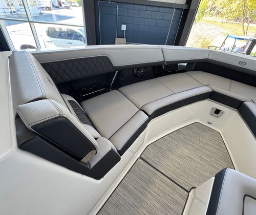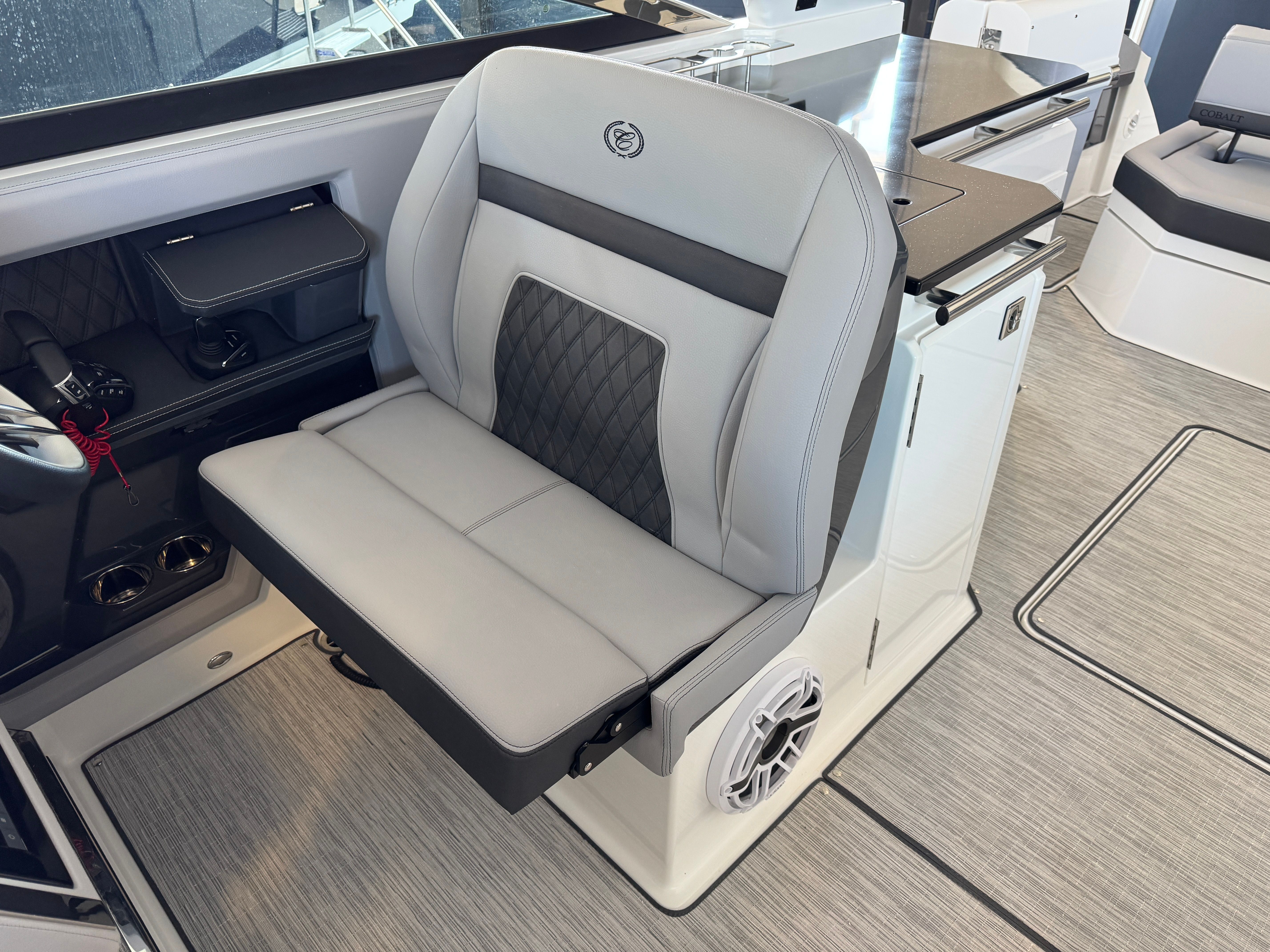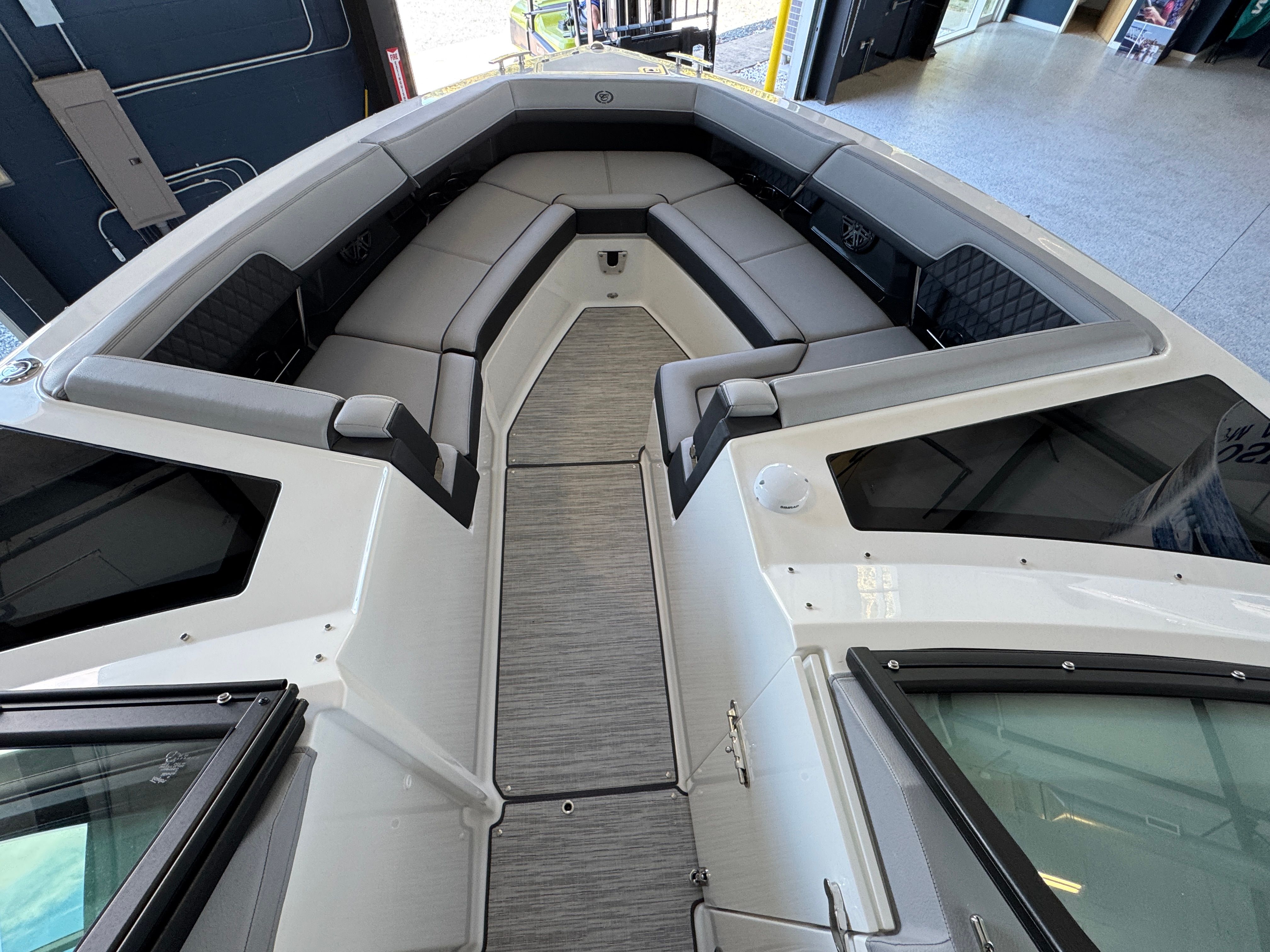 Power and precision define the Cobalt R33 OB’s on-water experience. Equipped with triple Yamaha F300 XCA outboard engines, this cruiser boasts a combined 900 horsepower, delivering exhilarating acceleration and smooth handling. The advanced Yamaha engines are renowned for their reliability and efficiency, ensuring you have the confidence to explore further and faster. The inclusion of the White INT with Joystick system provides intuitive control, making docking and maneuvering effortless even in tight spaces. Whether you are chasing the horizon or navigating busy marinas, the R33 OB’s performance capabilities set it apart from other cruiser boats for sale.