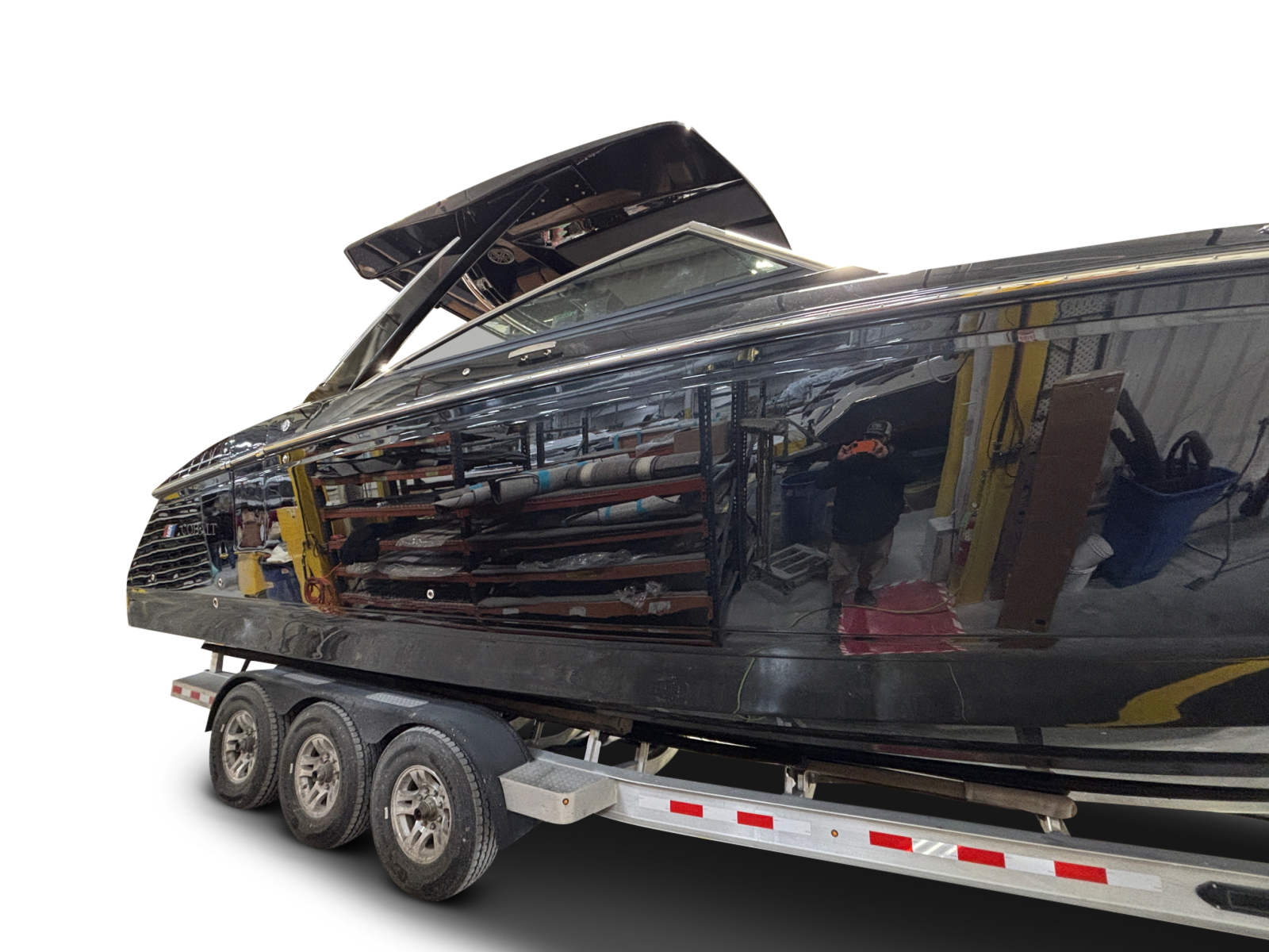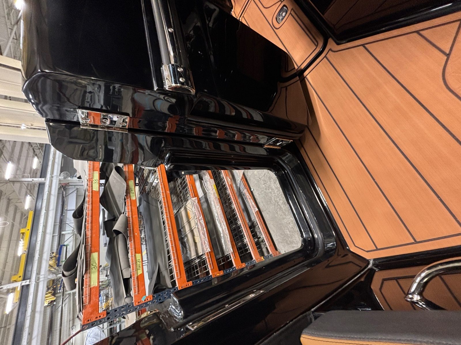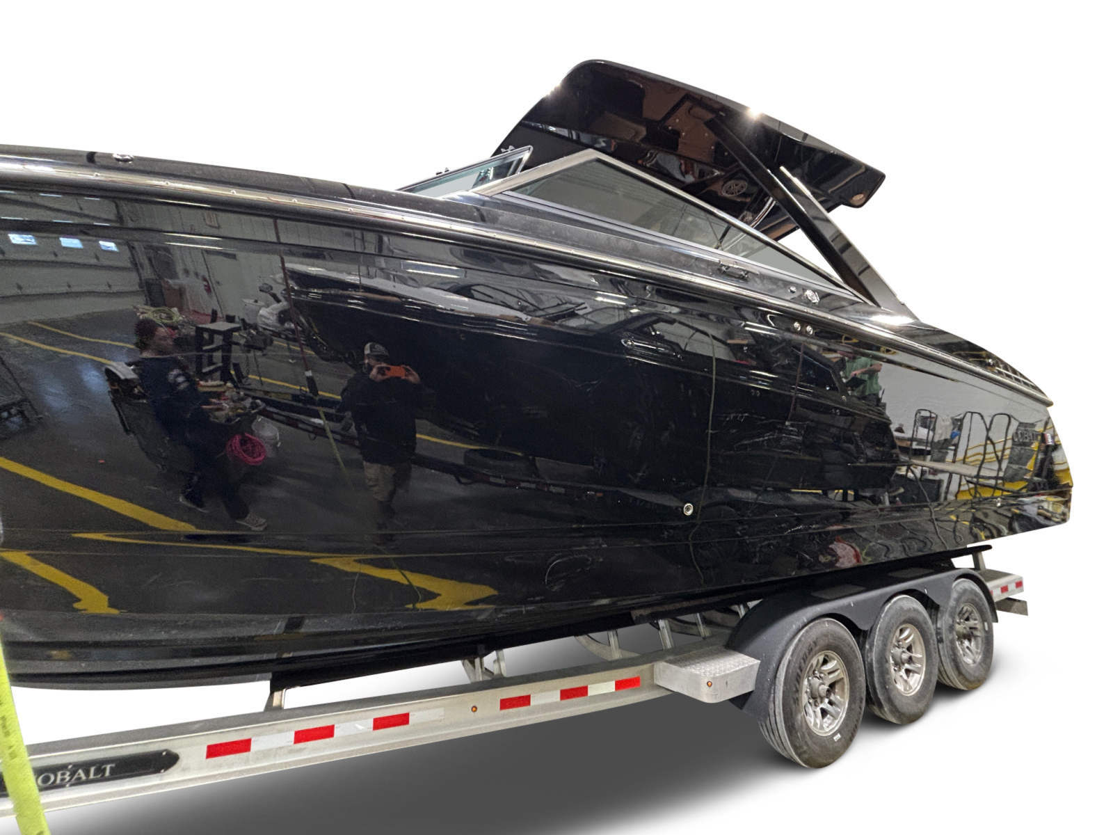The Cobalt R33 Surf is packed with premium features that elevate your boating experience. The arch with hard top provides both style and functionality, offering shade and protection from the elements while maintaining an open and airy feel. The electric awning in sleek black extends effortlessly, creating a comfortable space for relaxation or entertaining guests. The aft walk-thru gate and boarding door make it easy to access the water or dock, enhancing safety and convenience for everyone on board.Inside, the cockpit showcases a luxurious interior finished in Caramel, Carbon, and Ebony, creating a sophisticated and inviting atmosphere. The Cobalt letters with flag emblem in black satin add a touch of elegance and brand distinction. For those cooler days on the water, the cockpit heater ensures that everyone stays warm and comfortable, extending your boating season well into the cooler months.Additional features such as the battery maintainer/charger (110V) keep your boat ready for action, while the board rack covers and PTM provide practical solutions for storing and protecting your gear. Every detail of the R33 Surf is designed with the owner’s comfort and convenience in mind.