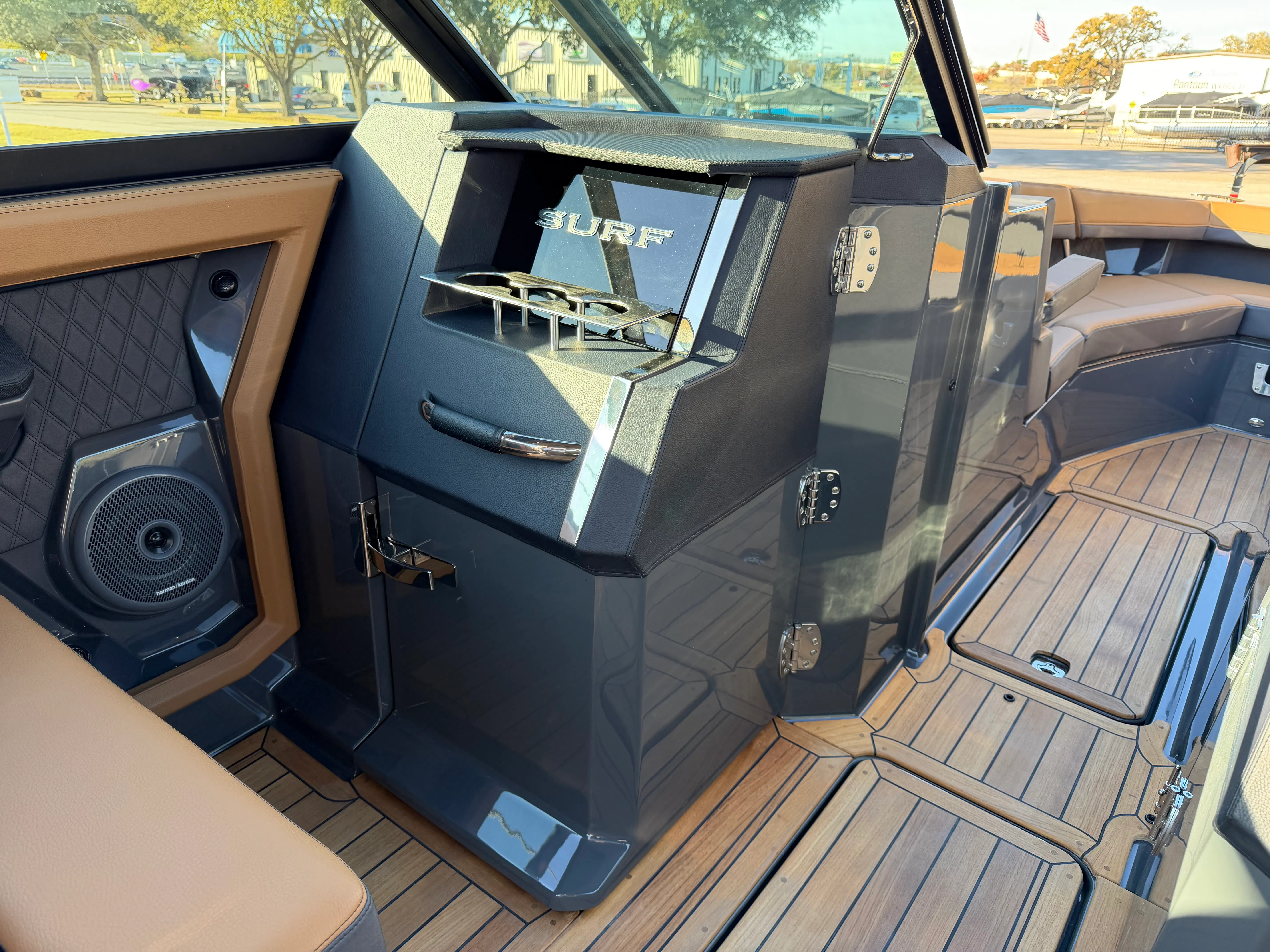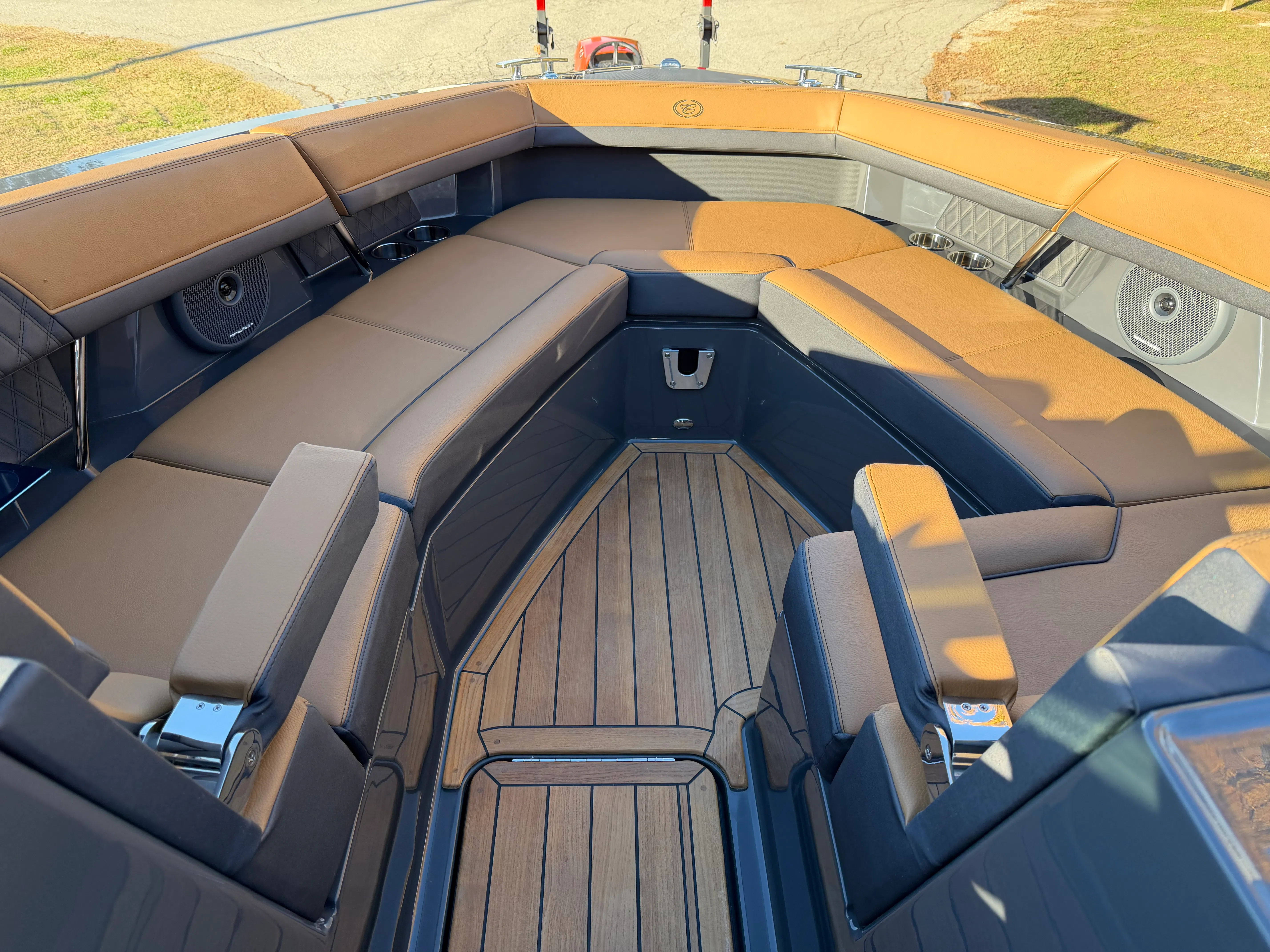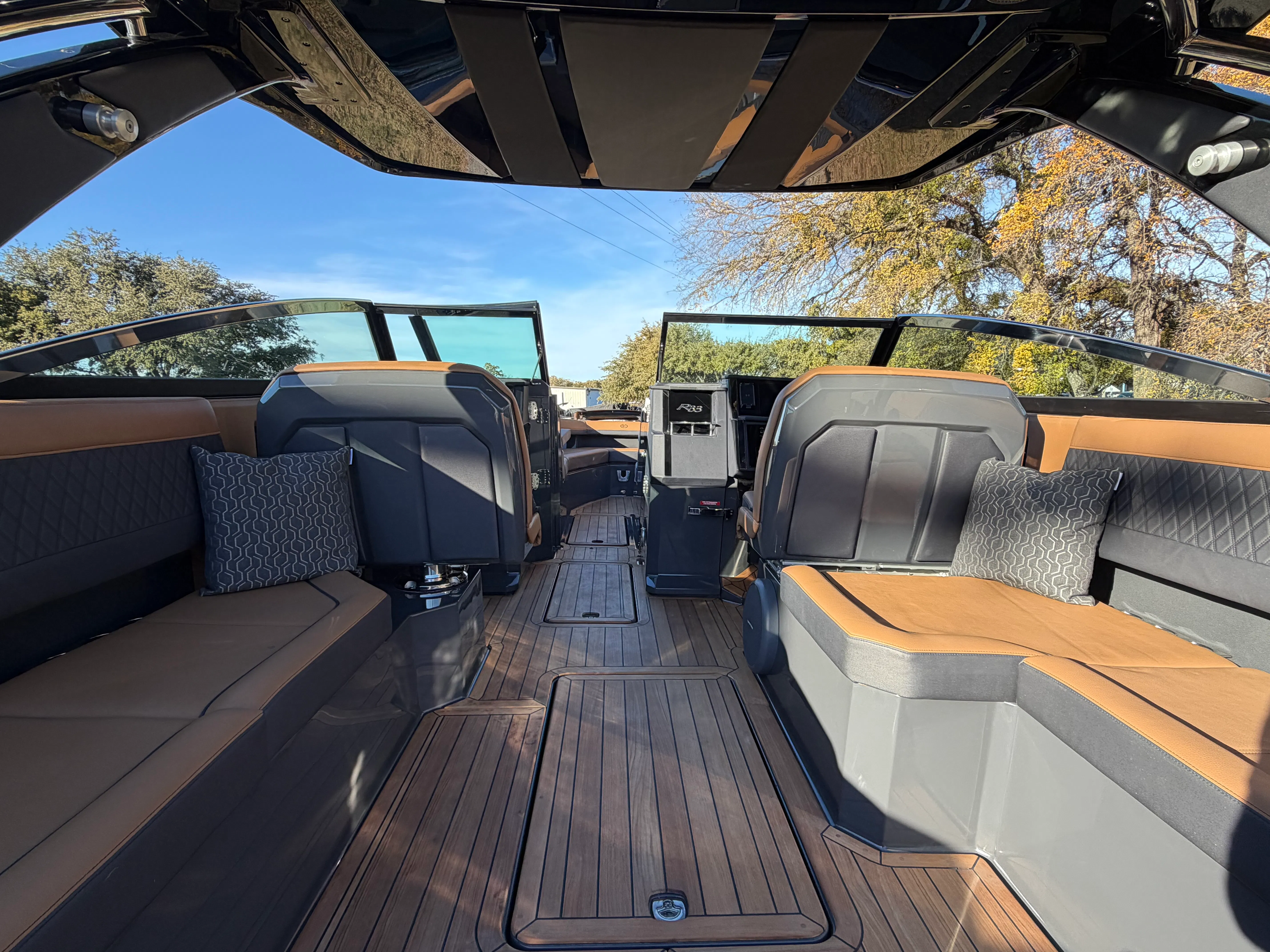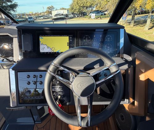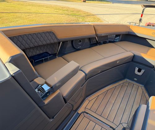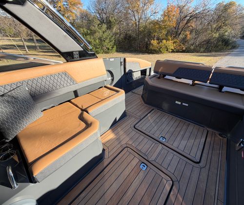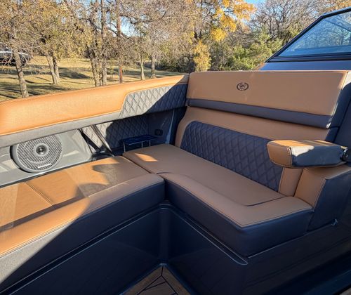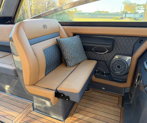 The 2026 Cobalt R33 Surf is packed with premium features designed to enhance every aspect of your boating experience. The striking Accent Stripe and Rich Ebony exterior create a bold visual statement, while the Air Compressor with Holder adds convenience for inflating water toys and equipment. The Arch with Hard Top, finished in Black and complemented by a Black Electric Awning, provides stylish protection from the sun and elements, ensuring comfort throughout your journey. The Battery Maintainer/Charger keeps your boat’s power systems in optimal condition, while the Boarding Door offers easy access for guests of all ages.Inside, the Caramel/Carbon/Ebony interior exudes luxury, with plush seating and elegant finishes that invite relaxation. The Bow Benter Cushion Insert and Bow Shade Sail offer additional comfort and shade, perfect for long days on the water. Signature Cobalt Letters with Flag Emblem showcase the brand’s heritage, while the Dinette Table with Bow and Cockpit Receptacles creates versatile dining and social spaces for entertaining friends and family.