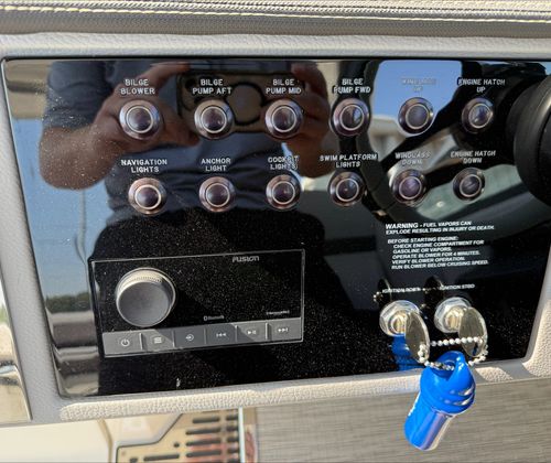 Under the hood, the Cobalt R33 boasts twin engines, delivering a combined 760 horsepower. This powerful setup ensures exhilarating acceleration, smooth cruising, and responsive handling, whether you’re navigating coastal waters or exploring inland lakes. The dual-engine configuration not only enhances performance but also provides added reliability and control, making every journey both thrilling and secure. With only 91 engine hours, these engines are primed for many more seasons of enjoyment, offering peace of mind and outstanding value for those seeking a high-performance Cobalt boat for sale.