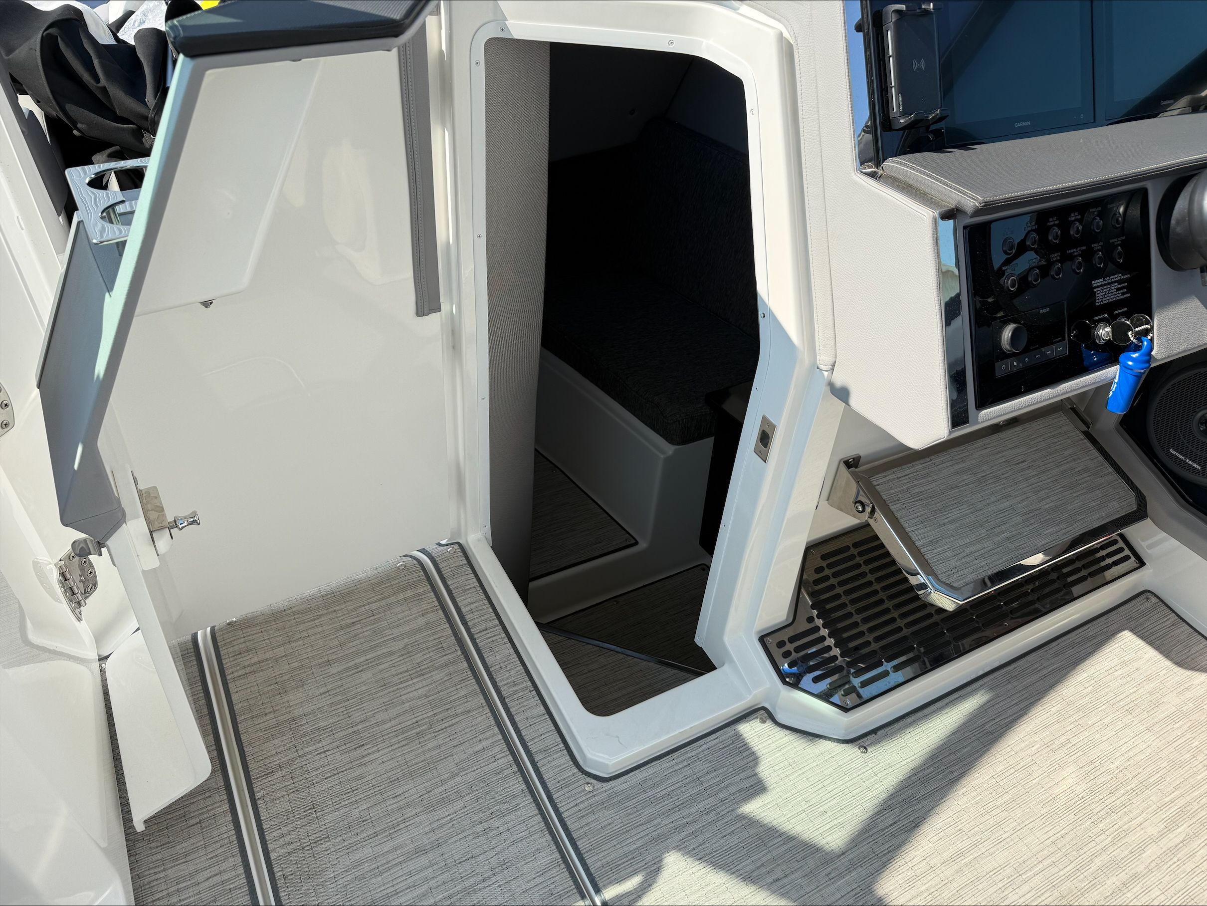 Beyond its luxurious appeal, the Cobalt R33 Cruiser is designed for practical, everyday use. The generous storage options make it easy to stow gear, supplies, and personal items, keeping the deck clutter-free and organized. Docking is simplified by the boat’s responsive handling and thoughtful design, allowing for stress-free arrivals and departures at any marina. The efficient twin-engine setup not only delivers impressive speed but also helps optimize fuel consumption, making longer trips more economical and enjoyable.Maintenance is straightforward, thanks to the boat’s high-quality construction and accessible systems. Whether you’re a seasoned boater or new to the lifestyle, the R33’s user-friendly features ensure that ownership is as enjoyable as the time spent on the water. As a used cruiser boat for sale, this model offers the reliability and ease of use that today’s boaters demand.