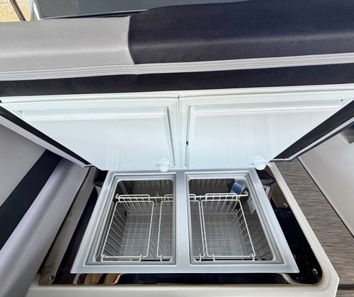 The Cobalt R35 is designed with practicality in mind, making ownership effortless and enjoyable. The cockpit boarding door streamlines entry and exit, especially when docked or rafted up with other boats. The air compressor is a handy addition for inflating paddleboards, tubes, or other water accessories, ensuring you’re always ready for fun.Storage solutions throughout the boat keep your gear organized and accessible, while the bow tonneau cover protects your belongings from the elements. The dual engines not only provide powerful performance but also contribute to easier docking and maneuvering, making the R35 a great choice for both experienced captains and those new to boating.Fuel efficiency is enhanced by Cobalt’s commitment to engineering excellence, allowing you to spend more time on the water and less time refueling. The compliance with California engine requirements ensures you can enjoy boating in regulated waters without concern.