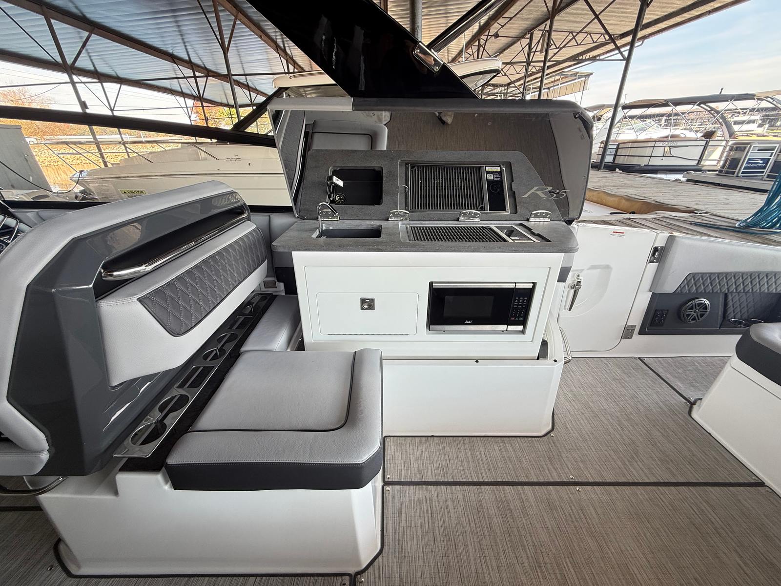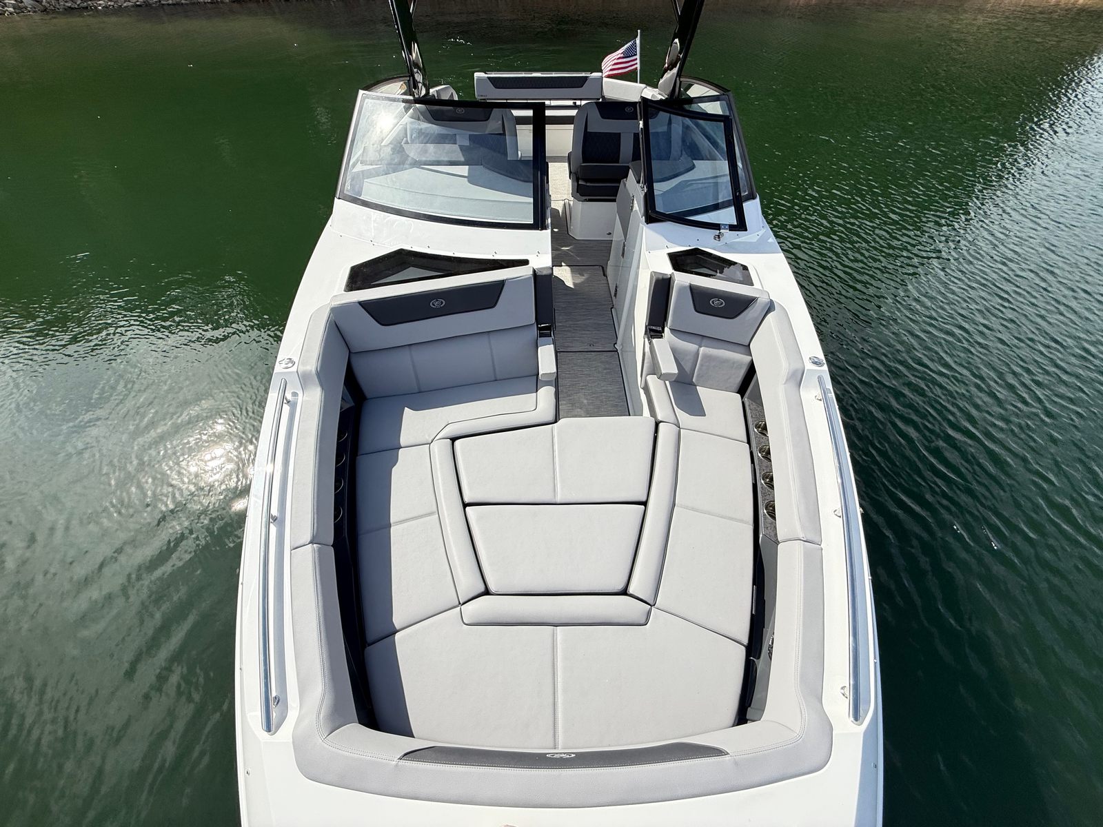 Beneath its elegant exterior, the Cobalt R35 is powered by twin engines, delivering a combined 760 horsepower. This formidable setup ensures smooth acceleration, responsive handling, and impressive speed, whether you’re cruising along the coastline or heading out for a weekend getaway. The dual-engine configuration provides enhanced maneuverability, making docking and navigating tight spaces effortless. With this level of power, the R35 offers a thrilling ride while maintaining the stability and control that Cobalt boats are renowned for.