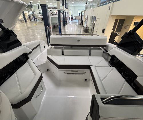 The Cobalt R4 OB is packed with special features that elevate your boating experience. The Accent Stripe in Rich Ebony adds a touch of sophistication to the exterior, while the Aft Facing Rumble Seat & Ski Tow Pylon create the perfect setup for watersports enthusiasts and sunseekers alike. The Arch, E2, Black (Folding) with Bimini - Ebony provides shade and style, allowing you to enjoy the outdoors in comfort. A Battery Maintainer/Charger ensures your boat is always ready to go, while the Bow Tonneau Cover - Ebony and Cockpit Tonneau Cover - Ebony protect your investment from the elements.Distinctive Cobalt Letters in Black Satin showcase the brand’s legacy, and Docking Lights - Stainless Steel make evening arrivals a breeze. Fender Clips with Line offer convenience when securing your boat, and the Glass Cockpit with Dual Garmin 8610 delivers cutting-edge navigation and control. Every detail is thoughtfully designed to enhance your time on the water, making the R4 OB a standout choice among Bowrider boats for sale.