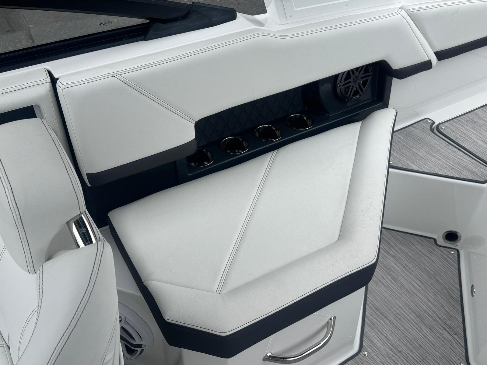The Cobalt R4 OB is loaded with premium features designed to elevate your boating experience. The Bayside Blue hull side, Graphite Gray boot stripe, and White hull bottom create a visually stunning exterior, while the SSAlumArch segment overlays add a modern touch. The Summit Frost interior is both inviting and durable, ensuring comfort for you and your guests. The White platform provides a convenient space for boarding and water activities, and the Ebony canvas color, along with the Bow Tonneau Cover and Cockpit Tonneau Cover in Ebony, offers protection and style.At the helm, the Glass Cockpit with Dual Garmin 8610 displays provides advanced navigation and control, putting all essential information at your fingertips. This state-of-the-art setup enhances safety and convenience, allowing you to focus on enjoying your time on the water.
