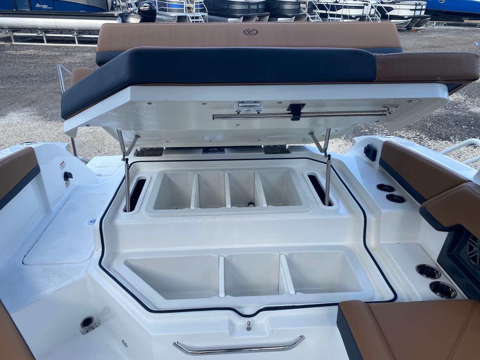 At the heart of the Cobalt R4 OB is a powerful Yamaha F250XSB2 outboard engine, delivering an impressive 250 horsepower. This single-engine setup ensures smooth acceleration, responsive handling, and reliable performance in a variety of conditions. The R4 OB’s hull design is optimized for stability and efficiency, allowing you to glide effortlessly across the water while enjoying excellent fuel economy. Whether you’re towing water sports enthusiasts, exploring new coves, or simply enjoying a leisurely cruise, the Cobalt R4 OB’s performance capabilities make every outing memorable.