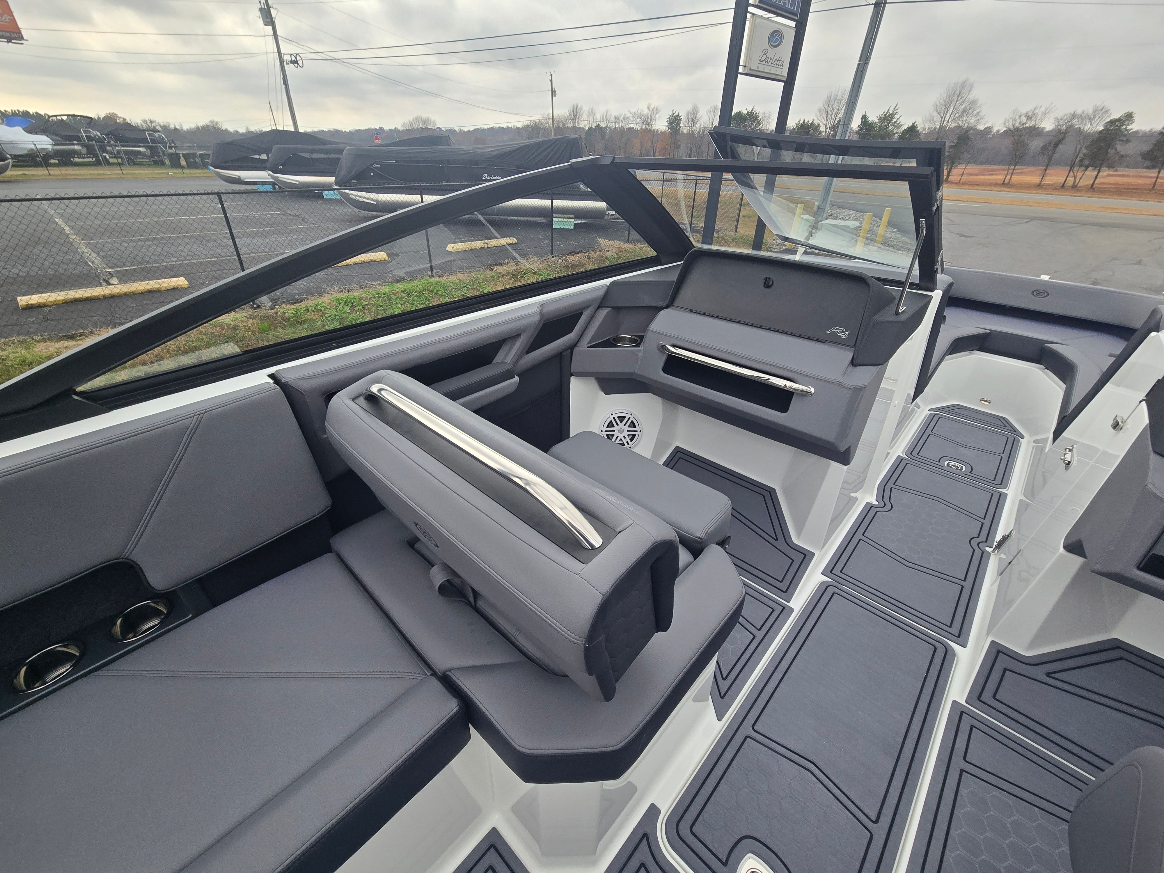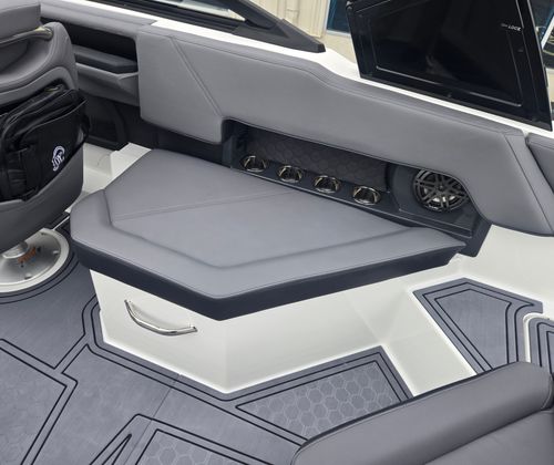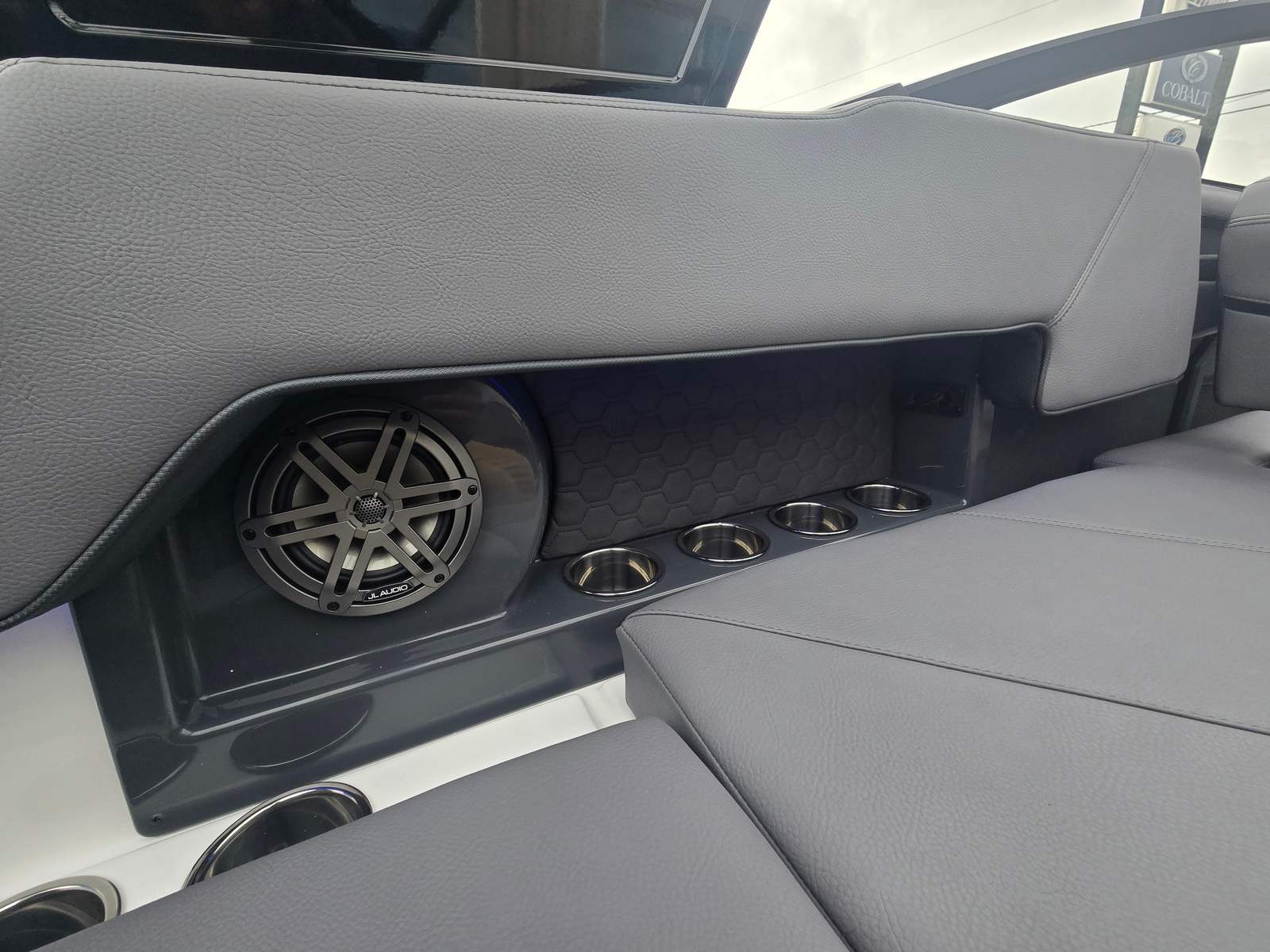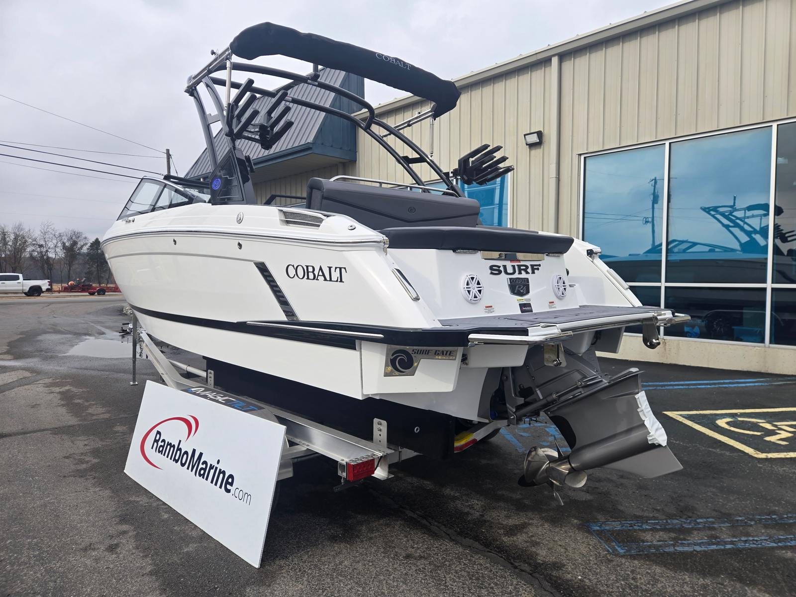 Beyond its impressive style and performance, the Cobalt R4 Surf is engineered for convenience and ease of ownership. The boat’s manageable 24.25-foot length makes it easy to dock, trailer, and store, while the efficient Volvo V8 engine helps optimize fuel consumption for longer days on the water. The Battery Maintainer/Charger is a valuable addition, ensuring your boat remains powered up and ready to go whenever adventure calls.The extended swim platform not only enhances the boat’s recreational capabilities but also provides a safe and accessible area for boarding and disembarking. The Aft Facing Rumble Seat offers a versatile seating option, perfect for watching water sports or simply soaking up the sun. Every detail of the R4 Surf is designed to make your boating experience as enjoyable and hassle-free as possible.