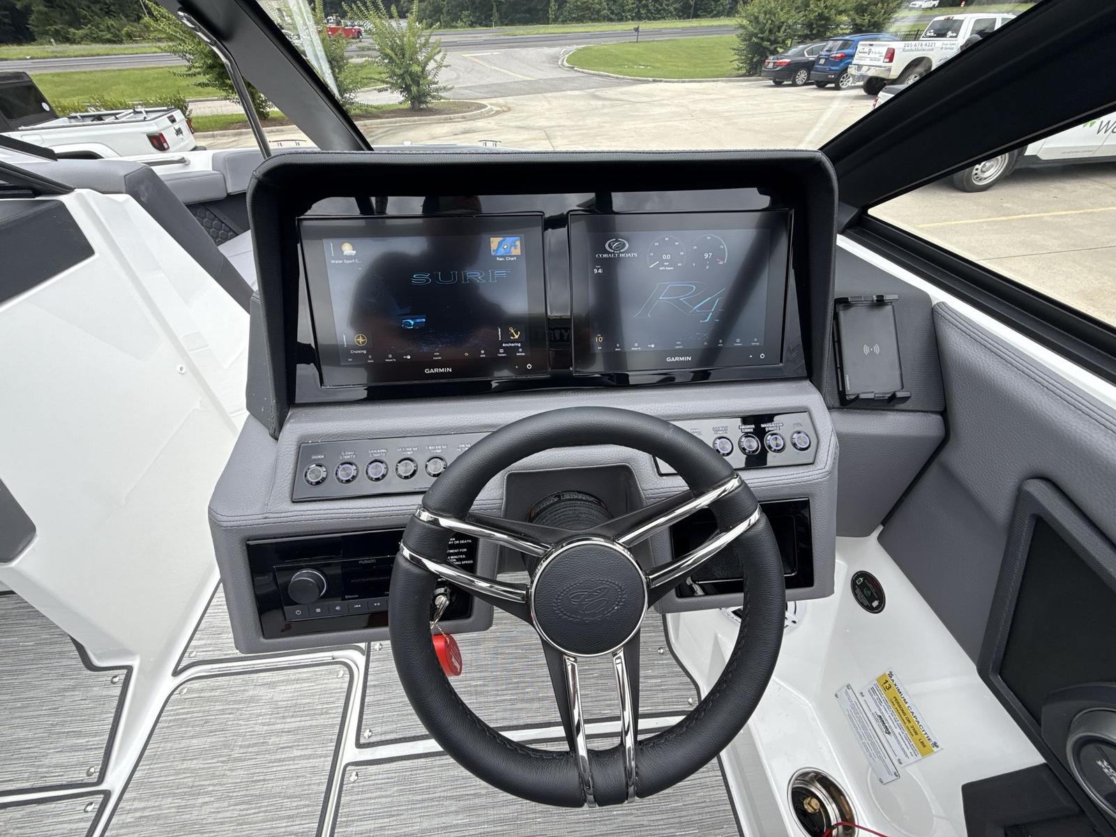 The Cobalt R4 Surf is designed with practicality in mind, making ownership a breeze. The efficient Volvo V8 engine delivers excellent fuel economy, reducing operating costs and extending your time on the water. The docking lights and fender clips simplify the process of mooring and securing your boat, while the battery maintainer/charger keeps your electrical systems in top condition.Ample storage throughout the boat ensures you have plenty of space for gear, supplies, and personal items, keeping the deck clutter-free and organized. The durable floor covering stands up to heavy use, making cleanup quick and easy after a day of fun. The intuitive glass cockpit and dual displays provide all the information you need at a glance, enhancing safety and convenience during every outing.
