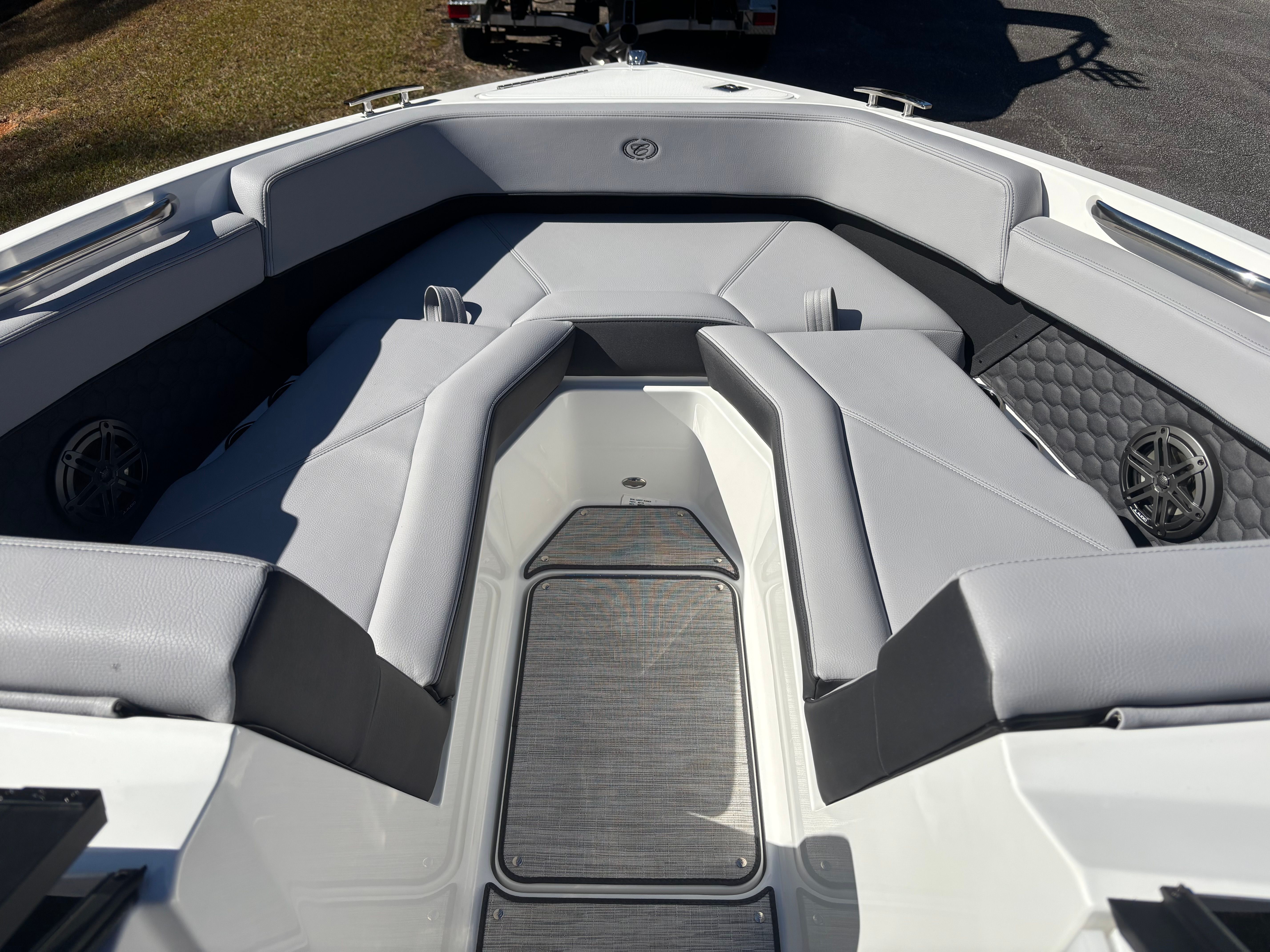 Powering the Cobalt R4 Surf is a robust single engine delivering an impressive 350 horsepower. This setup provides exhilarating acceleration, smooth handling, and reliable performance, whether you’re carving through waves or gliding across calm waters. The advanced engine meets California Requirements (Req Cat Engine), ensuring compliance with the strictest environmental standards while maintaining top-tier power and efficiency. The EPA Fuel Tank (50) further enhances fuel management, allowing for extended adventures without frequent refueling stops. With this bowrider boat for sale, you’ll experience the perfect balance of speed, agility, and fuel economy.