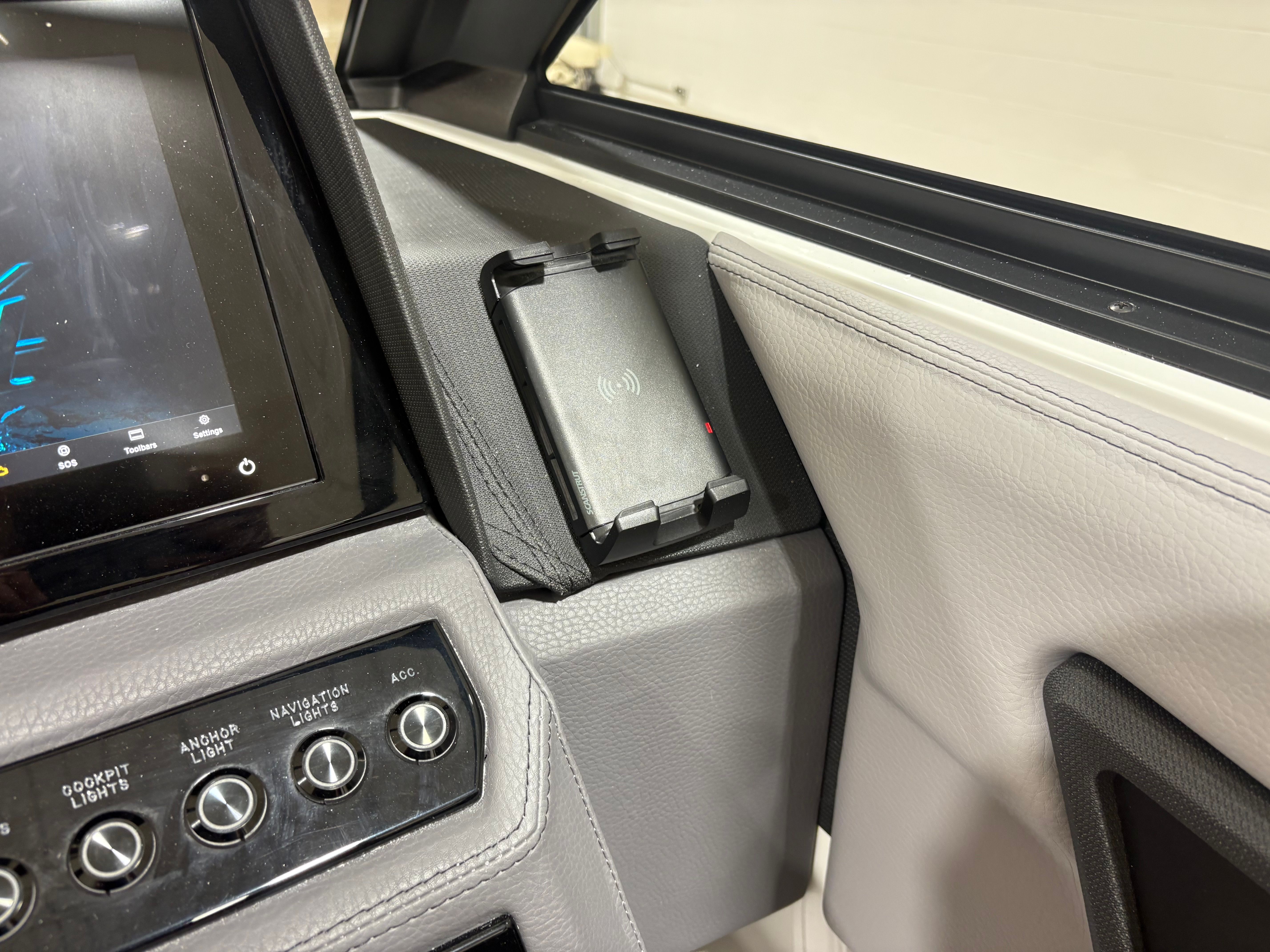 Owning a Cobalt R4 Surf is about more than just boating—it’s about creating memories and enjoying life to the fullest. The spacious bowrider layout encourages socializing, with ample seating for family and friends. The aft-facing rumble seat is perfect for lounging, sunbathing, or watching the action behind the boat. The glass cockpit with dual Volvo 8610XSV displays puts advanced navigation and engine monitoring at your fingertips, giving you confidence and control on every journey. LED interior accent lighting sets the mood for evening cruises or dockside gatherings, while the stylish interior ensures you travel in comfort and class. Every detail is designed to enhance your enjoyment, from the smooth ride to the thoughtful storage solutions that keep your gear organized and accessible.