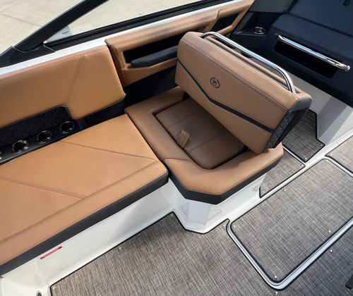 Owning a Cobalt R4 Surf Bowrider means embracing a lifestyle of fun, relaxation, and adventure. The spacious seating arrangement and premium interior materials make every trip comfortable, whether you’re lounging in the sun or entertaining guests. The aft-facing rumble seat is perfect for watching water sports or enjoying a peaceful moment at anchor. With advanced technology like the dual Glass Cockpit displays, you’ll have everything you need to navigate, monitor engine performance, and stay connected.The R4 Surf’s thoughtful design ensures that every aspect of your boating experience is enjoyable. From the plush seagrass flooring to the sleek hull and stylish accents, this Bowrider is built for those who appreciate the finer things in life. It’s a boat that invites you to create lasting memories with family and friends, offering the perfect setting for laughter, relaxation, and excitement.