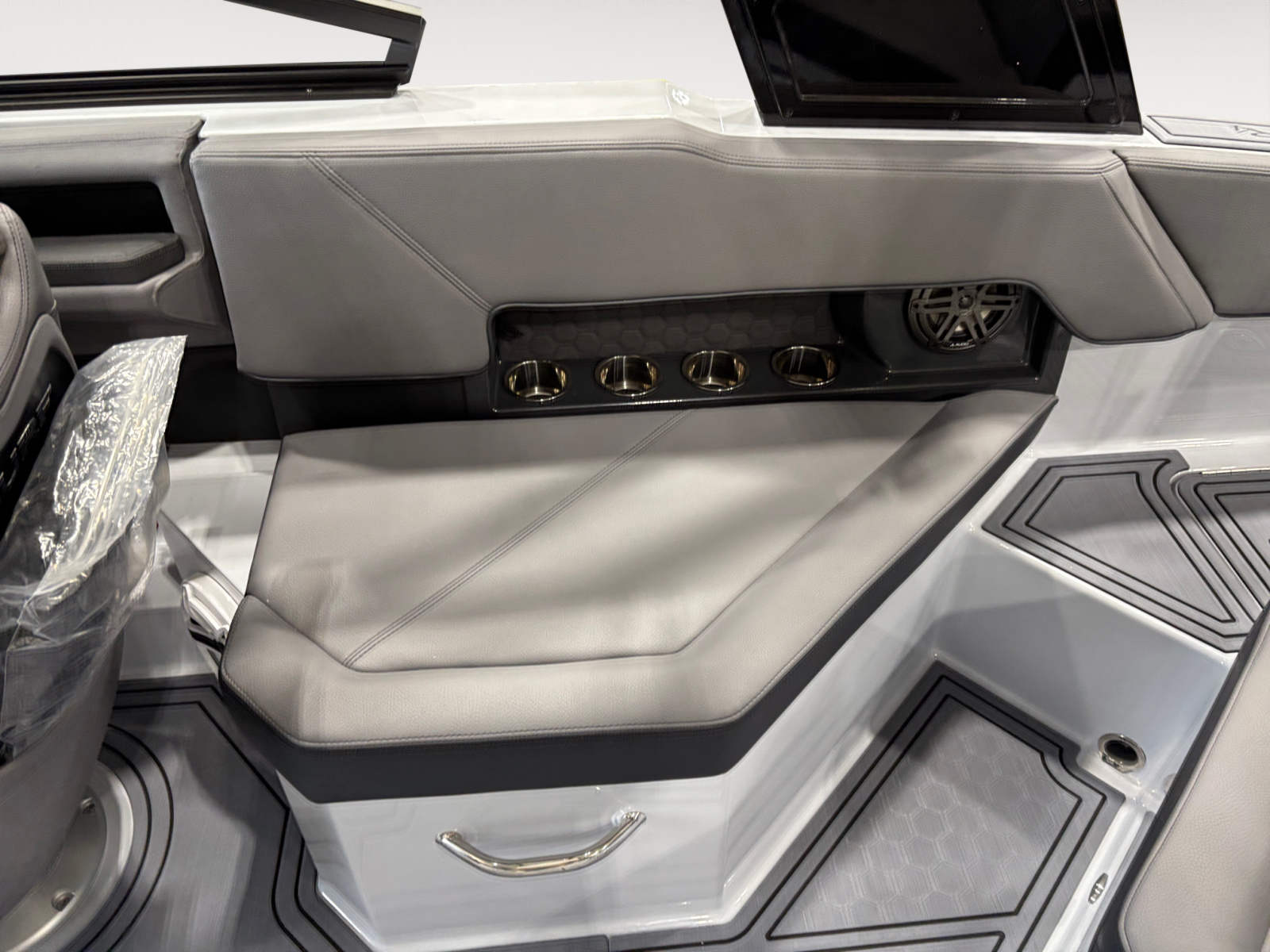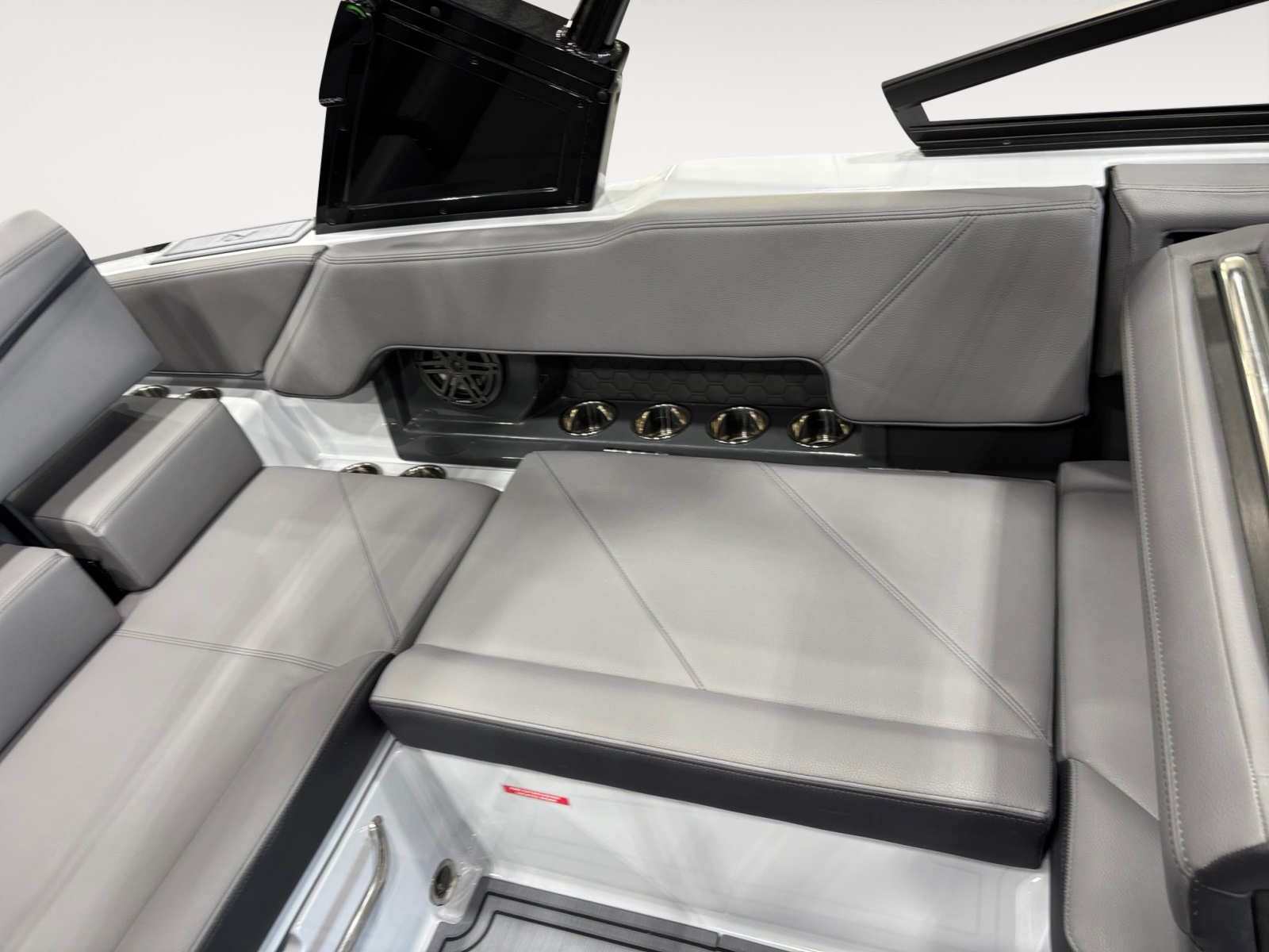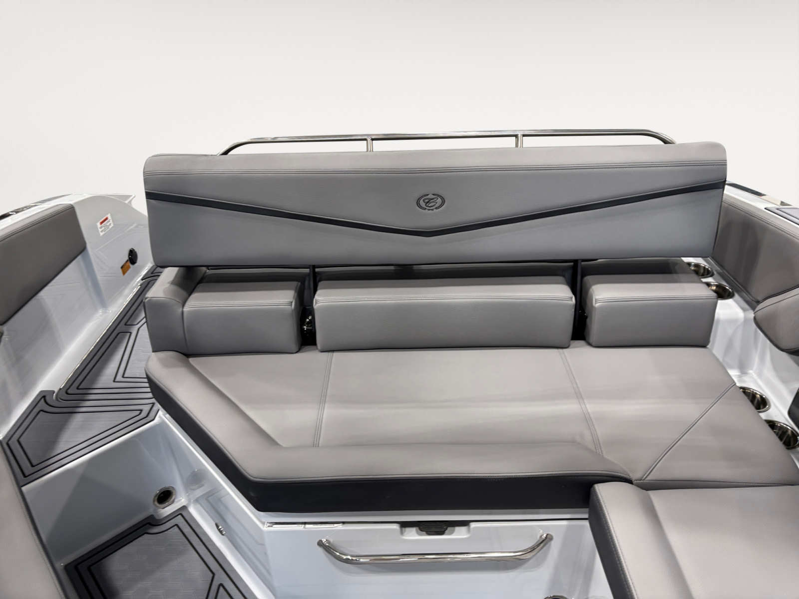The Cobalt R4 Surf is designed with practical features that make ownership a breeze. The battery maintainer/charger keeps your electrical systems in top condition, reducing maintenance and ensuring reliability. Fender clips with line simplify the docking process, so you can secure your boat quickly and confidently. The rear-facing camera adds an extra layer of safety when backing into slips or monitoring swimmers and water sports participants. The glass cockpit’s dual Volvo 8610 displays provide comprehensive information, from engine performance to navigation, making every trip efficient and enjoyable. The Frost Gray deck and hull bottom are not only visually appealing but also easy to clean and maintain, keeping your boat looking its best season after season.