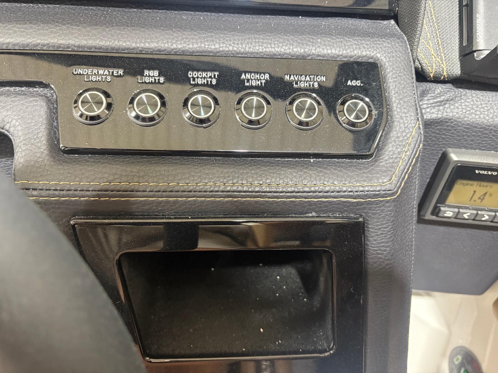 The Cobalt R4 is designed with practicality in mind, making ownership easy and enjoyable. The folding arch and bimini provide flexible shade options and make it easier to store or transport the boat. Fender clips with lines simplify the docking process, ensuring your boat is secure and protected when you arrive at your favorite waterfront destination. The stainless steel docking lights improve safety during low-light conditions, while the durable Seagrass flooring is both stylish and easy to maintain. With its efficient Volvo V8 engine, the R4 offers a balance of power and fuel economy, so you can maximize your time on the water without worrying about frequent refueling stops.