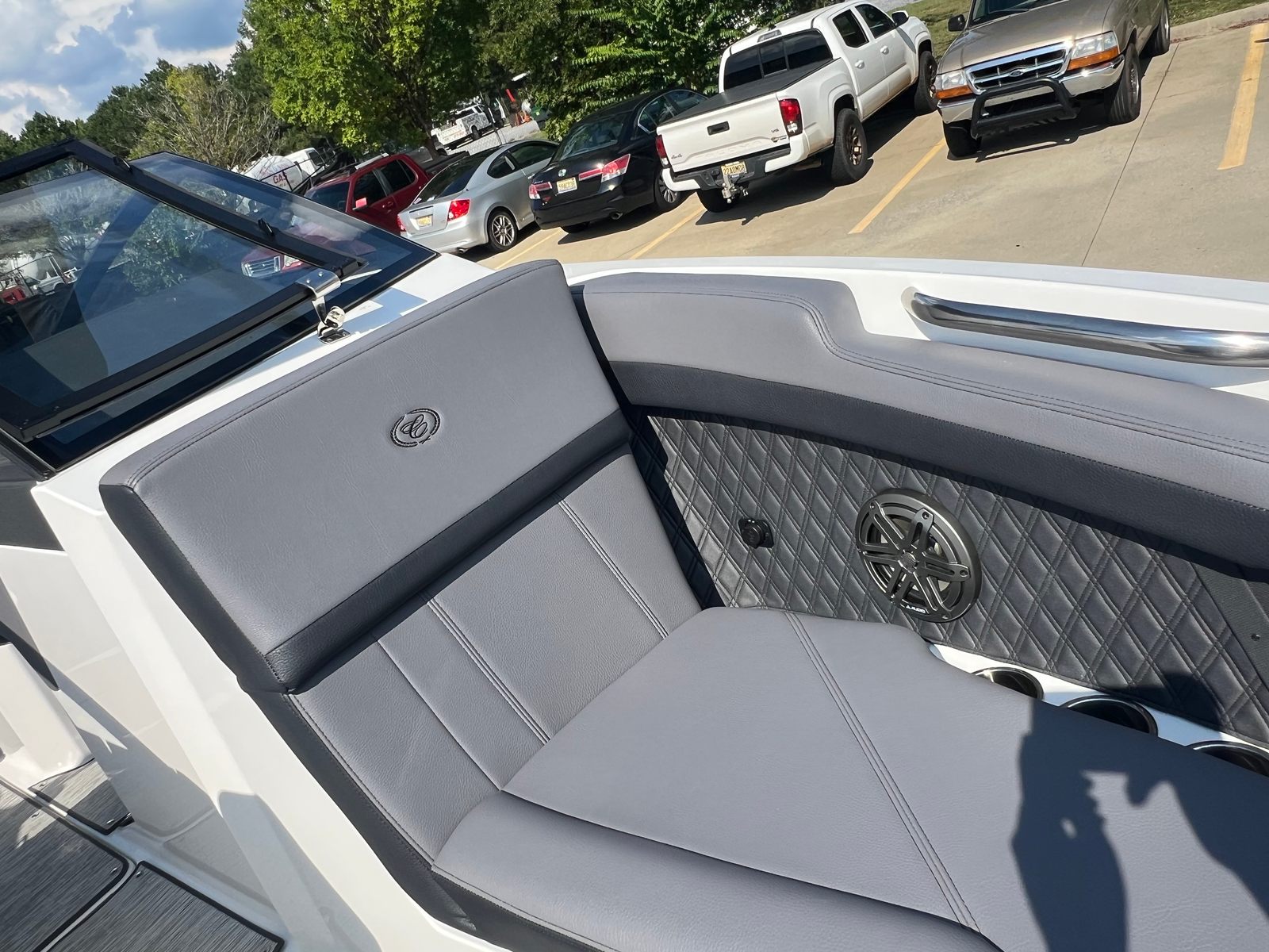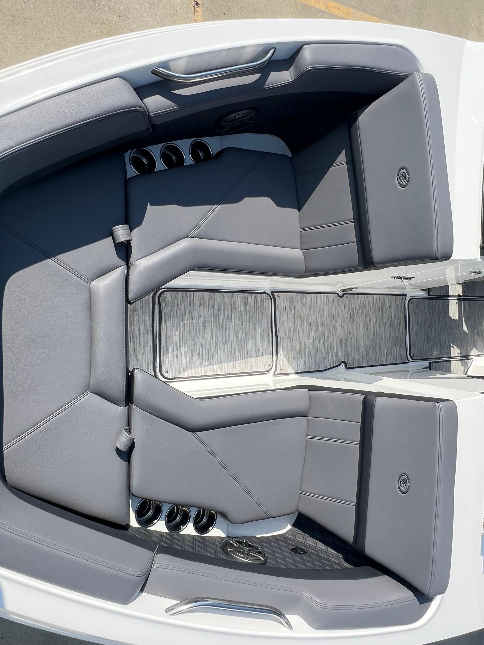 This Bowrider boat for sale is designed with practicality in mind, making ownership both convenient and rewarding. The integrated docking lights and fender clips simplify the process of mooring and securing your boat, while the battery maintainer/charger ensures your vessel is always ready for spontaneous adventures. The spacious deck and clever storage solutions allow you to bring along all the essentials for a day of fun, from water sports gear to picnic supplies.The R4’s efficient engine and streamlined hull contribute to excellent fuel economy, allowing you to spend more time enjoying the water and less time refueling. The durable floor covering and high-quality materials are easy to clean and maintain, ensuring your boat stays looking its best season after season.