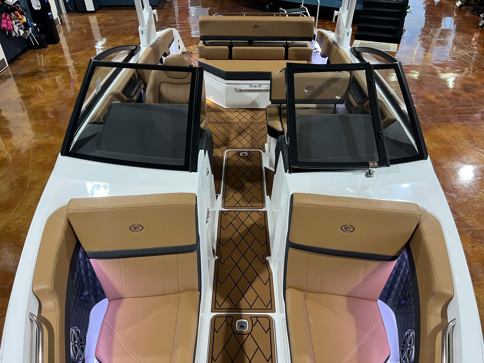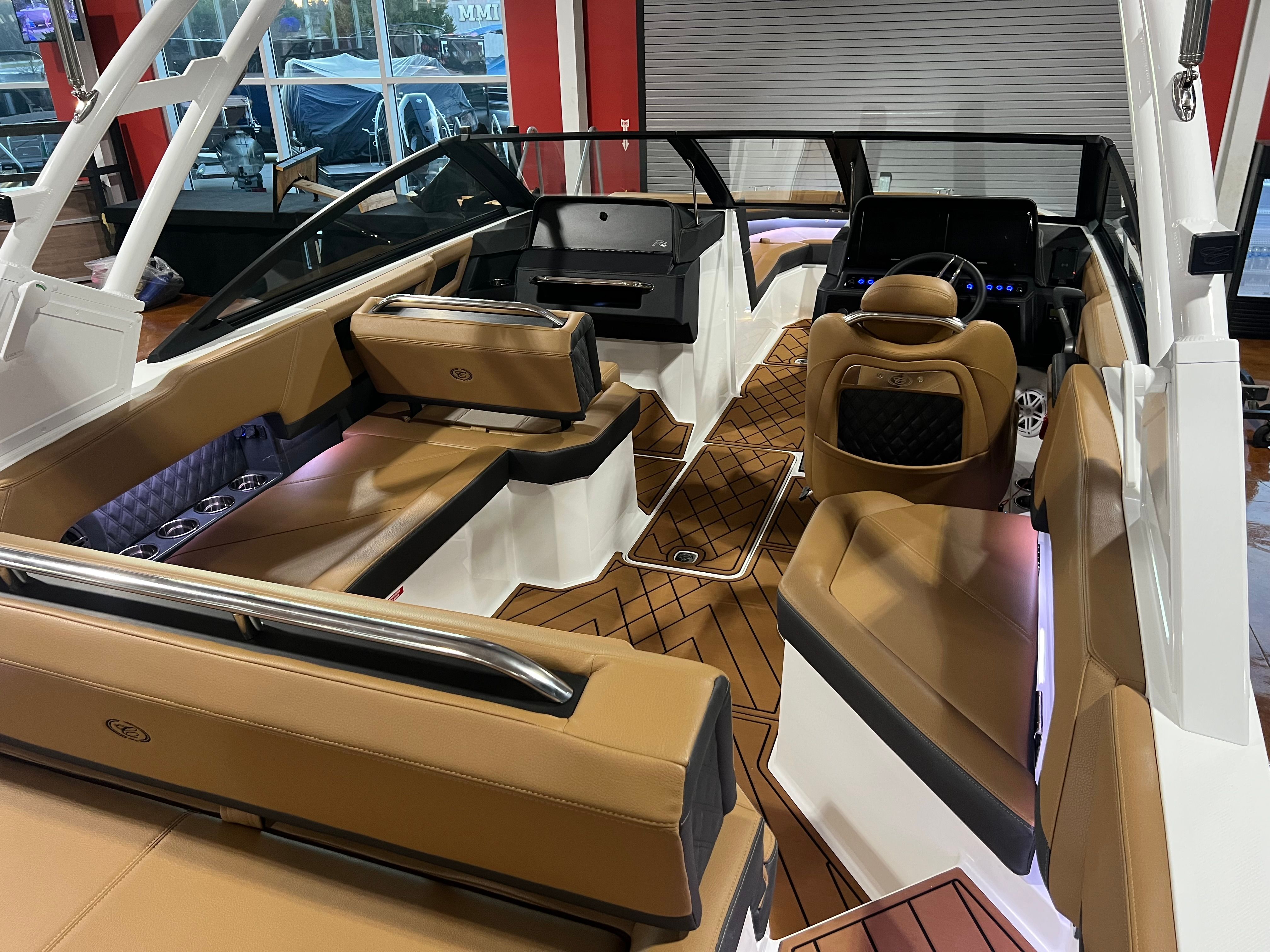 The 2026 Cobalt R4 is a 24.25-foot Bowrider that perfectly balances spaciousness and agility. Its Deep Teal hull side and bottom, accented by a crisp White stripe, create a striking visual presence that stands out at any marina or on any lake. The interior, finished in a sophisticated blend of Caramel and Carbon, invites you and your guests to relax in comfort and style. As a new boat, the Cobalt R4 offers the latest in design and technology, ensuring you enjoy the best that modern boating has to offer.