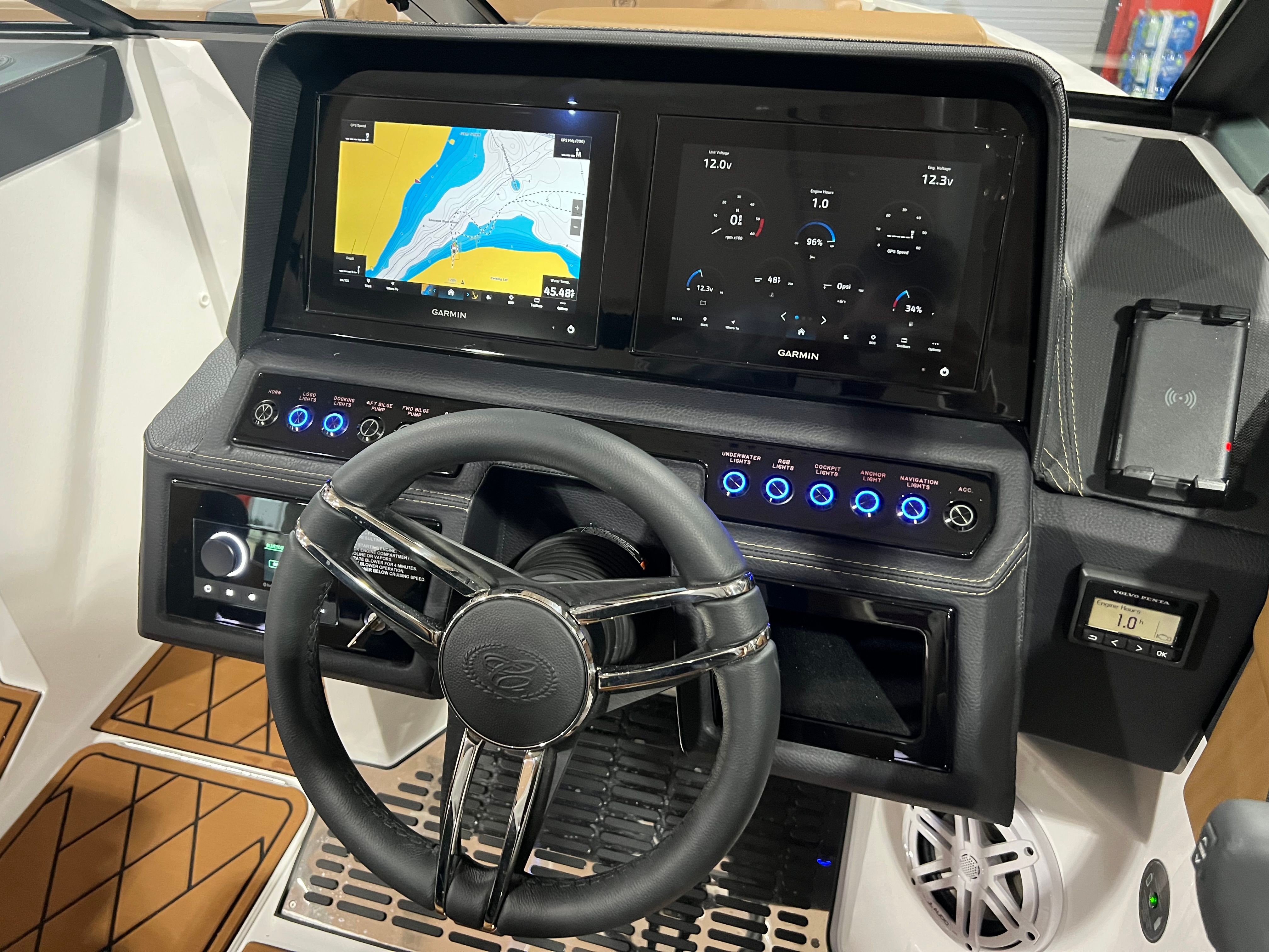 At the heart of the Cobalt R4 is a single Volvo V8 300CE DP engine, delivering an impressive 300 horsepower. This robust powerplant provides exhilarating acceleration and smooth cruising, making it ideal for watersports, leisurely cruises, or quick trips across the bay. The advanced dual-propeller drive system enhances handling and maneuverability, ensuring precise control whether you are docking, towing, or carving through open water. With this engine, the Cobalt R4 offers a thrilling yet refined boating experience that appeals to both seasoned enthusiasts and newcomers alike.