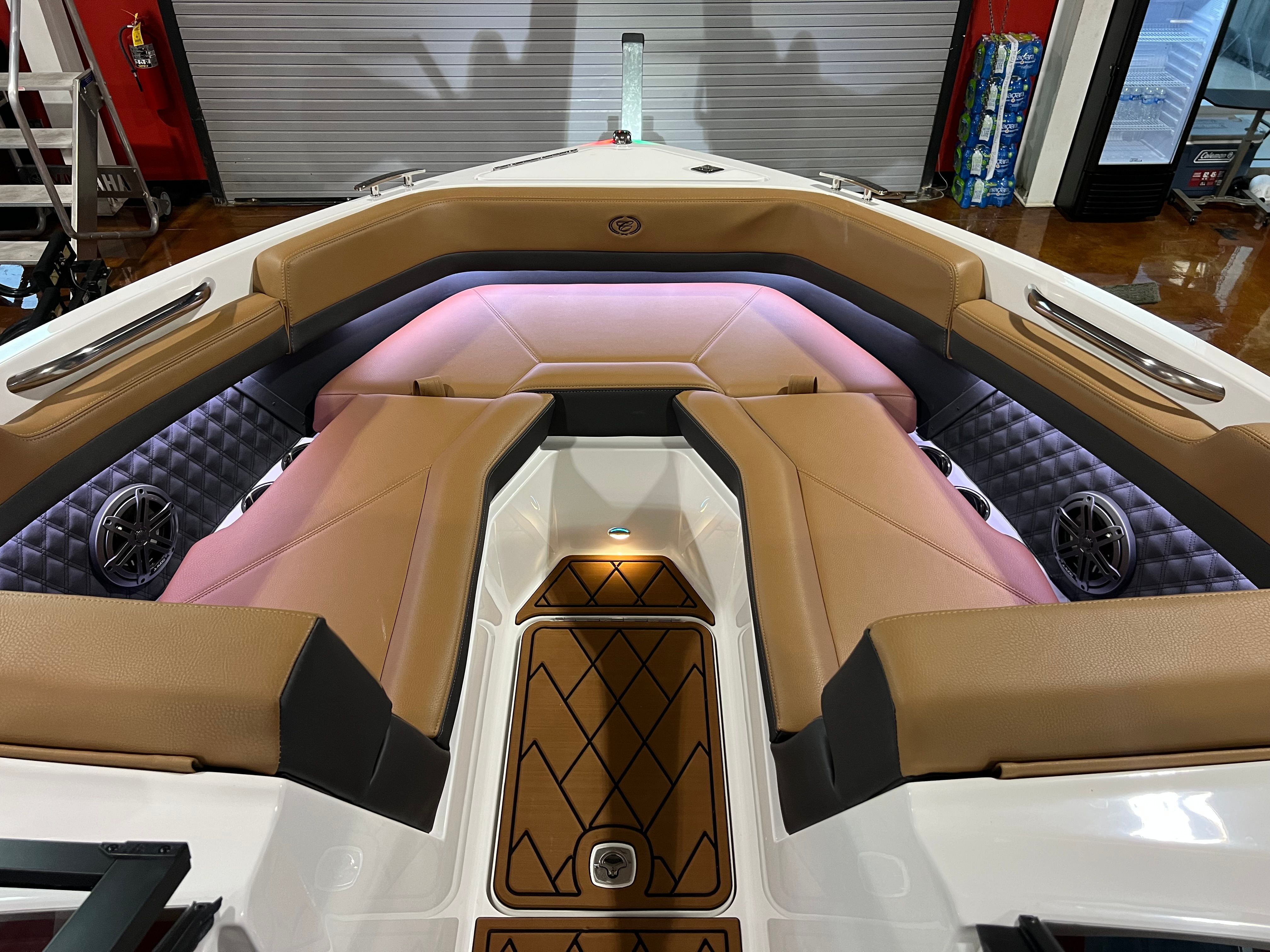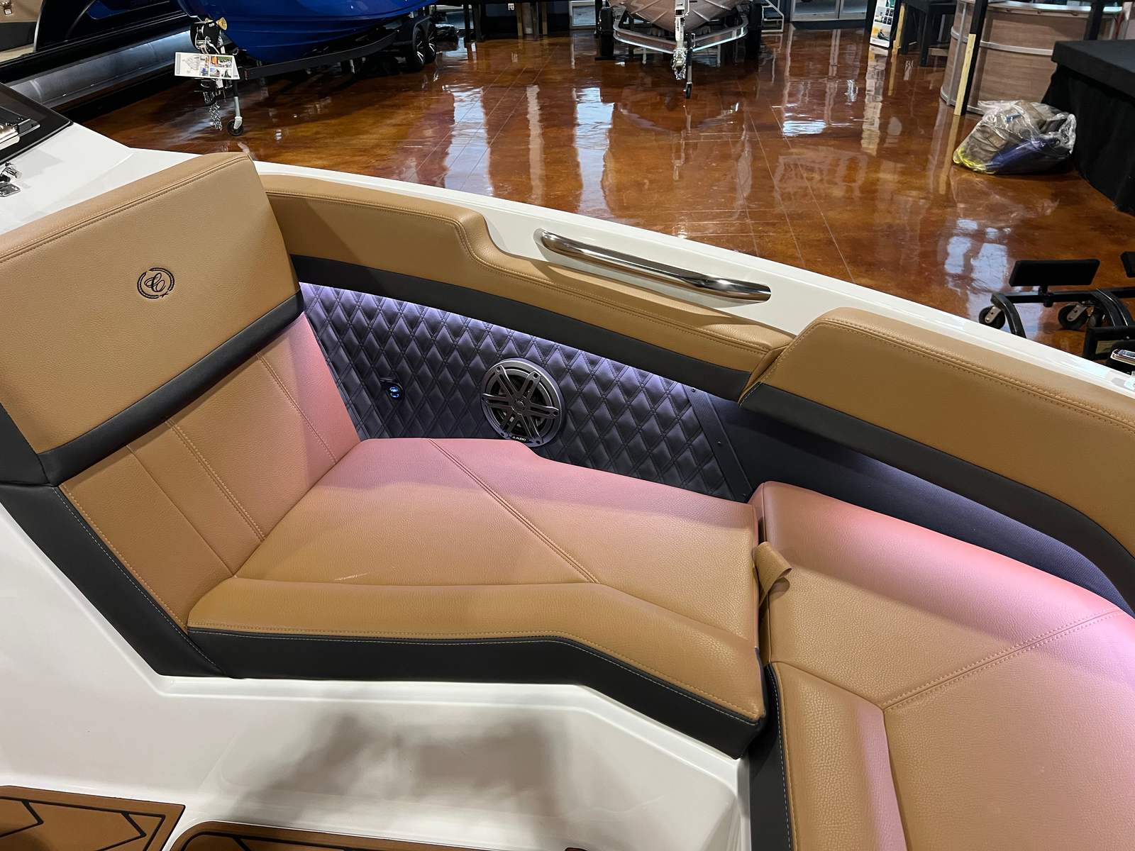 Beyond its luxurious features, the Cobalt R4 is engineered for practical, everyday use. The 24.25-foot length strikes an ideal balance between spaciousness and maneuverability, making it easy to handle in a variety of conditions. The advanced hull design ensures a smooth, dry ride, even when the water gets choppy.Docking is a breeze thanks to the stainless steel docking lights and convenient fender clips with line, which simplify the process and enhance safety. The battery maintainer/charger keeps your systems in top condition, reducing maintenance hassles and ensuring your boat is always ready for spontaneous outings.The versatile seating arrangements, including the Aft Facing Rumble Seat, provide flexible options for relaxing, socializing, or gearing up for watersports. The Arch E2 White with Bimini in Ebony offers essential shade, making long days on the water more comfortable for everyone on board.