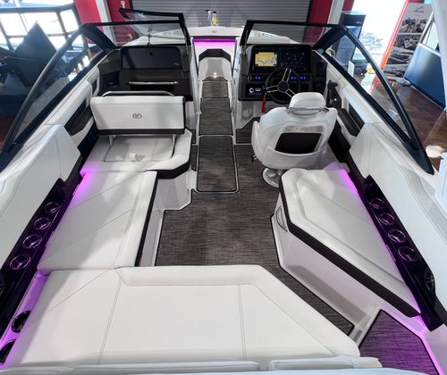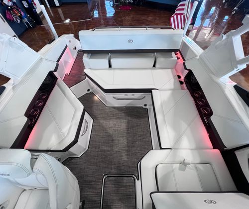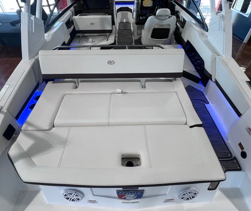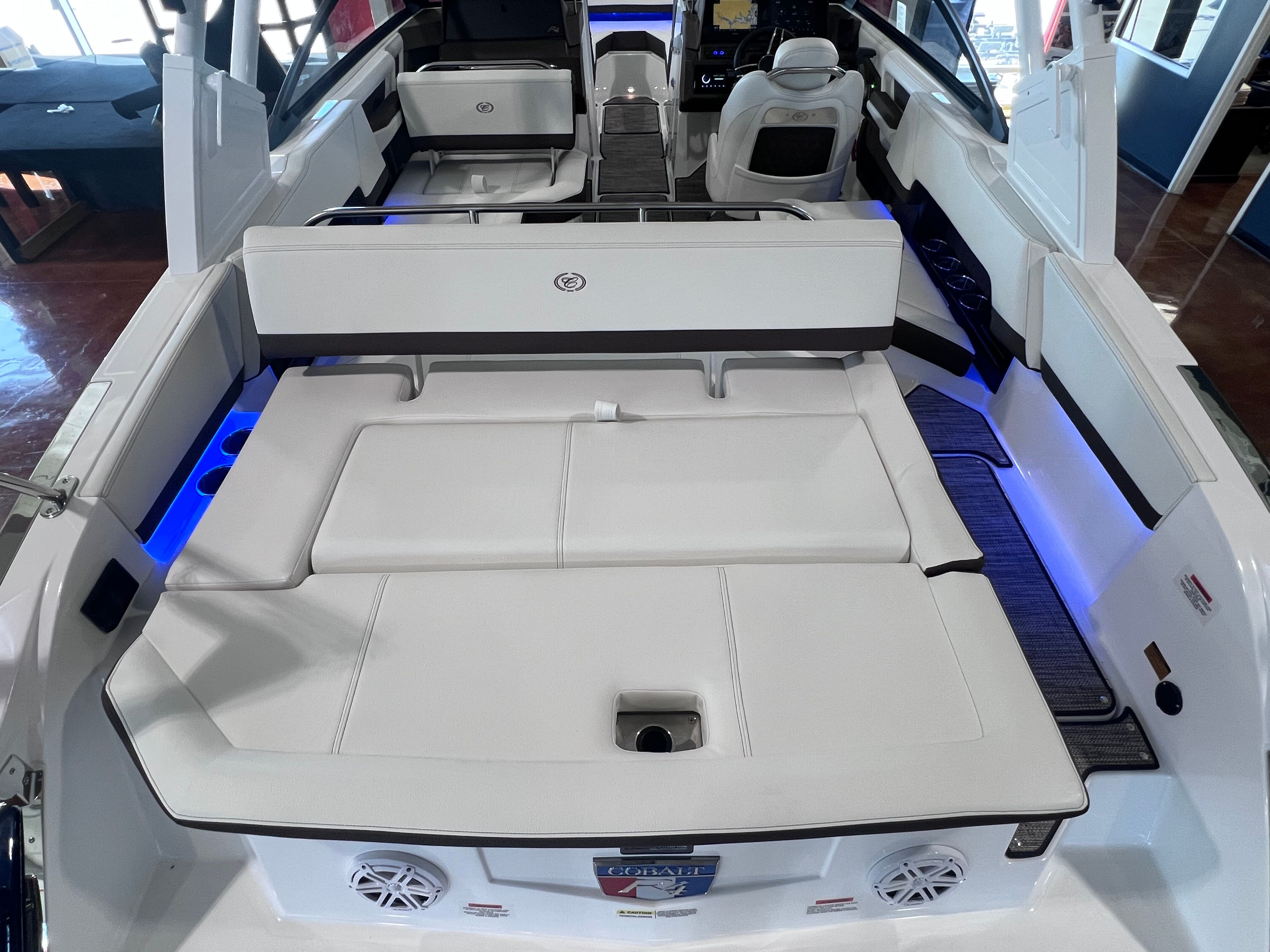 Owning the Cobalt R4 Bowrider means embracing a lifestyle of fun, relaxation, and adventure. The spacious layout is perfect for entertaining family and friends, with ample seating and thoughtful design elements that encourage socializing. The aft-facing rumble seat is ideal for lounging while anchored or enjoying the scenery as you cruise.The folding arch with bimini offers versatile protection from the elements, allowing you to adapt to changing weather conditions without sacrificing comfort. The premium floor covering ensures that every step is cushioned and secure, while the glass cockpit and dual Garmin displays provide peace of mind with advanced navigation and system controls.The R4’s combination of power and efficiency means you can spend more time enjoying the water and less time worrying about fuel consumption. The battery maintainer/charger and stainless steel docking lights add practical value, making maintenance and nighttime docking simple and stress-free.
