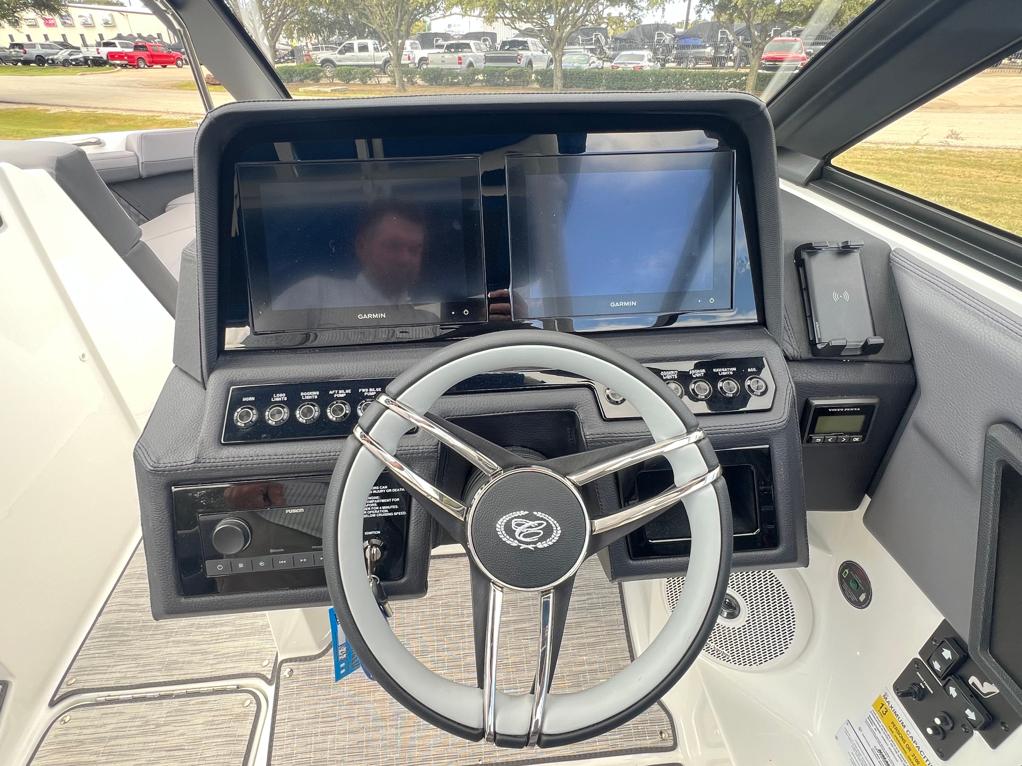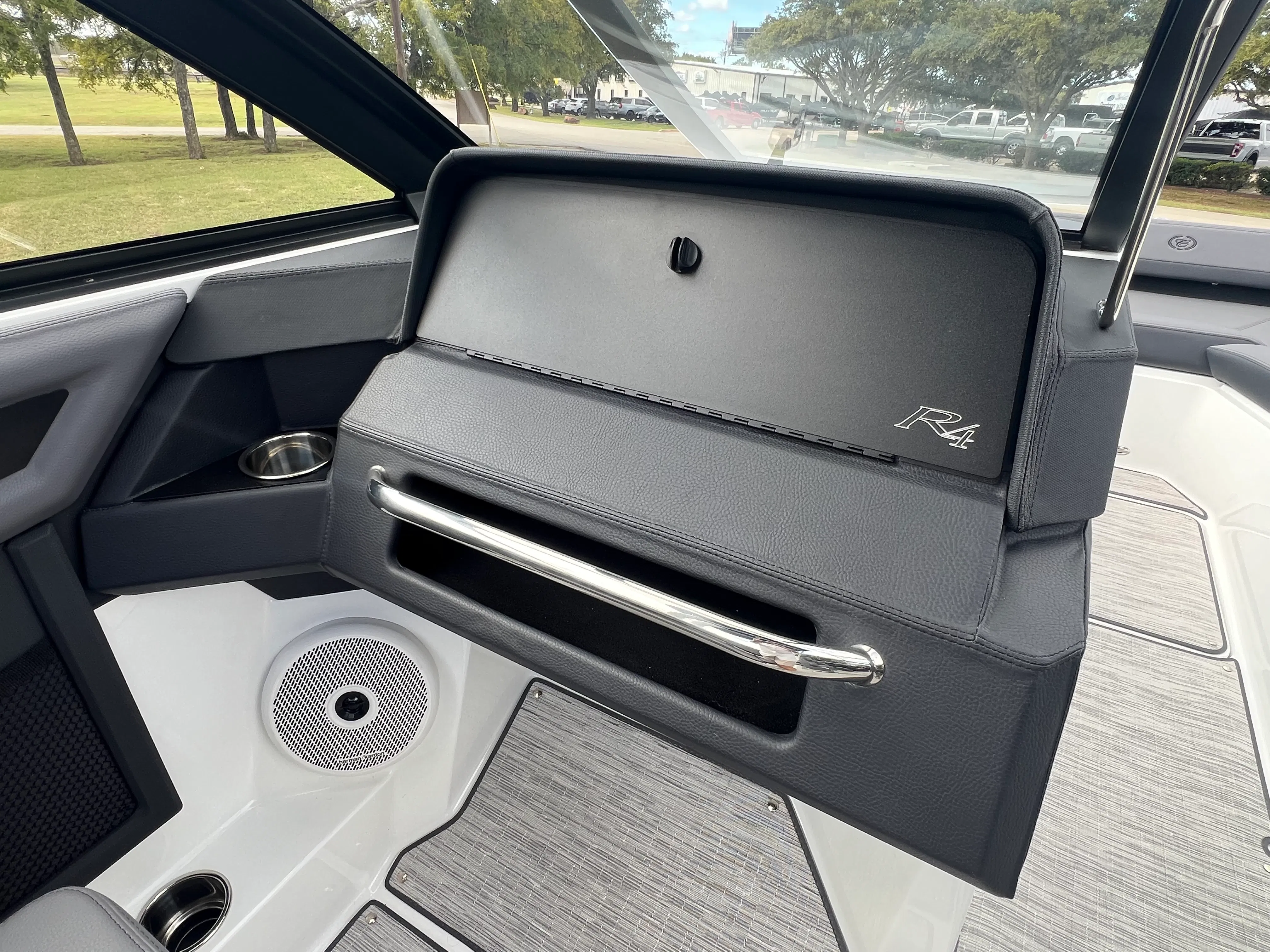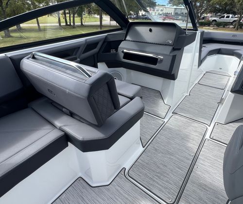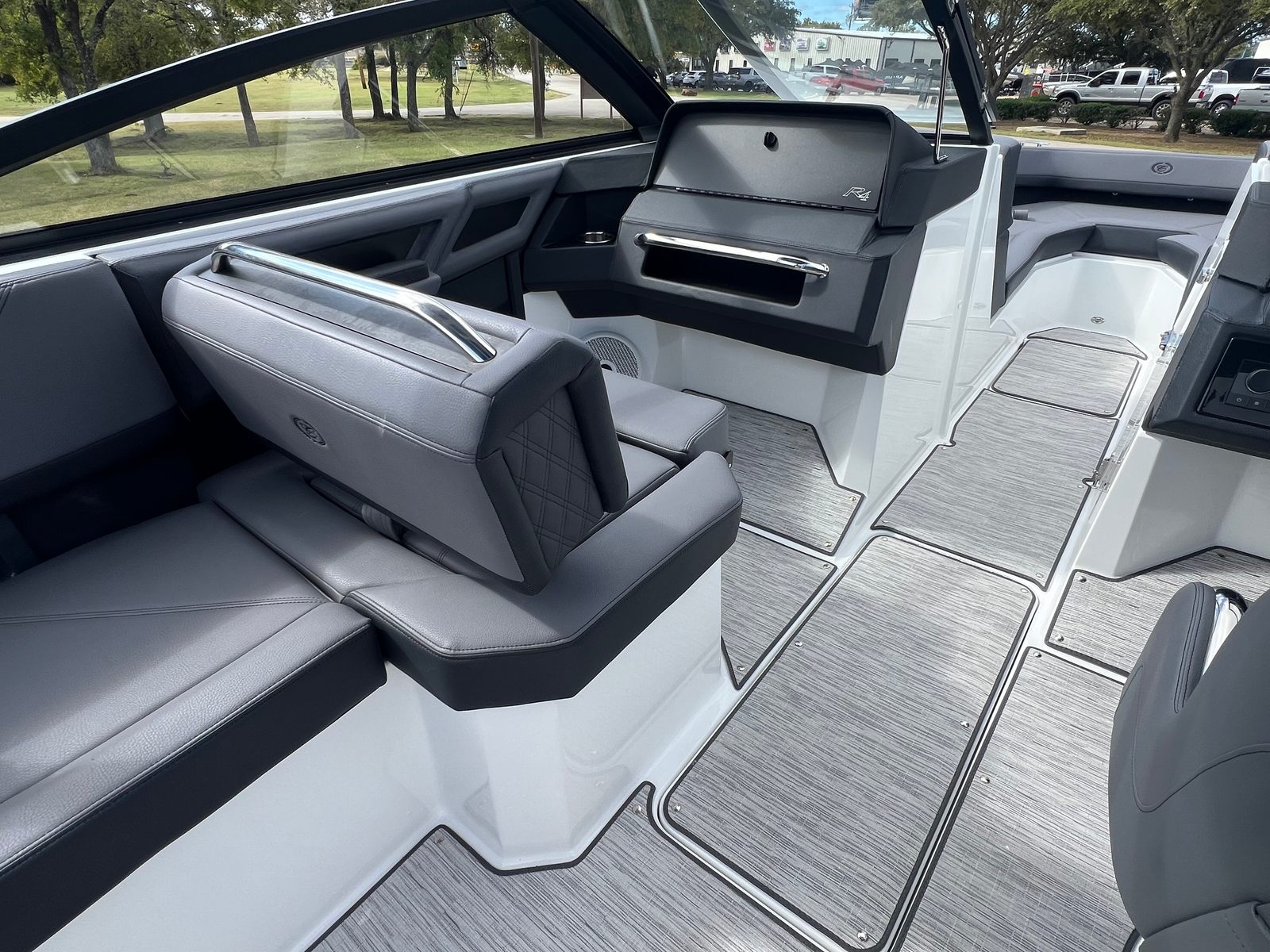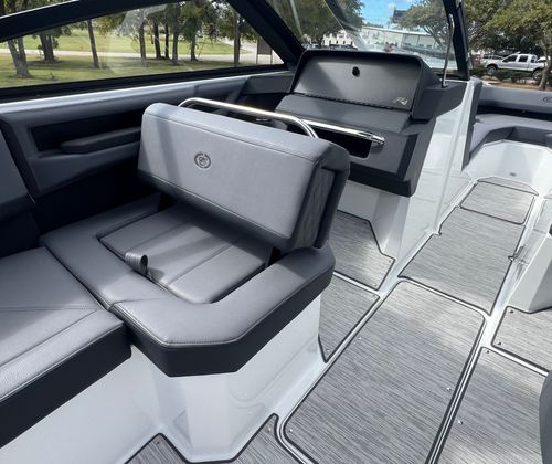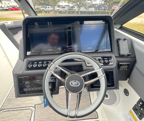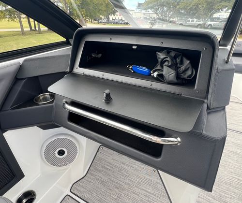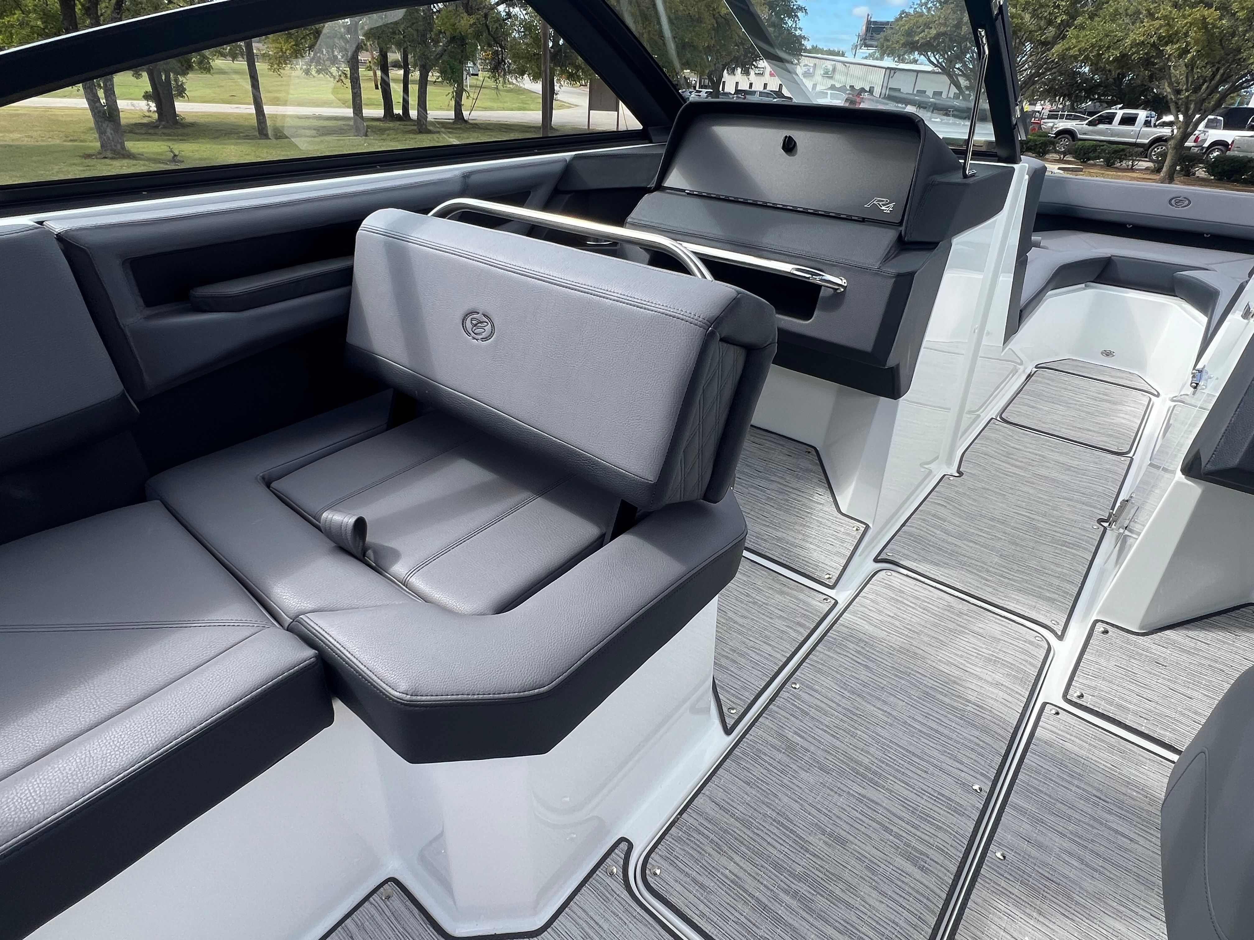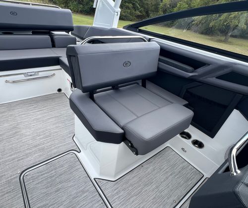 The Cobalt R4 Bowrider is designed with practicality in mind, offering features that make ownership both easy and enjoyable. The battery maintainer/charger keeps your boat’s electrical system in top condition, reducing maintenance hassles and ensuring reliable starts every time. The air compressor with holder is a handy addition for inflating water toys, paddleboards, or other equipment, making it simple to switch between activities.Stainless steel docking lights enhance safety and convenience during nighttime docking, while the electric adjustable seat allows for effortless customization to suit your preferences. The bow filler cushions and aft-facing rumble seat provide flexible seating arrangements, accommodating different group sizes and activities. The solid teak dinette table adds a touch of elegance and practicality, creating a perfect spot for meals or games on the water.