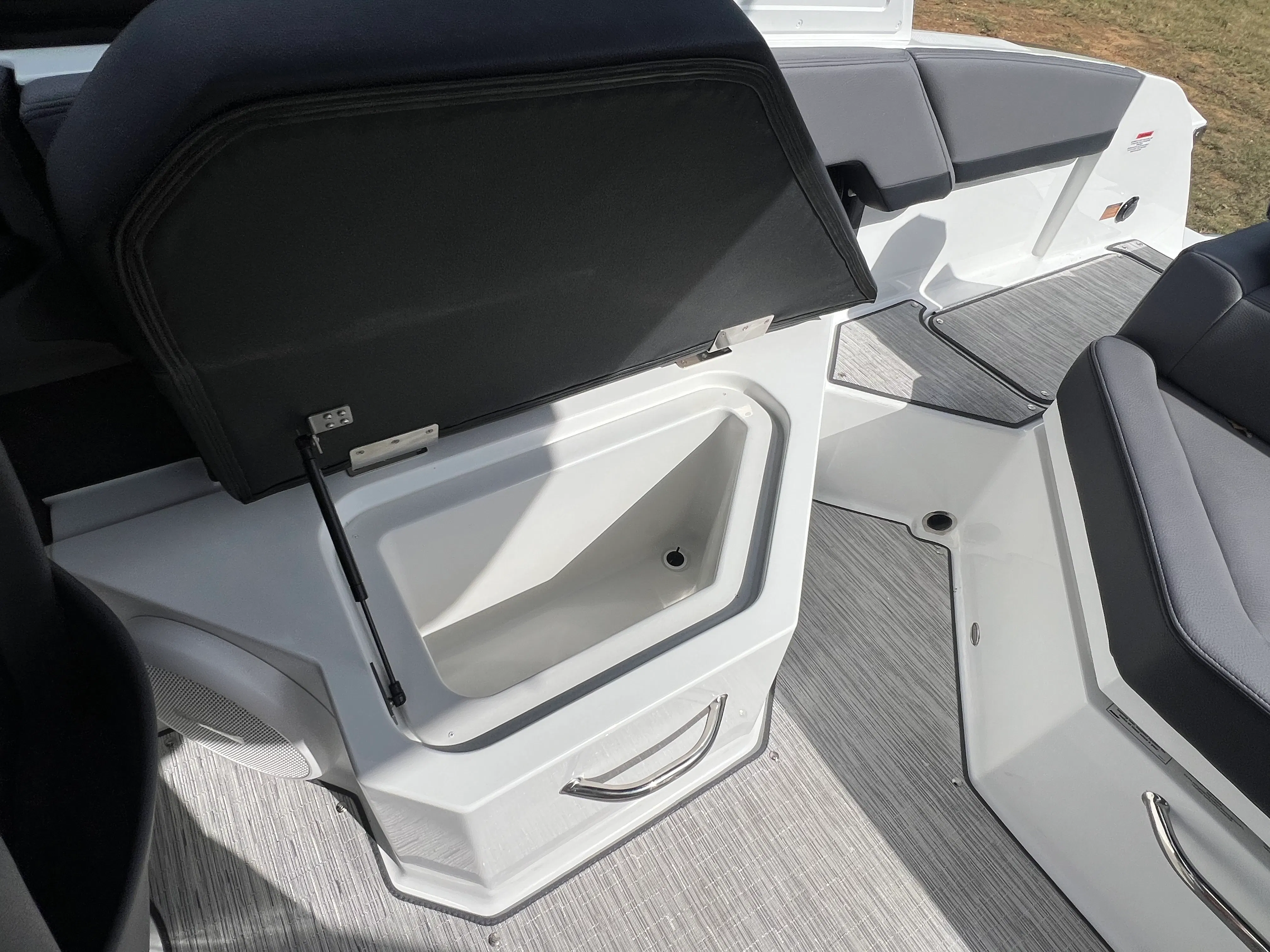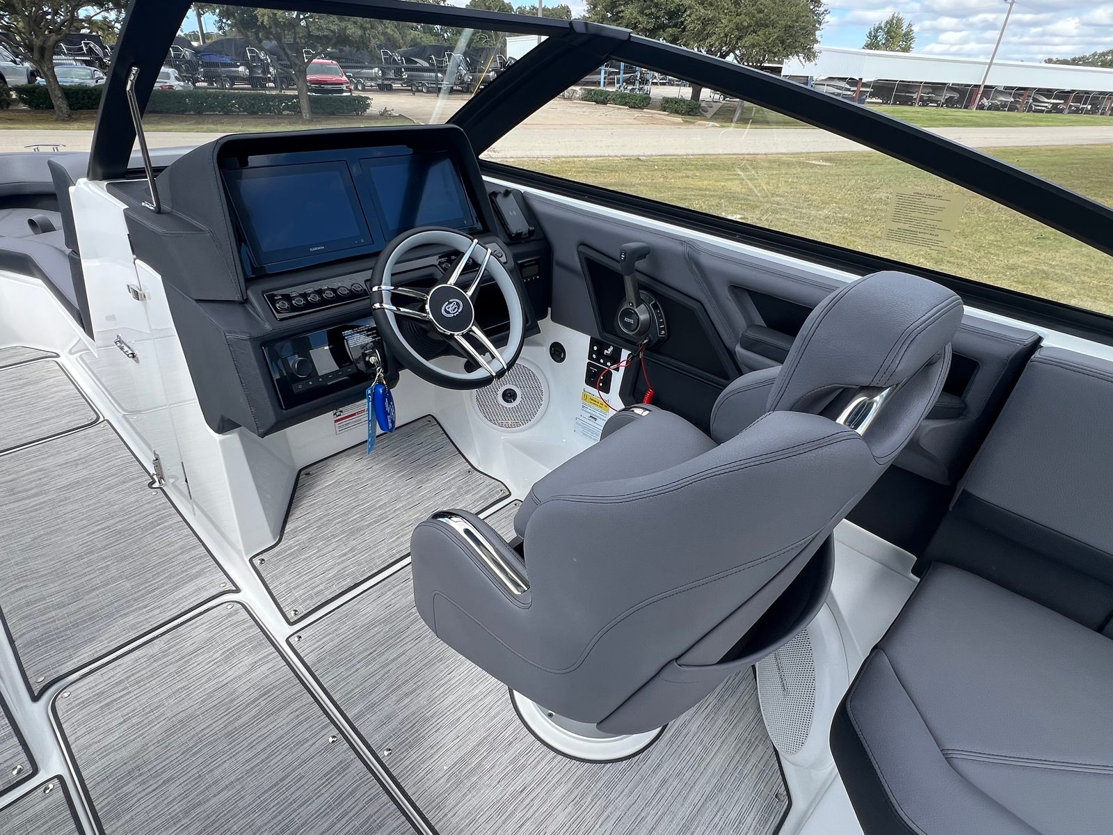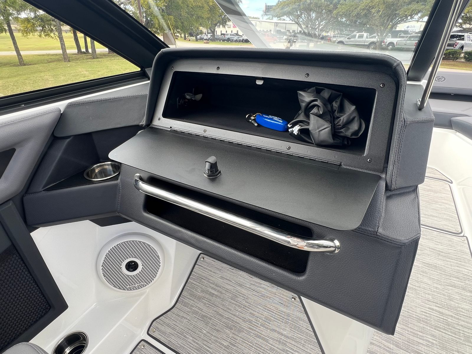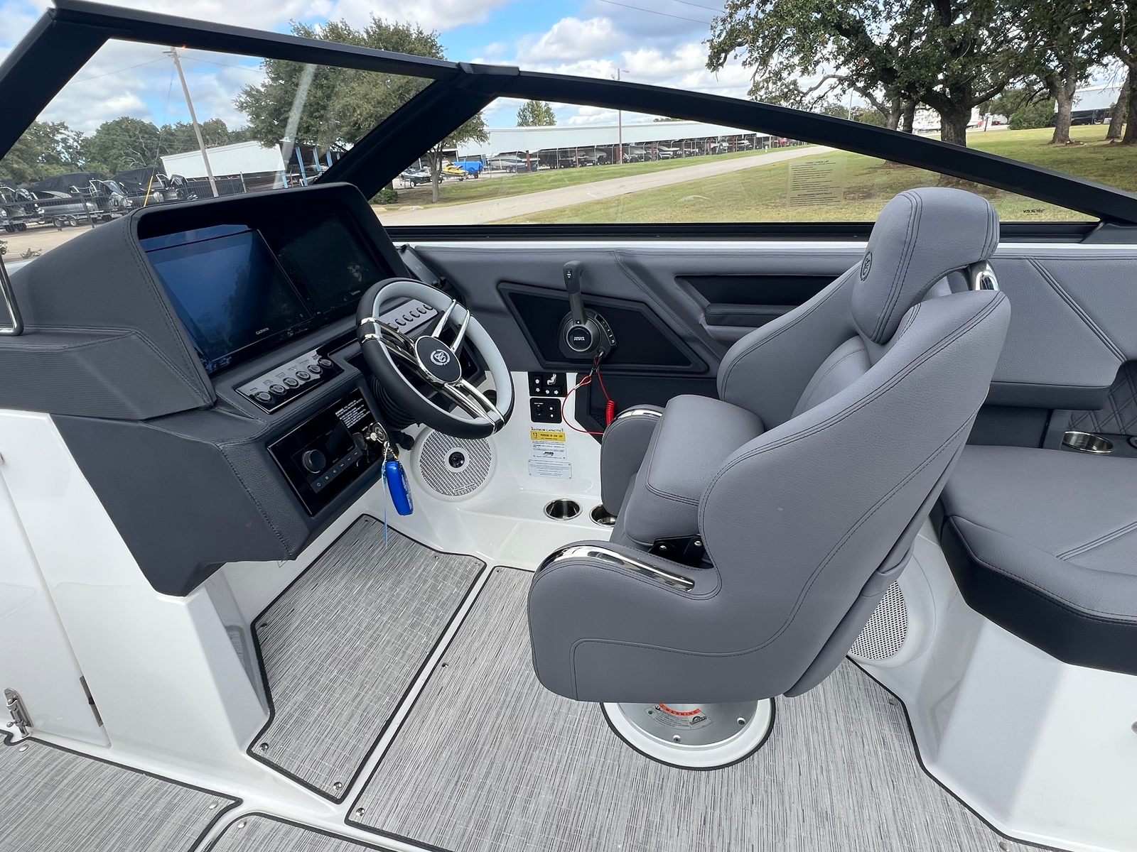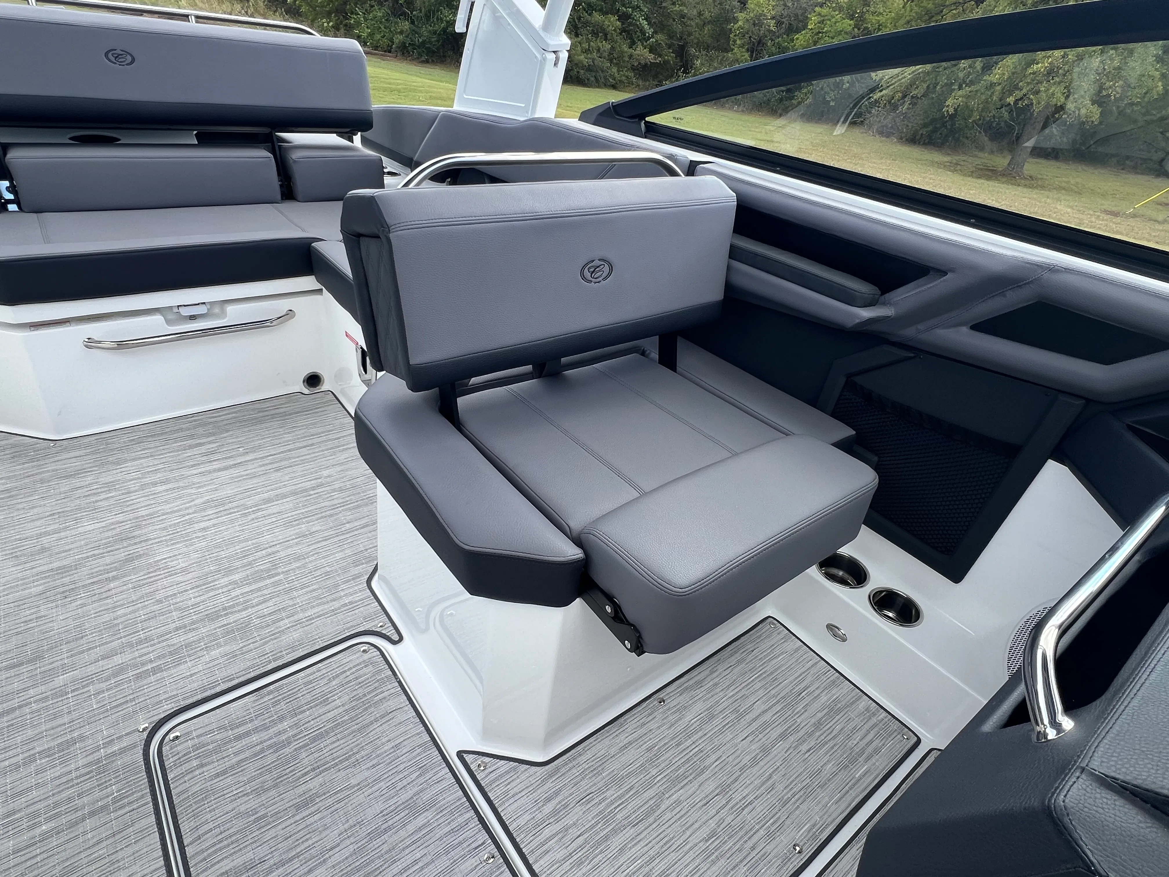 The Cobalt R4 Bowrider is designed with practicality in mind, offering features that make ownership both easy and enjoyable. The battery maintainer/charger keeps your boat’s electrical system in top condition, reducing maintenance hassles and ensuring reliable starts every time. The air compressor with holder is a handy addition for inflating water toys, paddleboards, or other equipment, making it simple to switch between activities.Stainless steel docking lights enhance safety and convenience during nighttime docking, while the electric adjustable seat allows for effortless customization to suit your preferences. The bow filler cushions and aft-facing rumble seat provide flexible seating arrangements, accommodating different group sizes and activities. The solid teak dinette table adds a touch of elegance and practicality, creating a perfect spot for meals or games on the water.